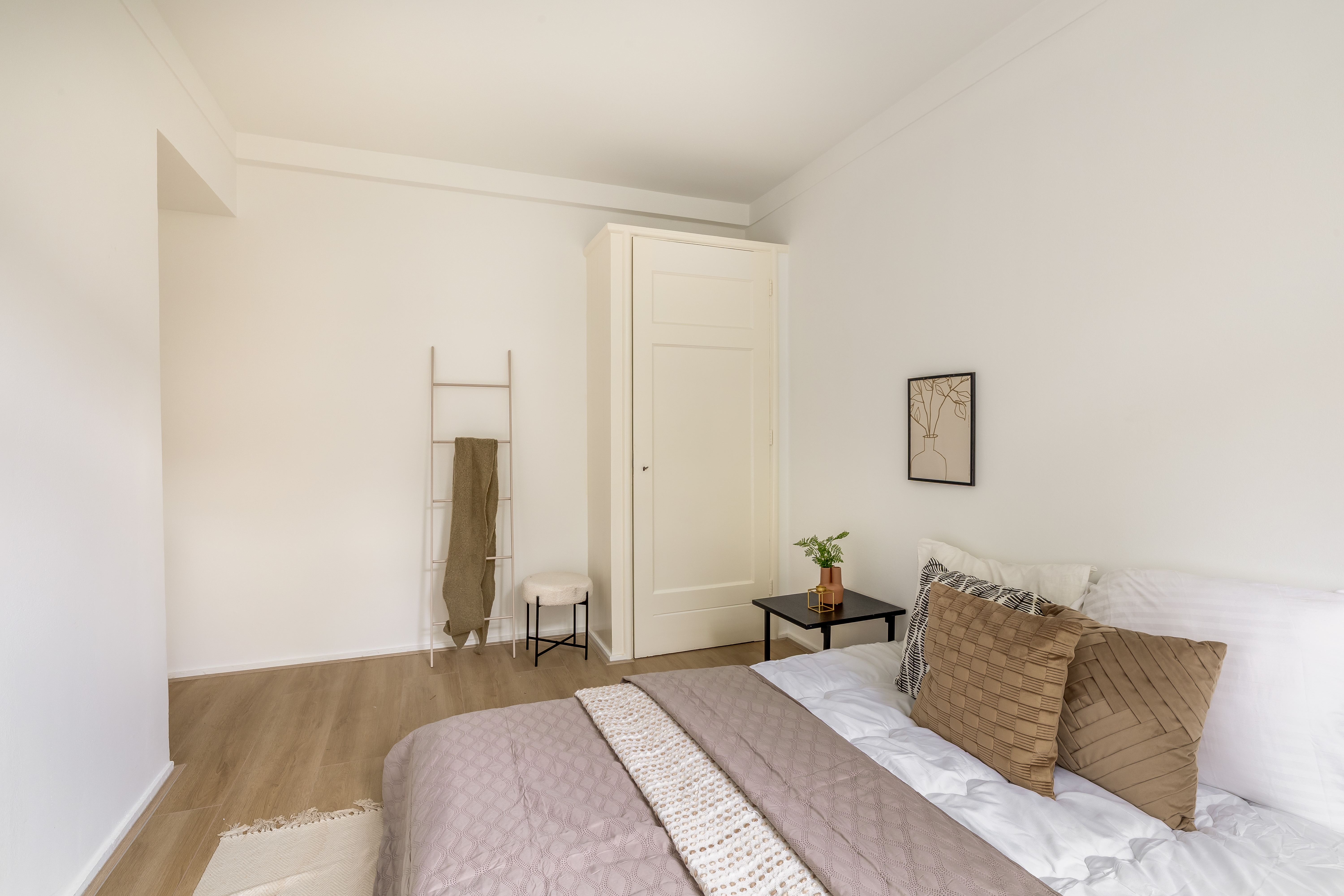 Op deze verdieping zijn ook twee slaapkamers gelegen. De master bedroom is aan de achterzijde van het appartement gelegen en geeft toegang tot de badkamer en het balkon. De tweede slaapkamer is ook gelegen aan de achterzijde, is v.v. een bergkast en geeft toegang tot het balkon.