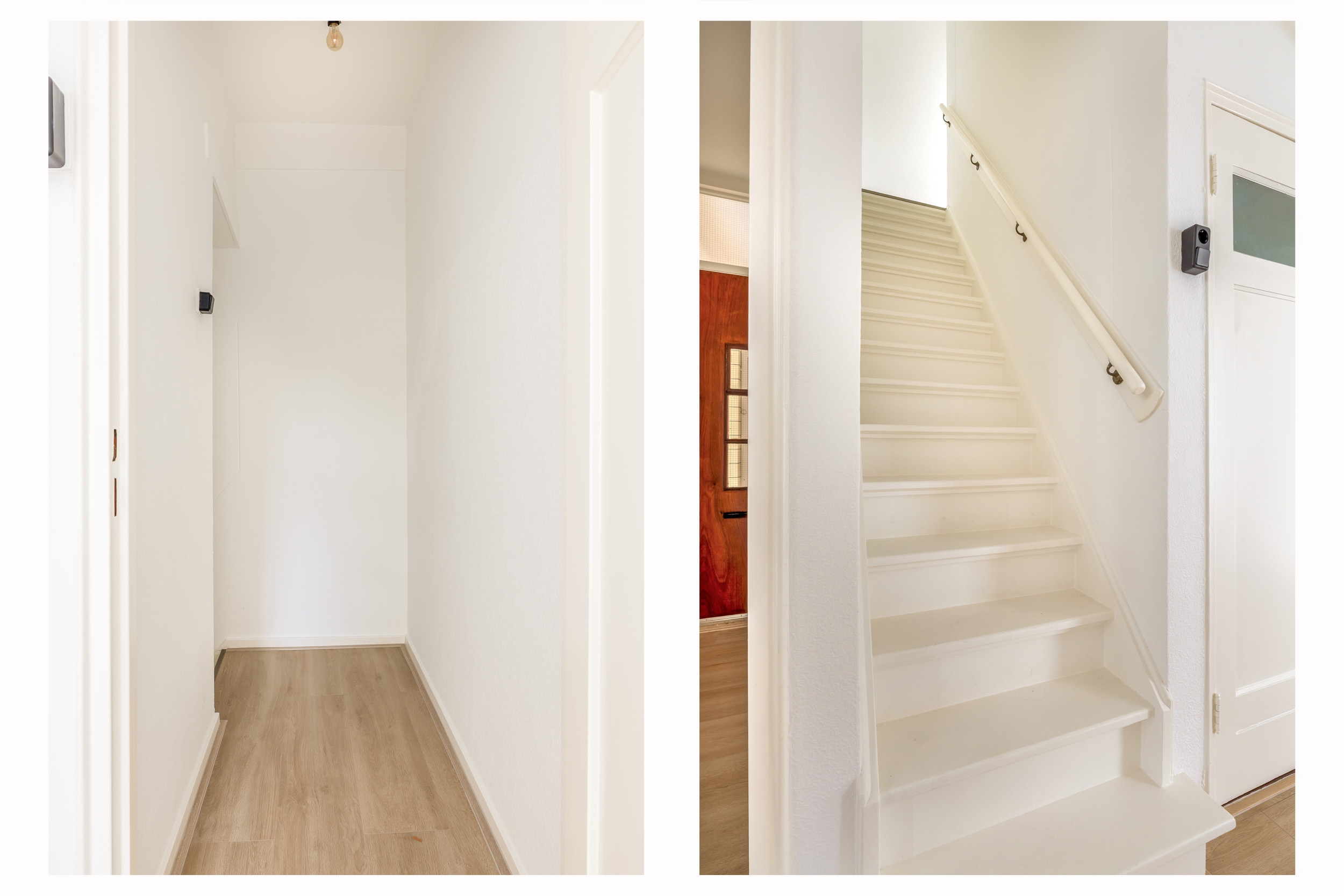 Deze verdieping is voorzien van een doorlopende laminaatvloer, gestuukte wanden en plafonds (m.u.v. de hal) en paneeldeuren.