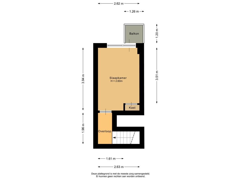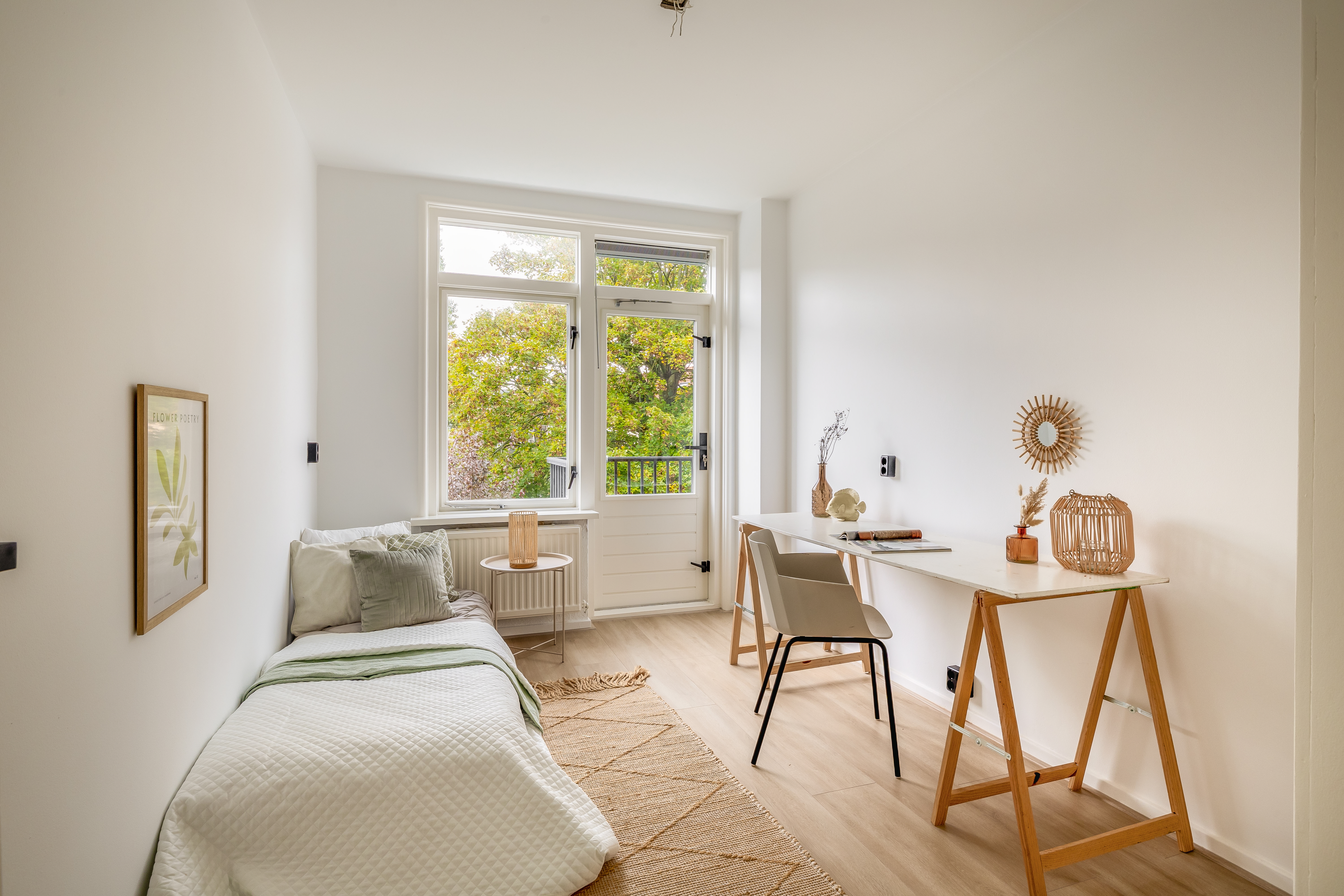 Op deze verdieping bevindt zich een kleine overloop, welke toegang geeft tot de derde slaapkamer. De slaapkamer is gelegen aan de achterzijde van het appartement en geeft toegang tot het balkon.
