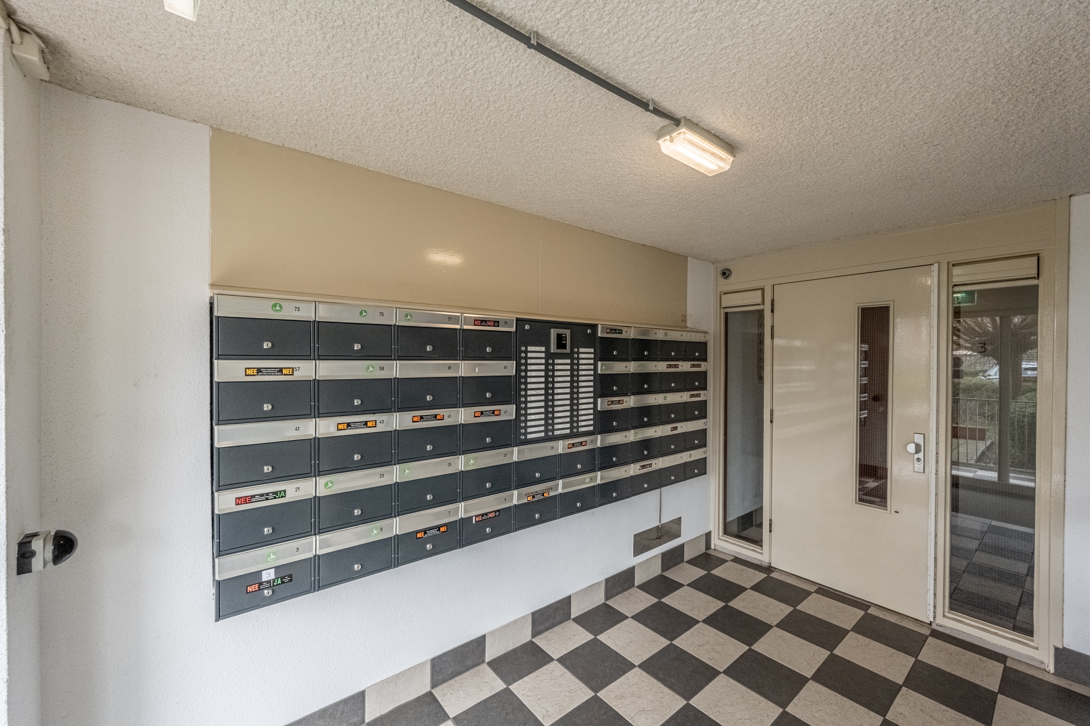 Via de centrale, afgesloten entree met videofooninstallatie bereik je met de lift of trap de eerste verdieping.