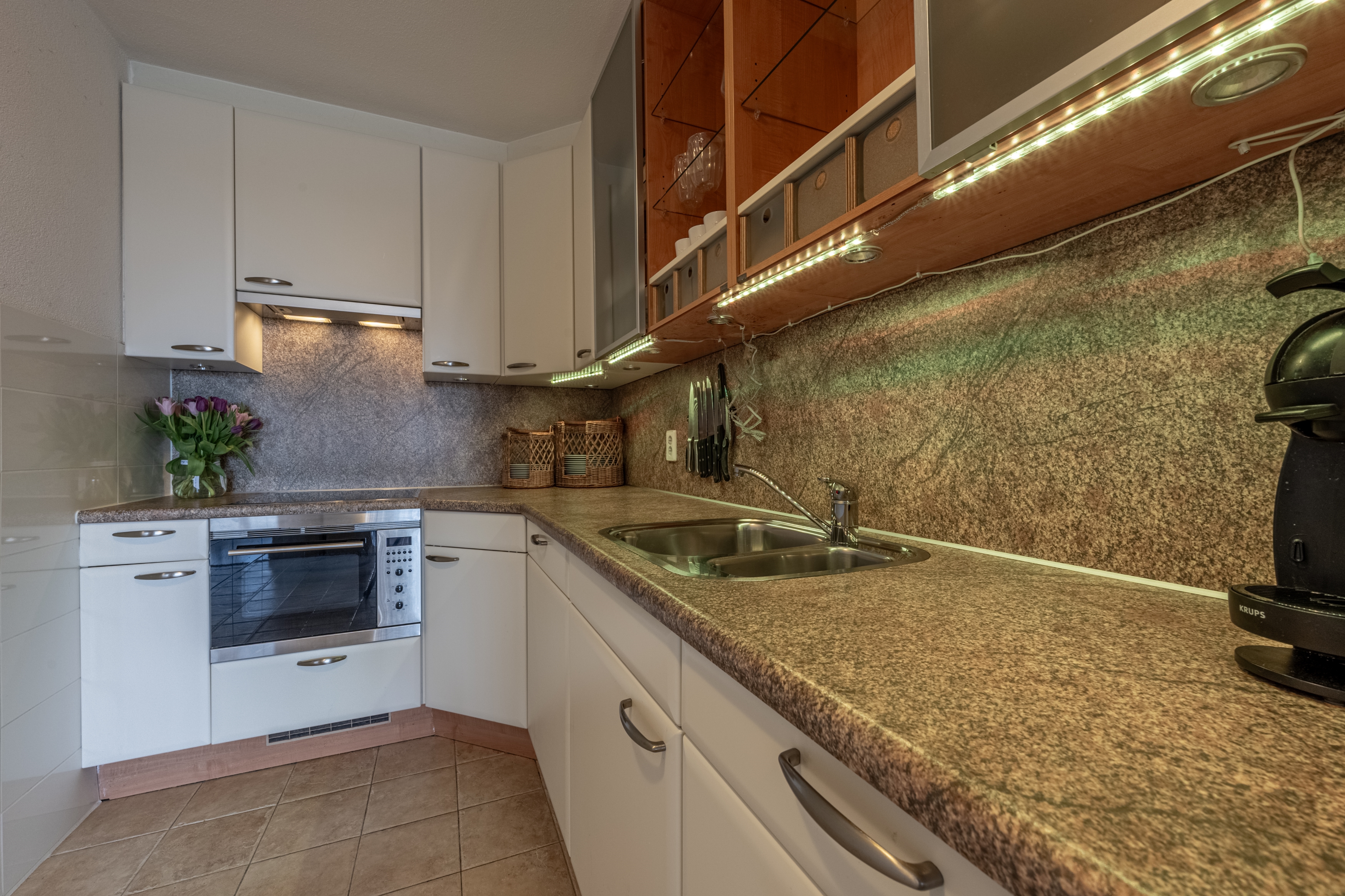 4. Open keuken met inbouwapparatuur en fijne slaapkamer met vaste kastenwand