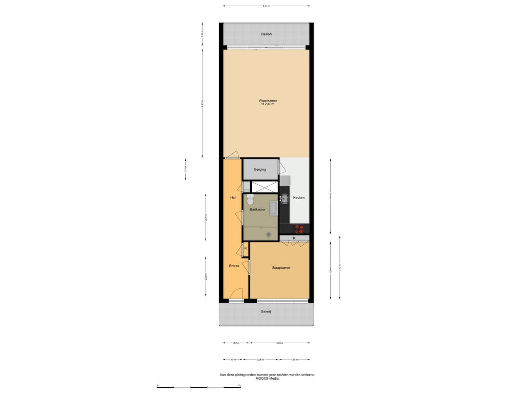 Voor de afmetingen en indeling, zie de plattegrond.