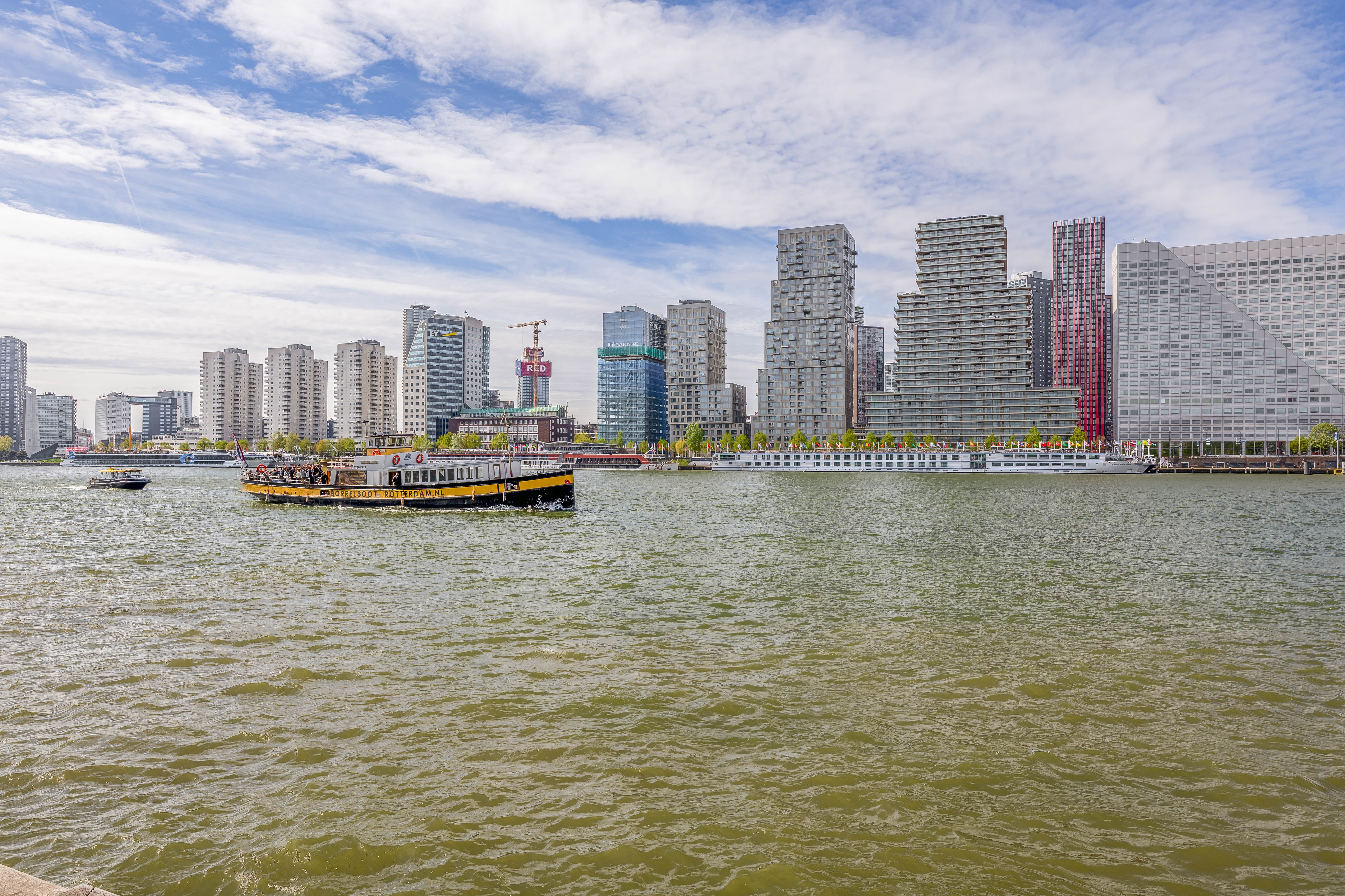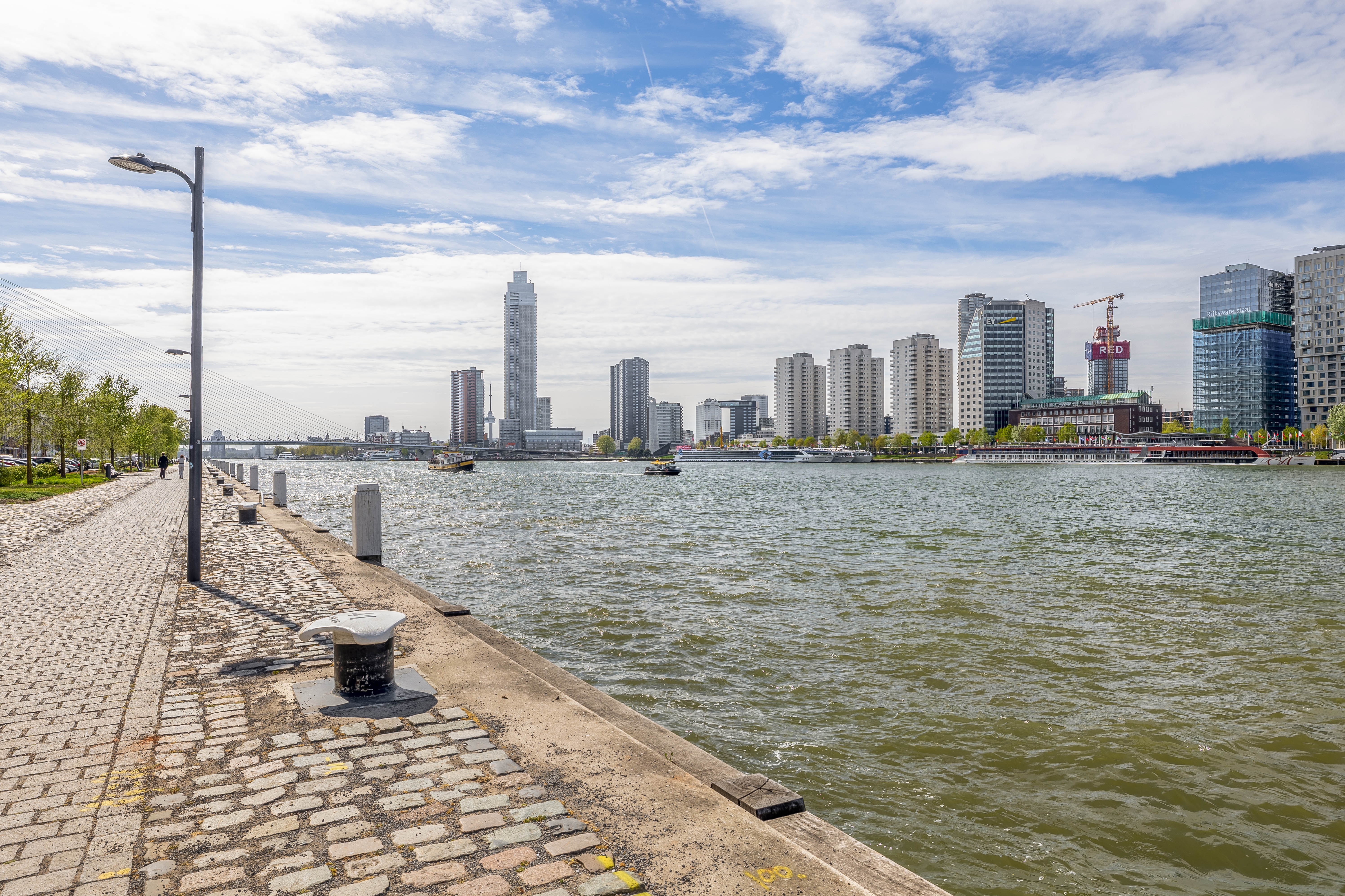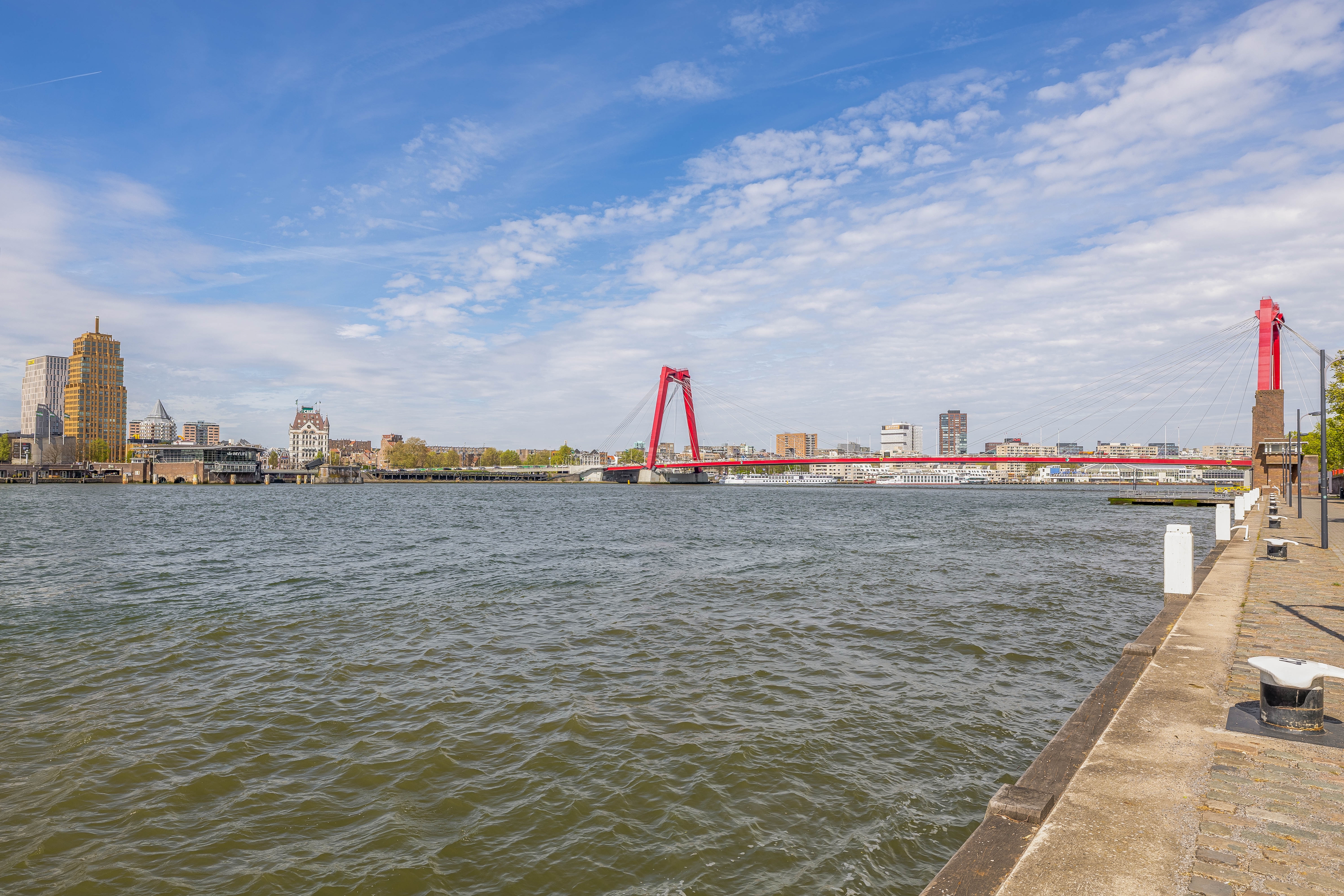 You can stroll along the Maaskade with impressive views of the skyline, De Hef, and the Willemsbrug. In the immediate vicinity you’ll find charming local shops, cozy coffee spots, and excellent restaurants. Want to cross the river? Within minutes you’re in the vibrant city center, on Kop van Zuid, or at De Kuip.