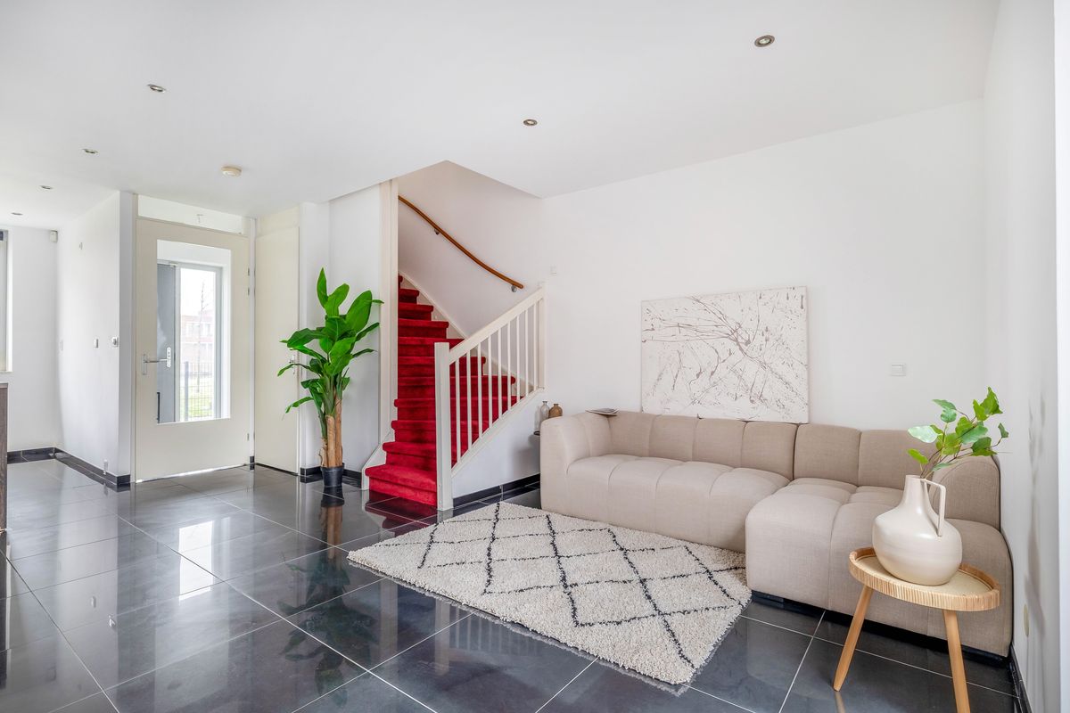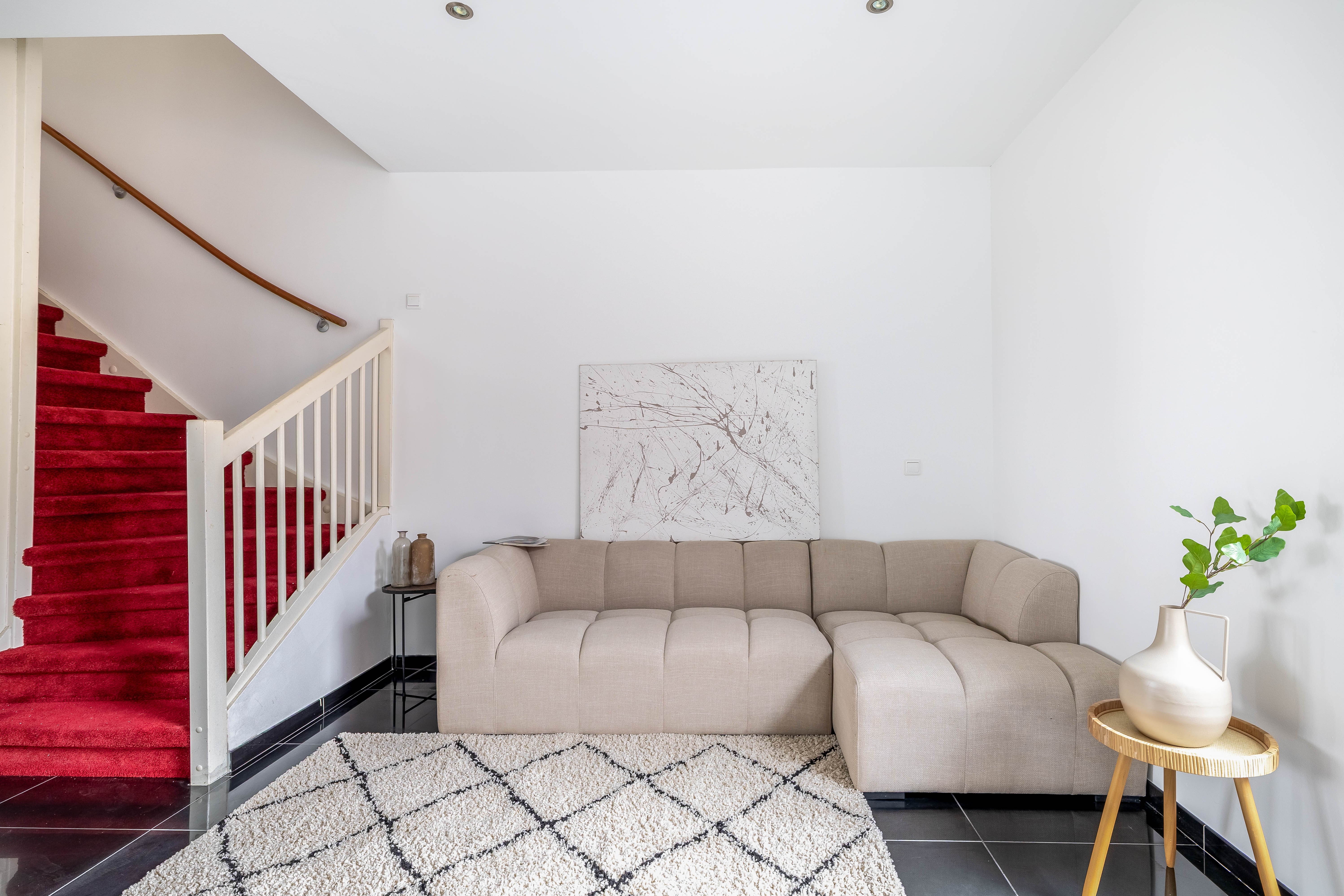 De woonkamer is ruim opgezet en biedt volop mogelijkheden voor een comfortabele zithoek en een gezellige eethoek. Dankzij de prettige breedte, fijne plafondhoogte en grote raampartijen voelt deze ruimte heerlijk licht en open aan. Vanuit de woonkamer loop je zo de achtertuin in, waardoor binnen en buiten op een mooie manier met elkaar verbonden zijn.