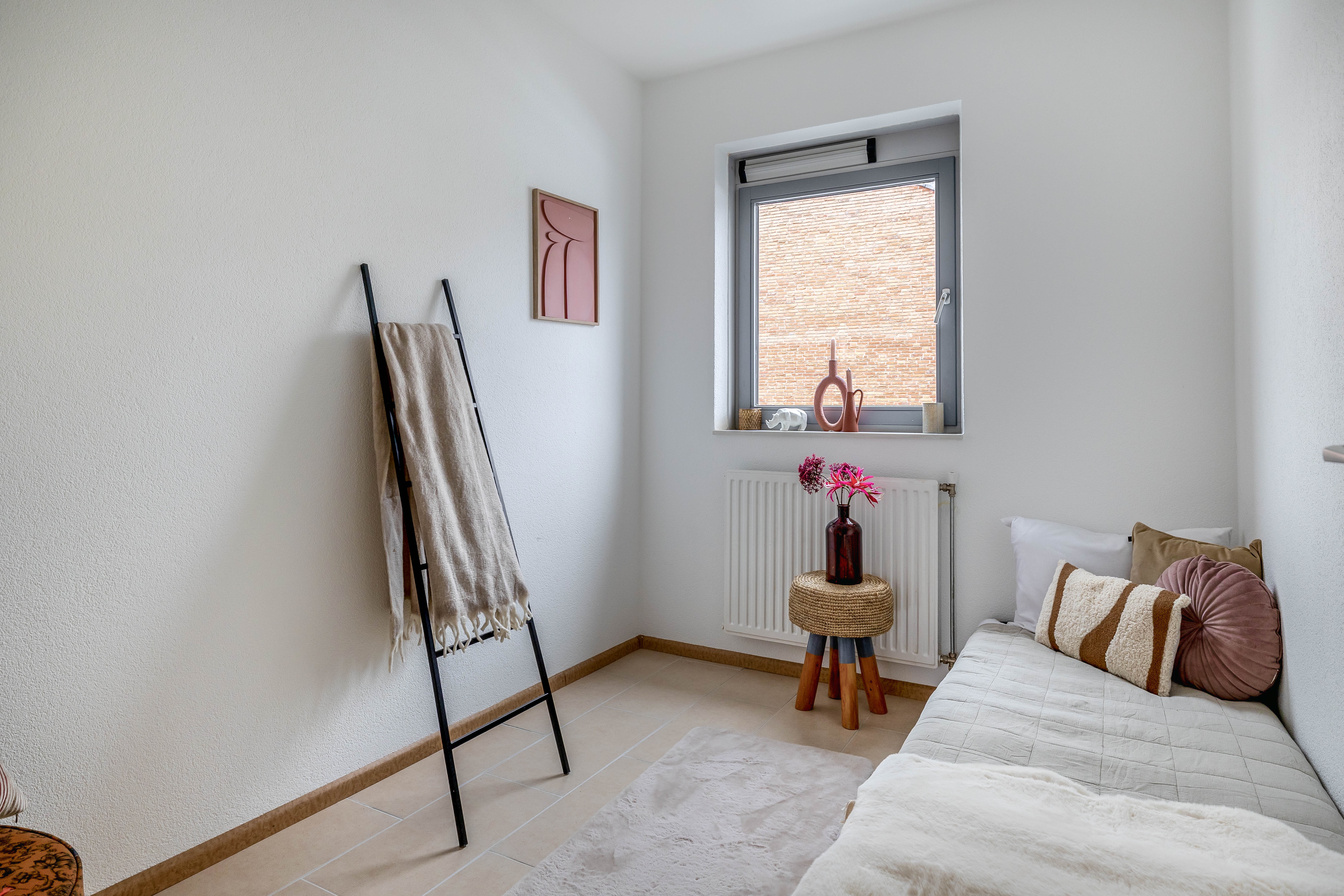De tweede verdieping verrast met een ruime (slaap)kamer met extra hoogte, wat zorgt voor een speels en ruimtelijk gevoel. Deze verdieping leent zich uitstekend als master bedroom, logeerkamer of rustige thuiswerkplek.