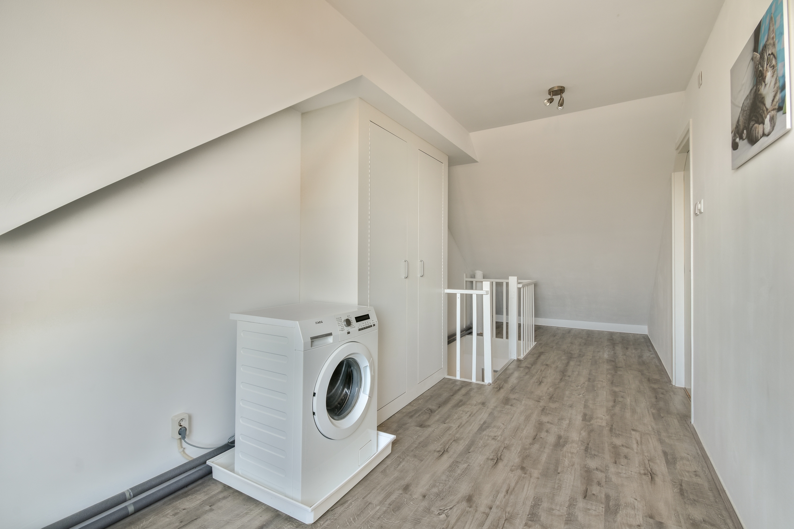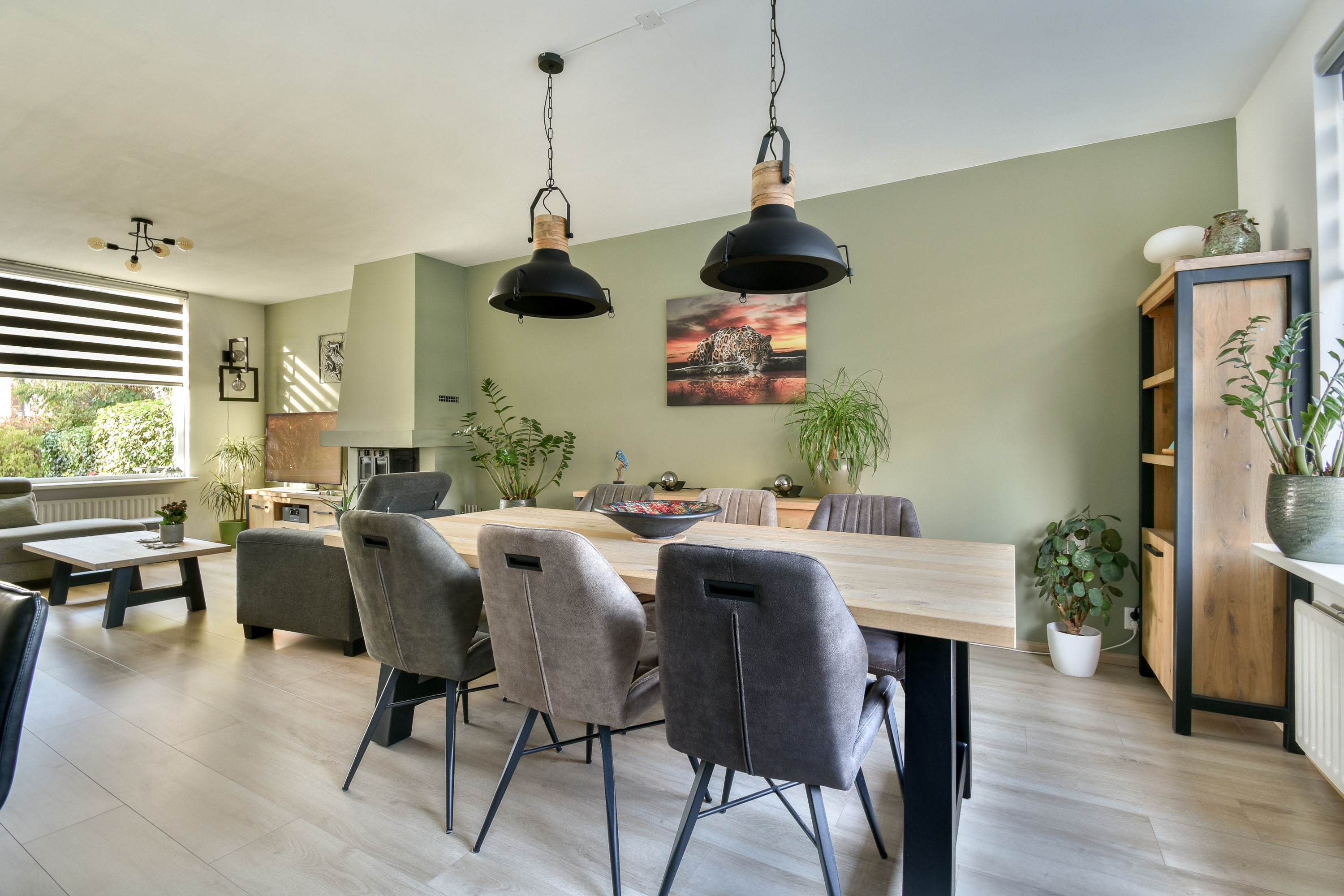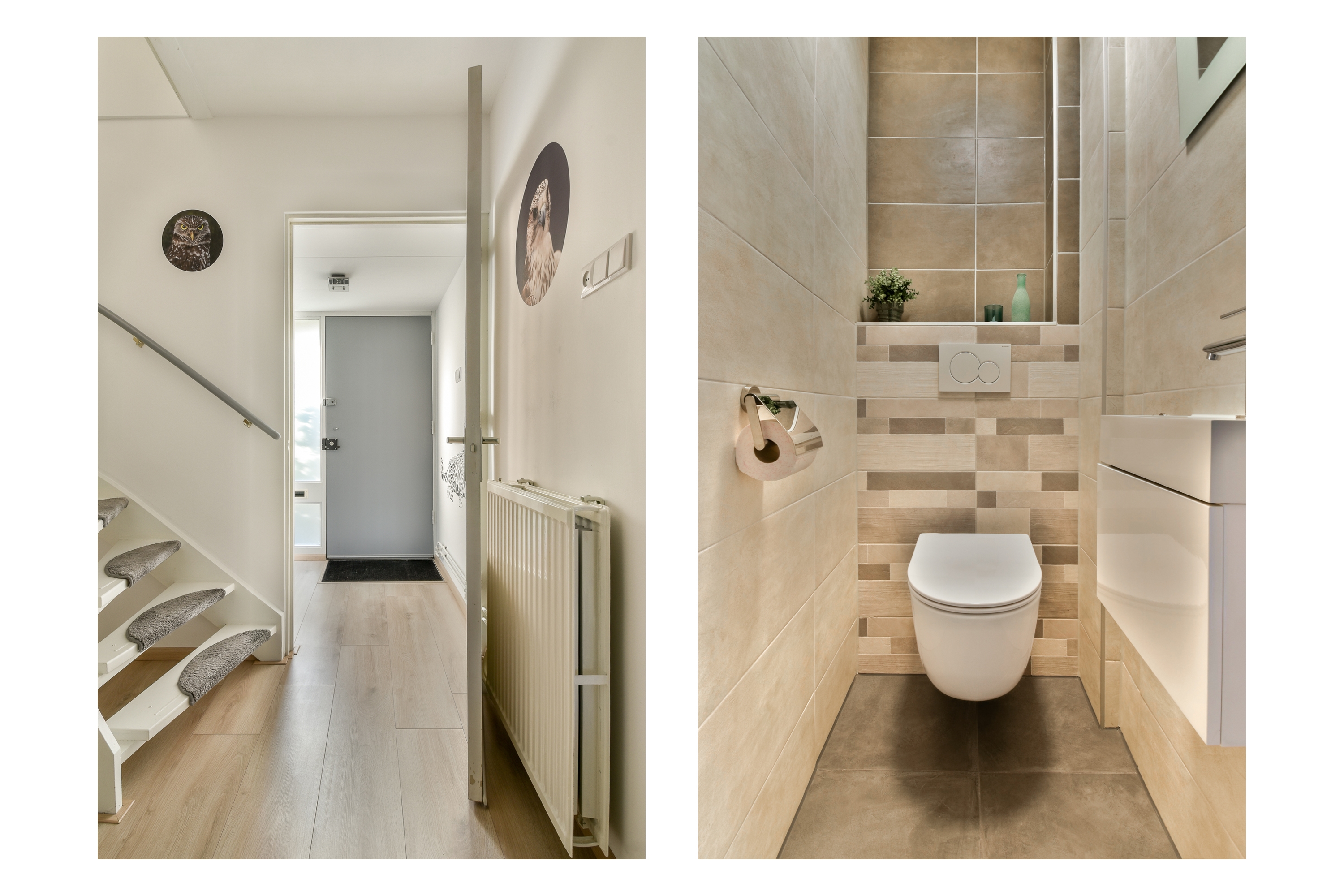 Je komt binnen via de nette en lichte entree, waar meteen de verzorgde afwerking opvalt. In de hal vind je het toilet, de trapopgang en een praktische doorgang naar zowel de woonkamer als de keuken. De doorzonwoonkamer is een heerlijke leefruimte: dankzij de grote ramen aan zowel de voor- als achterzijde stroomt het daglicht de woning binnen. De laminaatvloer, de rustige kleuren en de strakke wanden zorgen voor een warme, uitnodigende sfeer waarin je je meteen thuis voelt.