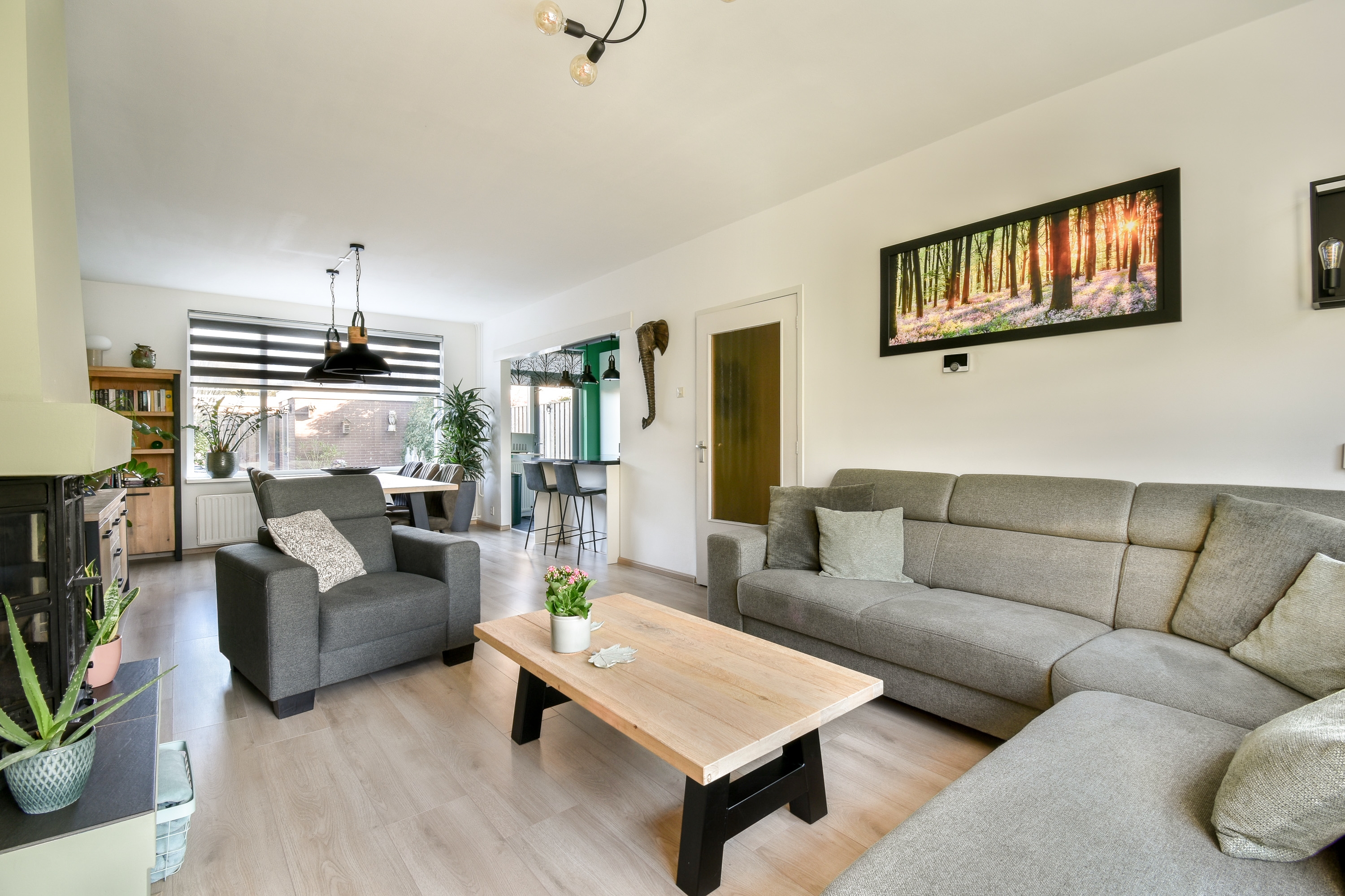 - Lichte en ruime doorzonwoonkamer met verzorgde afwerking en laminaatvloer;