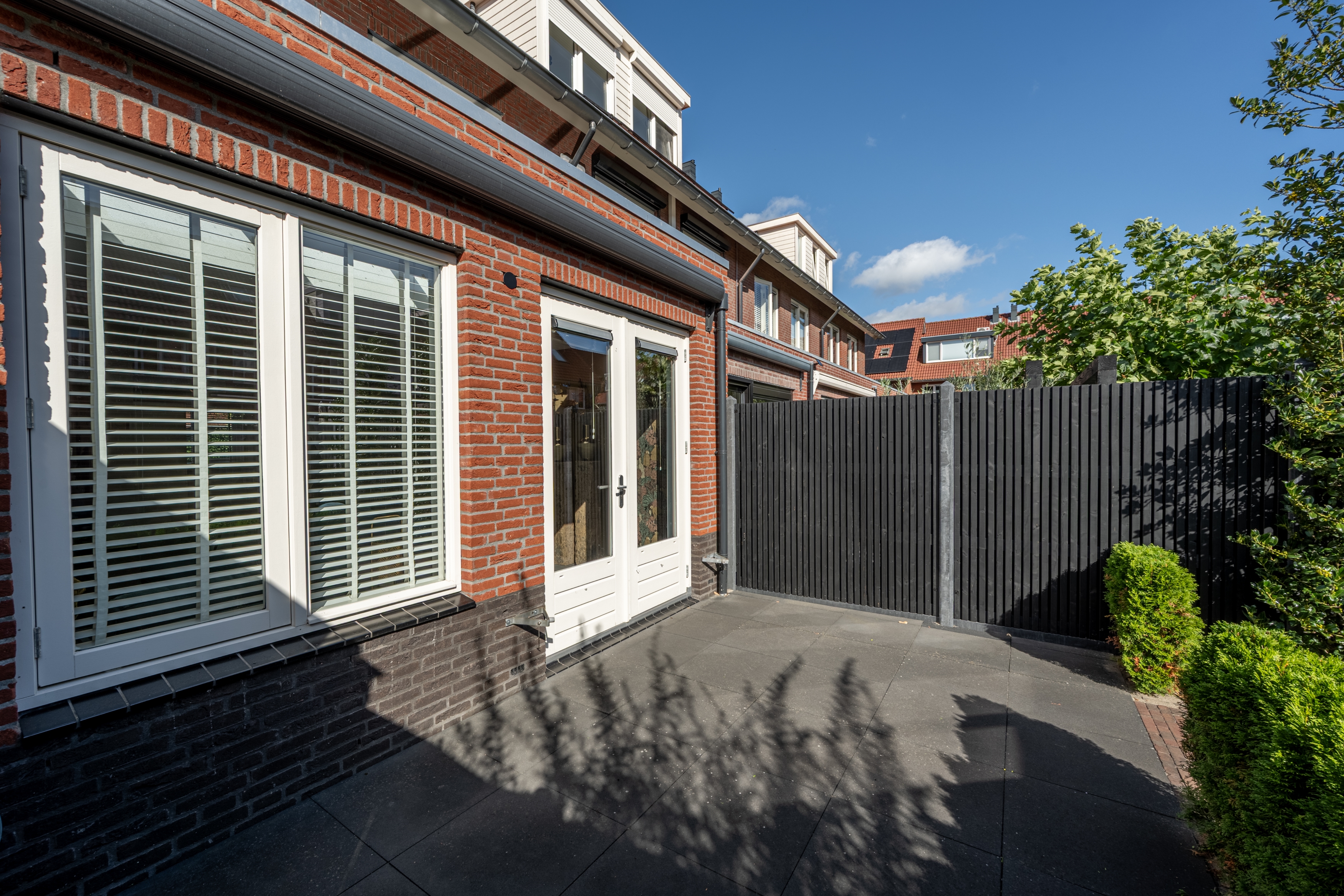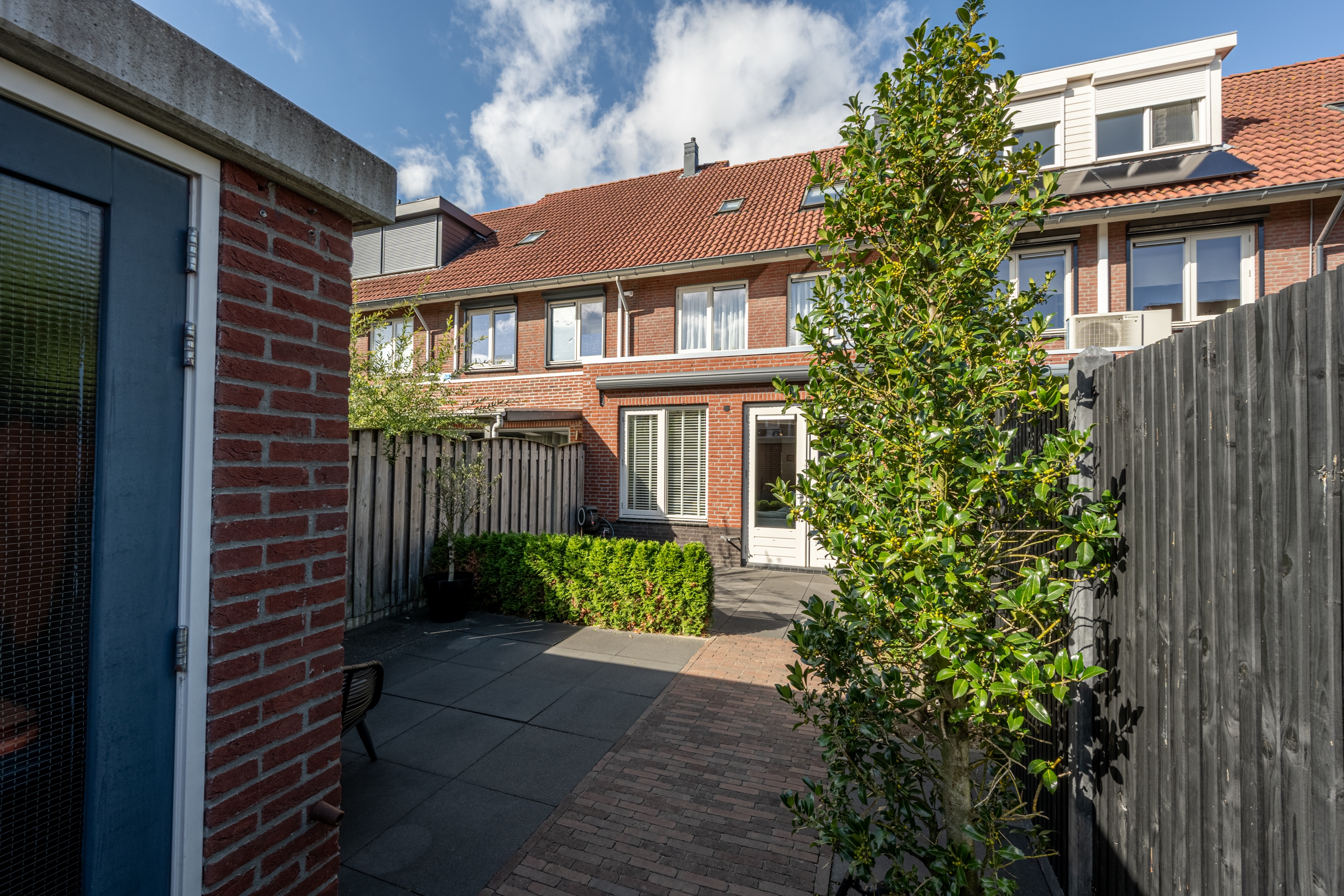 De achtertuin is in 2021 volledig vernieuwd en gelegen op het oosten, waardoor je hier in de ochtend- en vroege middagzon heerlijk kunt genieten van een kop koffie of een goed boek. De tuin is modern en onderhoudsvriendelijk aangelegd, met een combinatie van bestrating, groen en een prettig terras. Dankzij het vernieuwde elektrische zonnescherm (2023) creëer je eenvoudig schaduw op warme dagen.