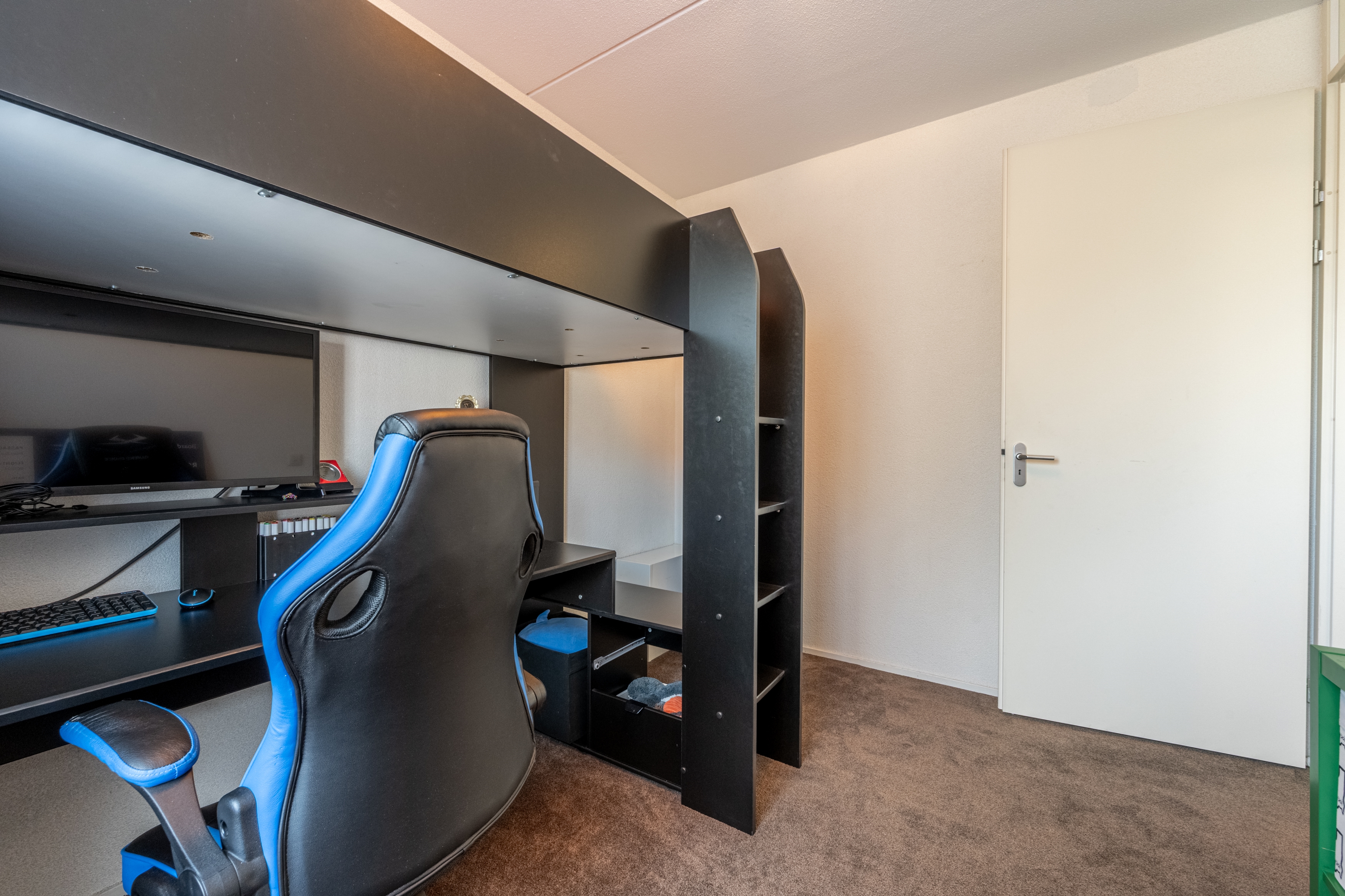 Via de vaste trap bereik je de ruime zolderverdieping. Deze open ruimte wordt momenteel gebruikt als vierde slaapkamer, maar biedt volop mogelijkheden. Met een dakkapel is hier eenvoudig een of zelfs twee volwaardige slaapkamers of een fijne thuiswerkplek te realiseren. De zolder beschikt over voldoende bergruimte achter de knieschotten en biedt plaats achter de kastenwand voor de wasapparatuur en de cv-installatie.