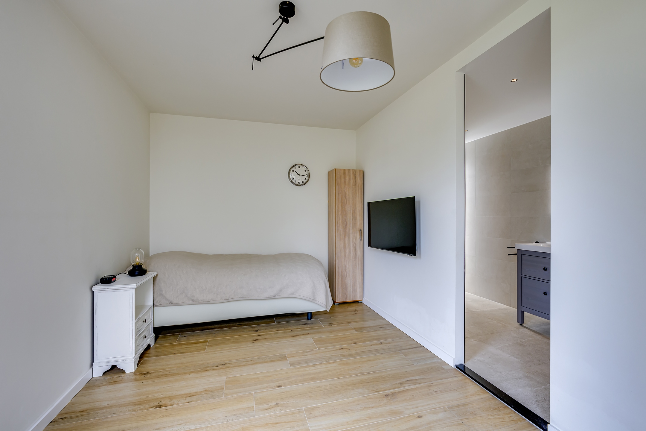 Uniek aan deze woning is de slaapkamer op de begane grond, ideaal als je levensloopbestendig wilt wonen. Direct daarnaast ligt de badkamer, wat het geheel extra comfortabel maakt. De badkamer is recent gerenoveerd met een mooie inloopdouche en een dubbel wastafelmeubel en heeft een strakke en moderne uitstraling.
