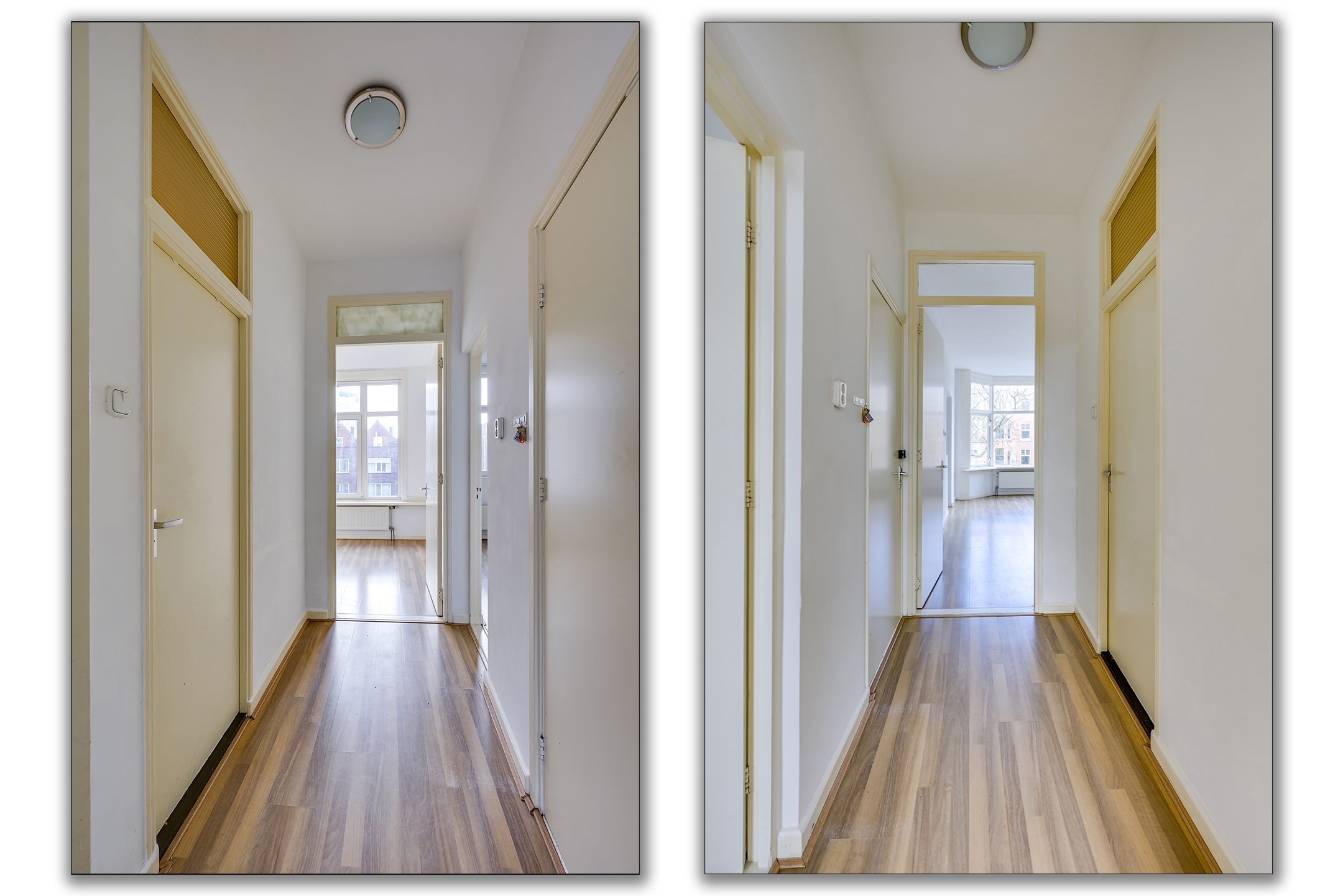 Op de tweede verdieping kom je binnen in de hal, die toegang geeft tot de verschillende vertrekken van de woning. Wat direct opvalt is de praktische indeling en de prettige lichtinval.