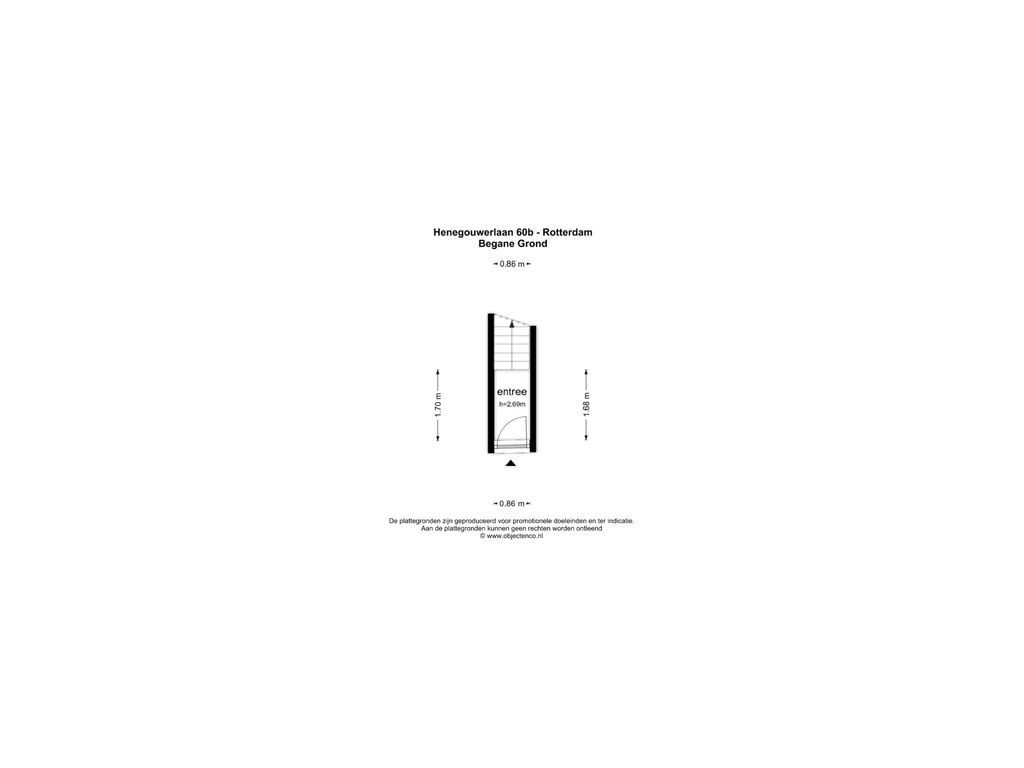 Bij binnenkomst beschik je over de gedeelde entree op de begane grond. Vanuit hier leidt een vaste trap je naar de tweede woonlaag, waar het woongedeelte van de woning zich bevindt.