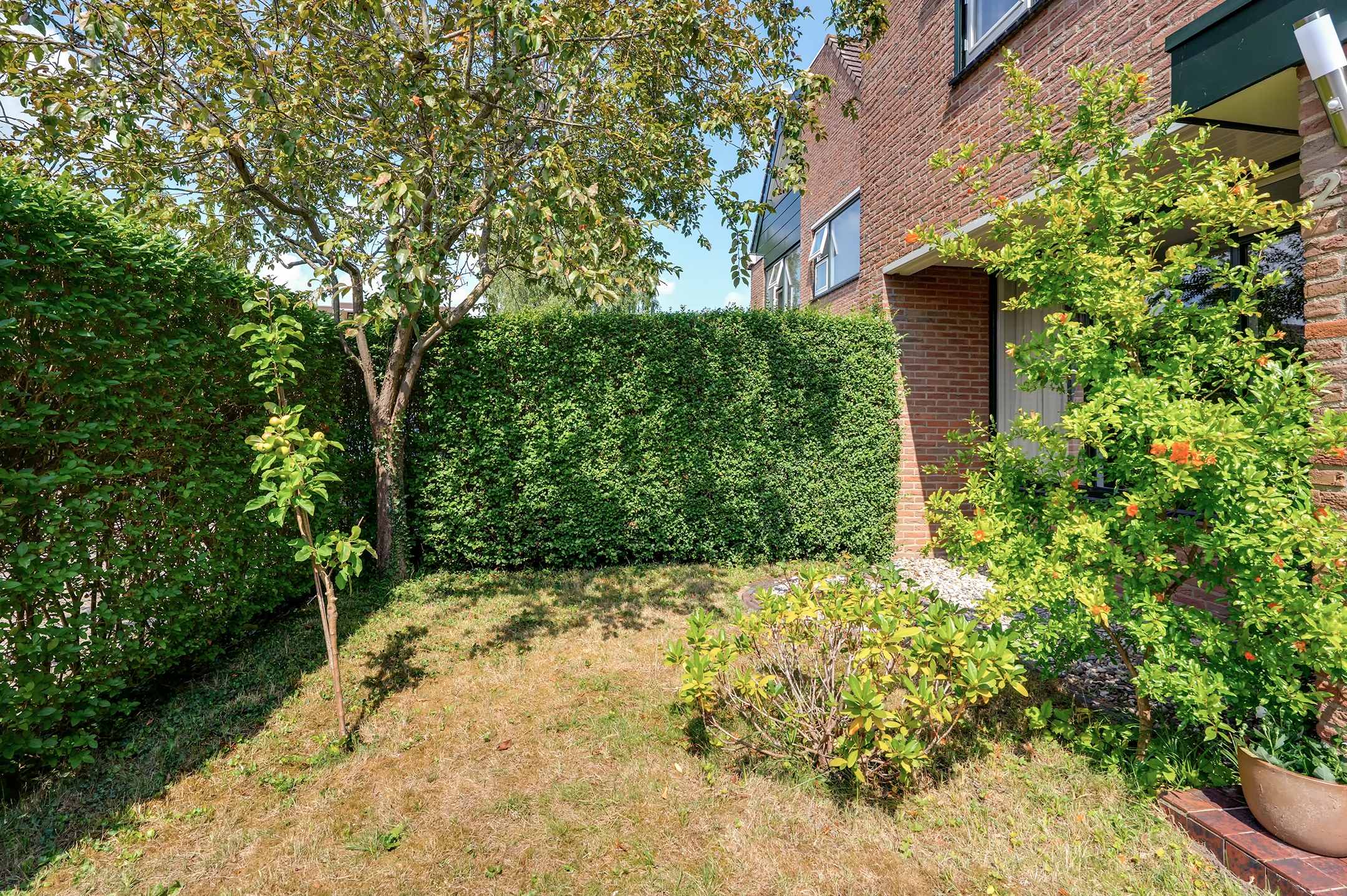 Via de fraai aangelegde voortuin is de woning te bereiken. De voortuin is gelegen op het noordwesten en voorzien van bestrating, graszode en diverse beplanting.