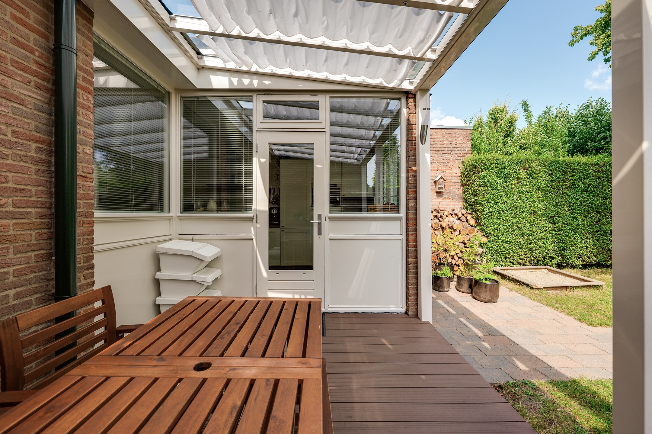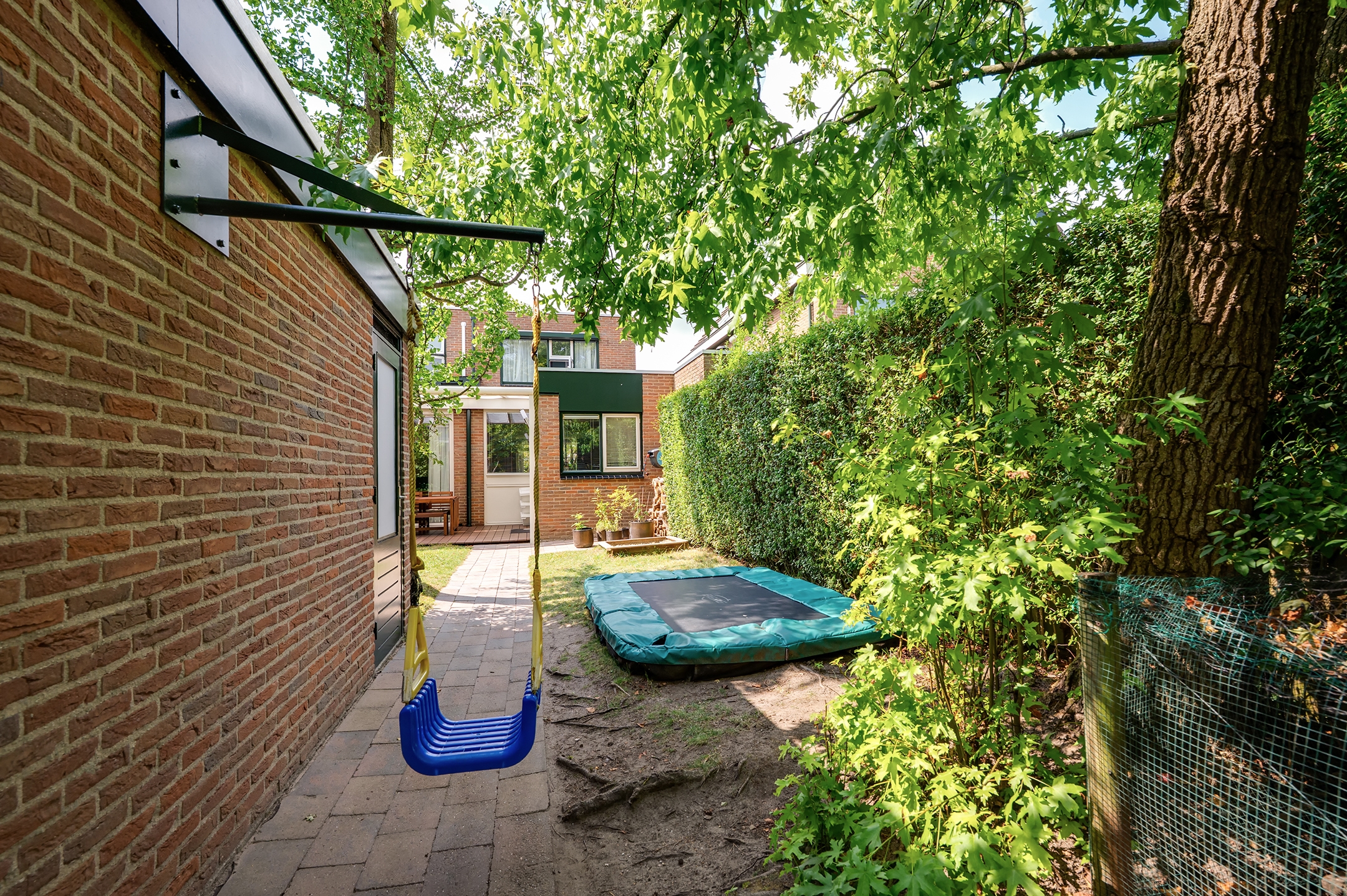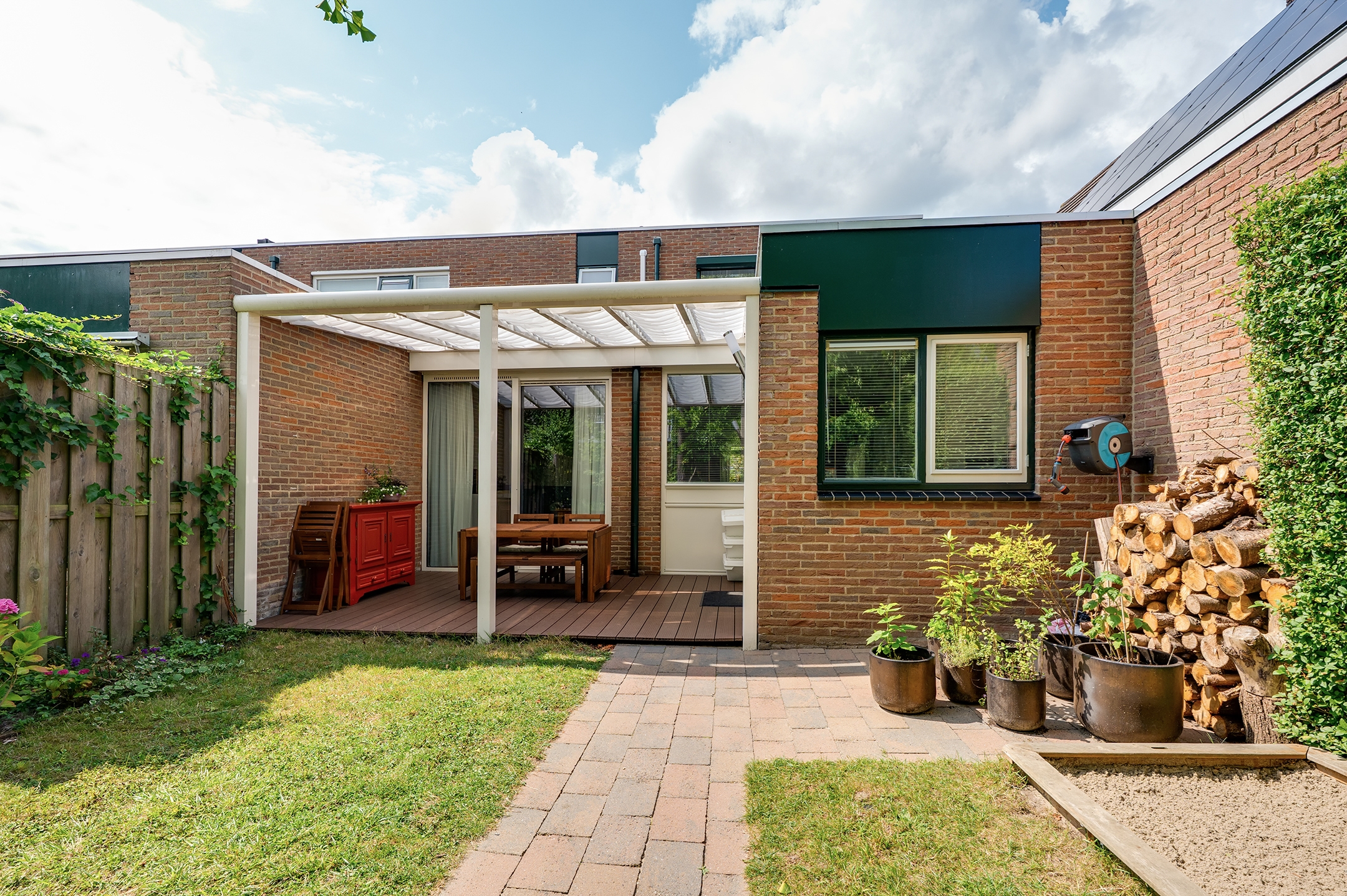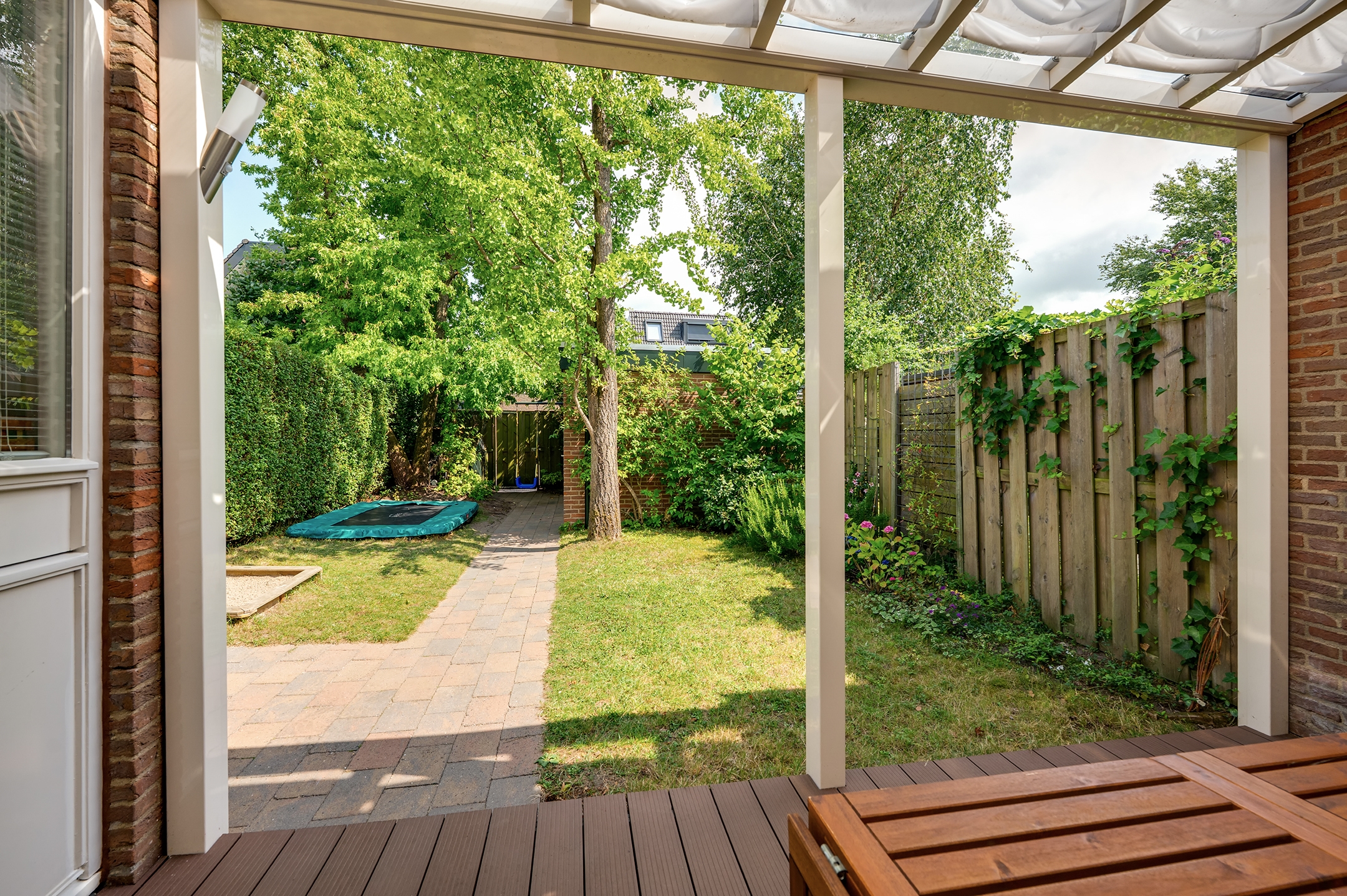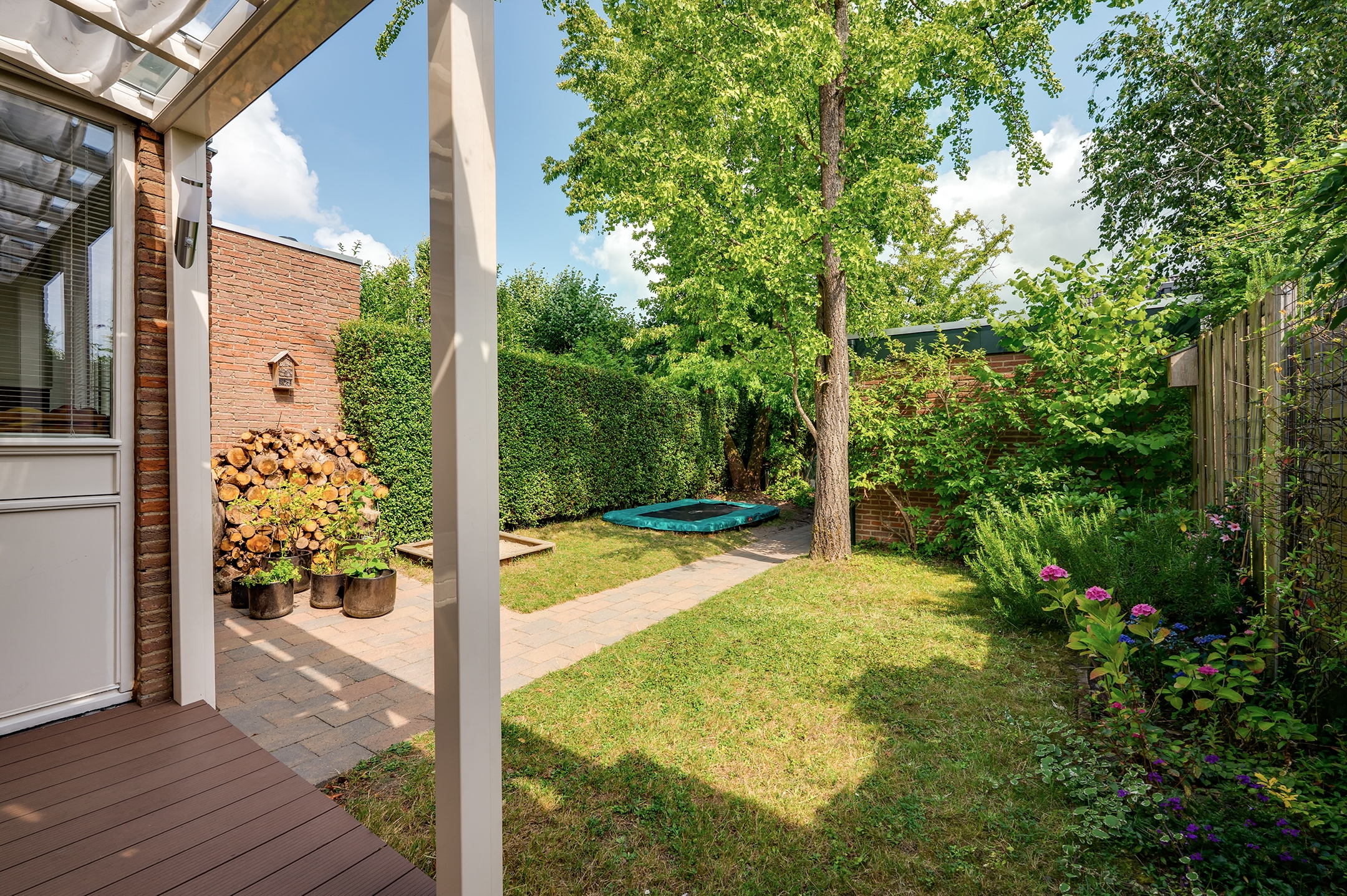 De fraai aangelegde achtertuin is gelegen op het zuidoosten en is voorzien van bestrating, vlonders, graszode en diverse beplanting. Deze tuin is de perfecte plek om te genieten van het buitenleven, of je nu wilt barbecueën met vrienden, een trampoline wilt neerzetten voor de kinderen of een boek wilt lezen in alle rust. De overkapping met screens zorgt ervoor dat je de vrijheid hebt om in de zon te zitten of de schaduw op te zoeken. Tevens is de vrijstaande stenen garage te bereiken en is er een achterom aanwezig.