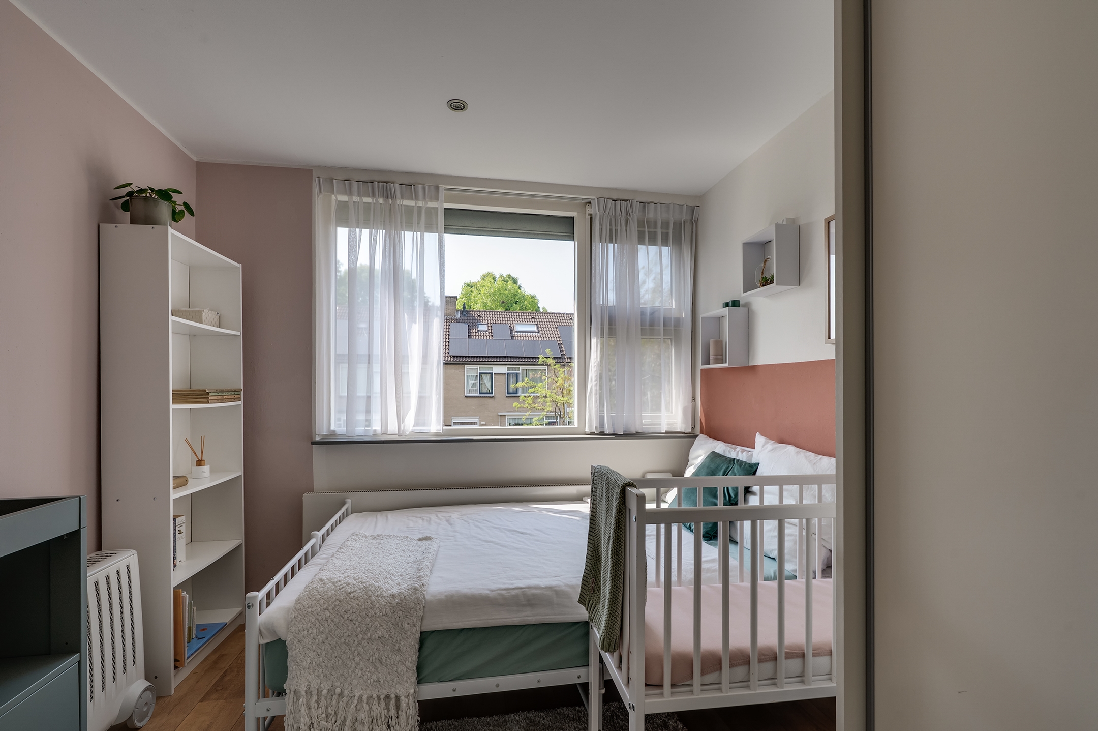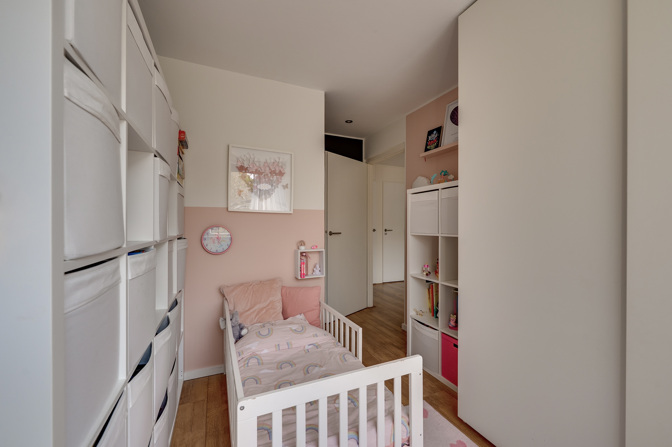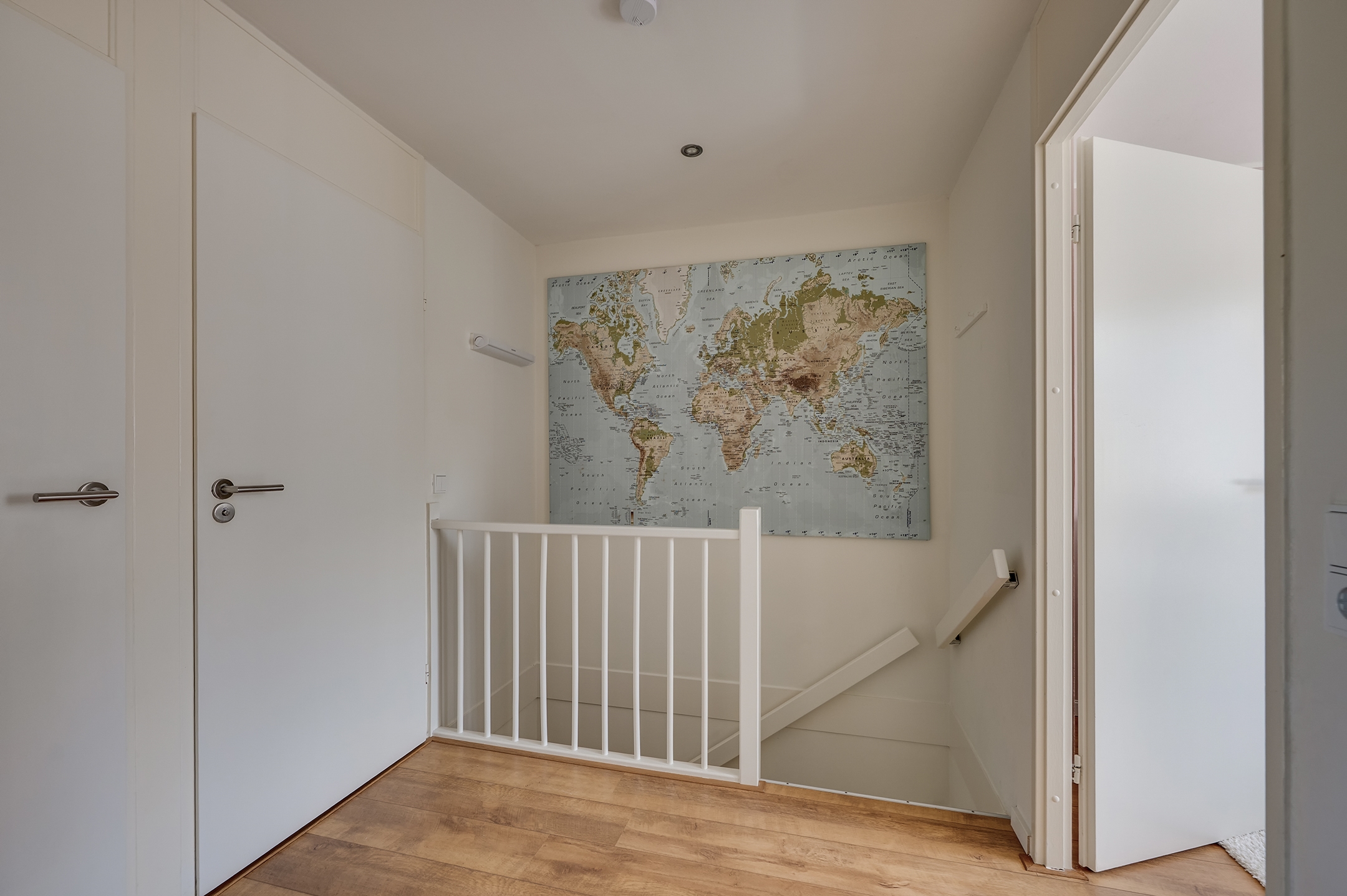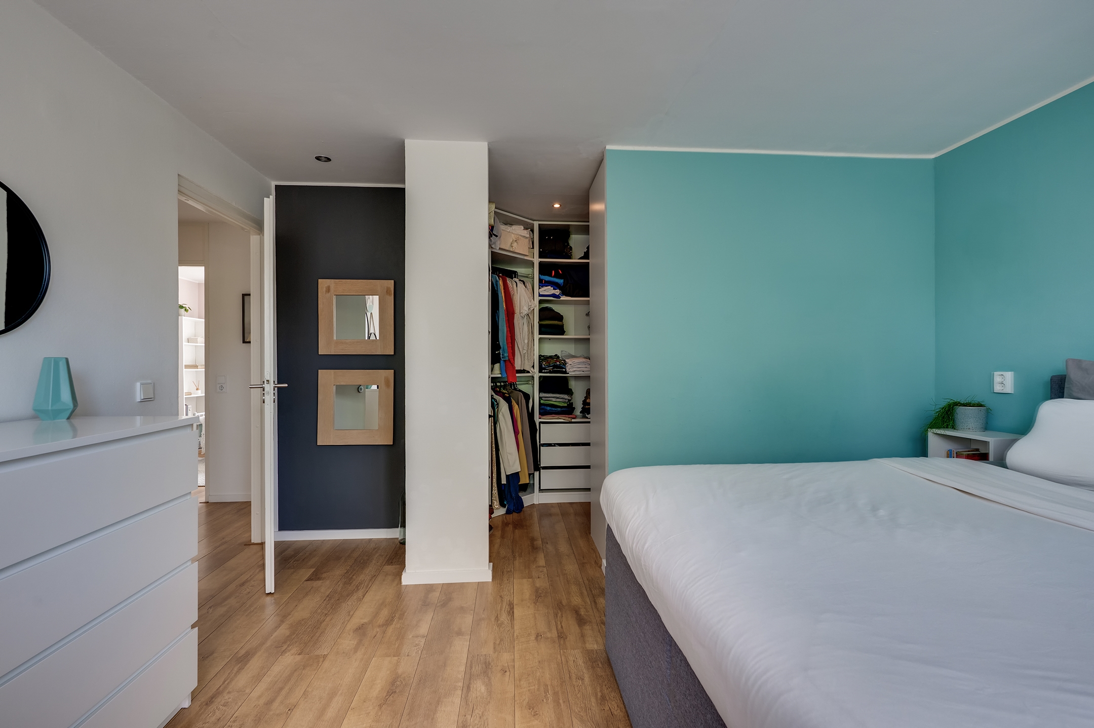 Vanaf de overloop is er toegang tot alle vertrekken en beschikt over een bergkast v.v. de opstelplaats van de C.V.-ketel en de hybride warmtepomp. Op deze verdieping zijn er drie slaapkamers aanwezig. De master bedroom is aan de achterzijde van de woning gesitueerd en beschikt over een ruime walk-in closet. De andere twee slaapkamers zijn aan de voorzijde van de woning gelegen.