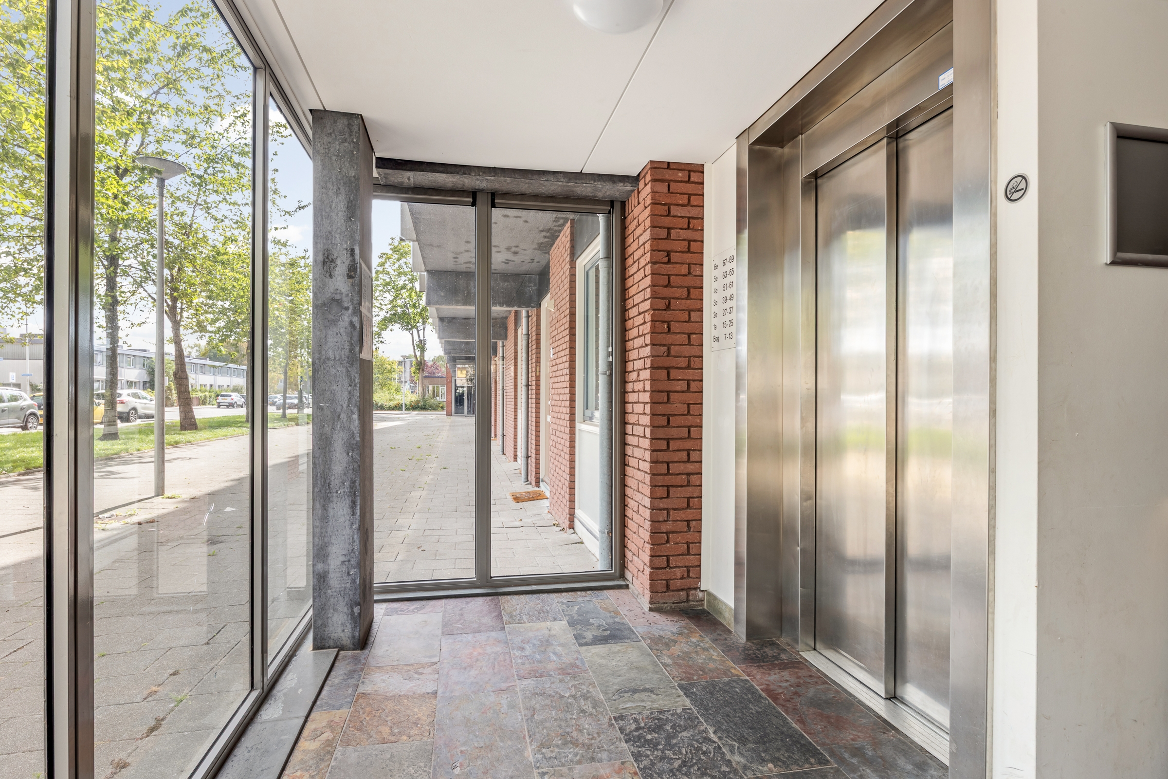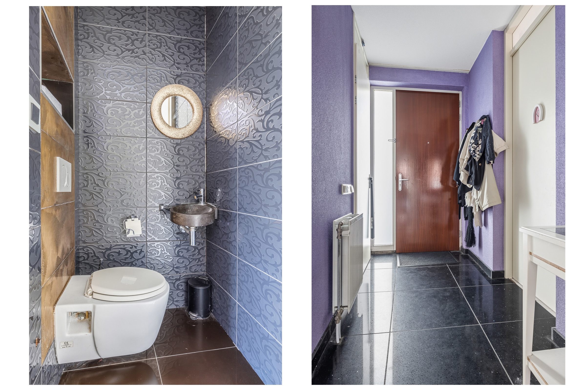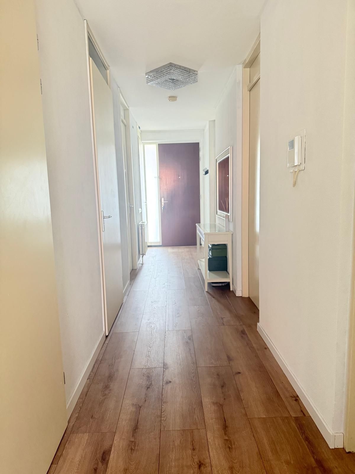Via de centrale entree met intercom en lift kom je bij het appartement. Je stapt binnen vanuit de galerij in de hal die toegang geeft tot alle vertrekken. Hier is ook direct de meterkast en het toilet.