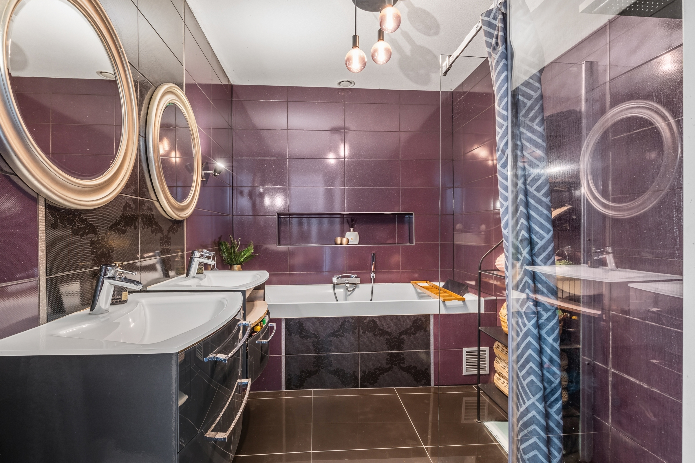 6. Stijlvolle badkamer met ligbad en dubbele wastafel