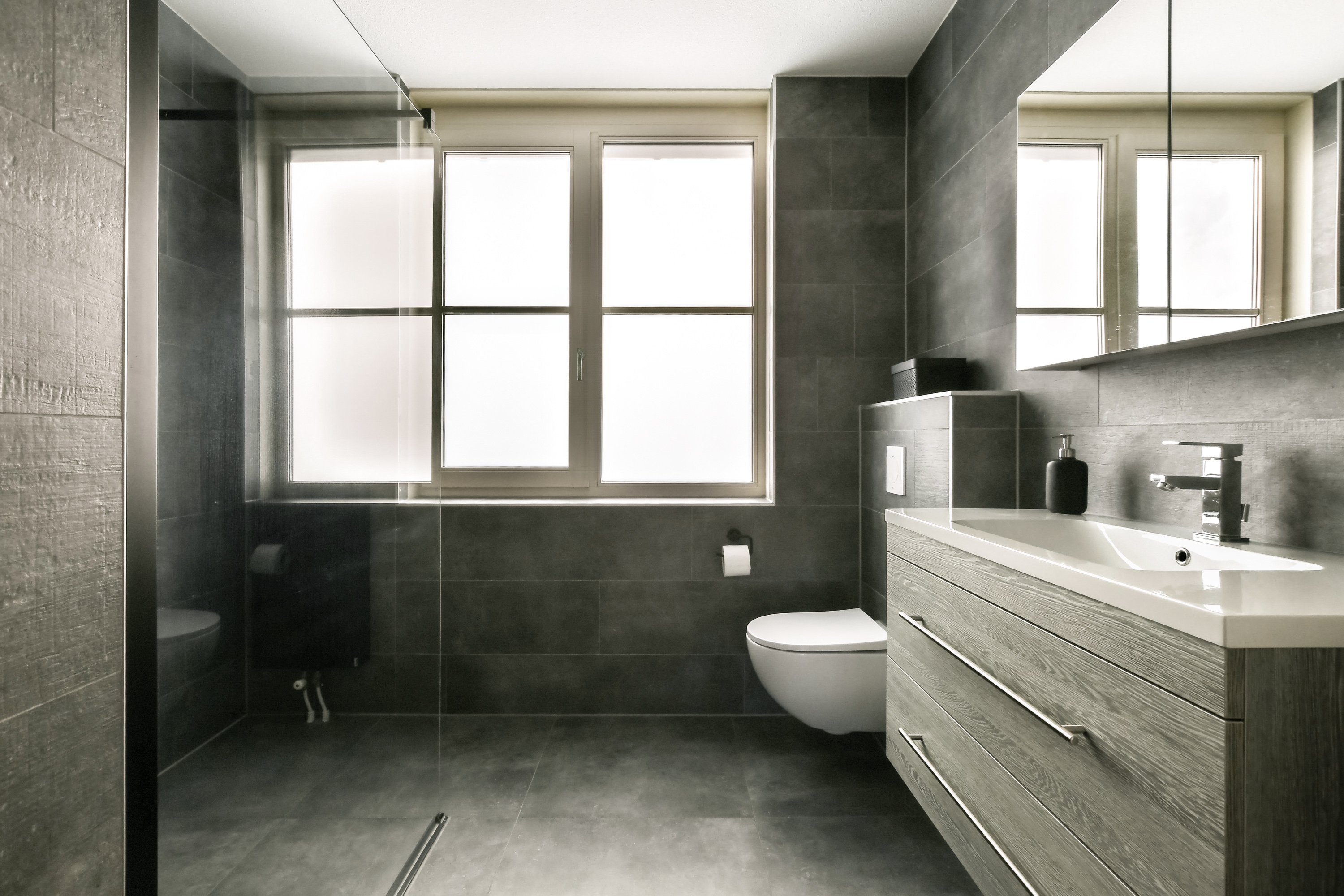 Op deze verdieping vind je drie ruime slaapkamers en een ruime badkamer. De badkamer is eigentijds ingericht met een moderne inloopdouche, strak tegelwerk en een stijlvol wastafelmeubel. Alles is uitgevoerd in een luxe, neutrale sfeer die perfect aansluit bij de rest van de woning.