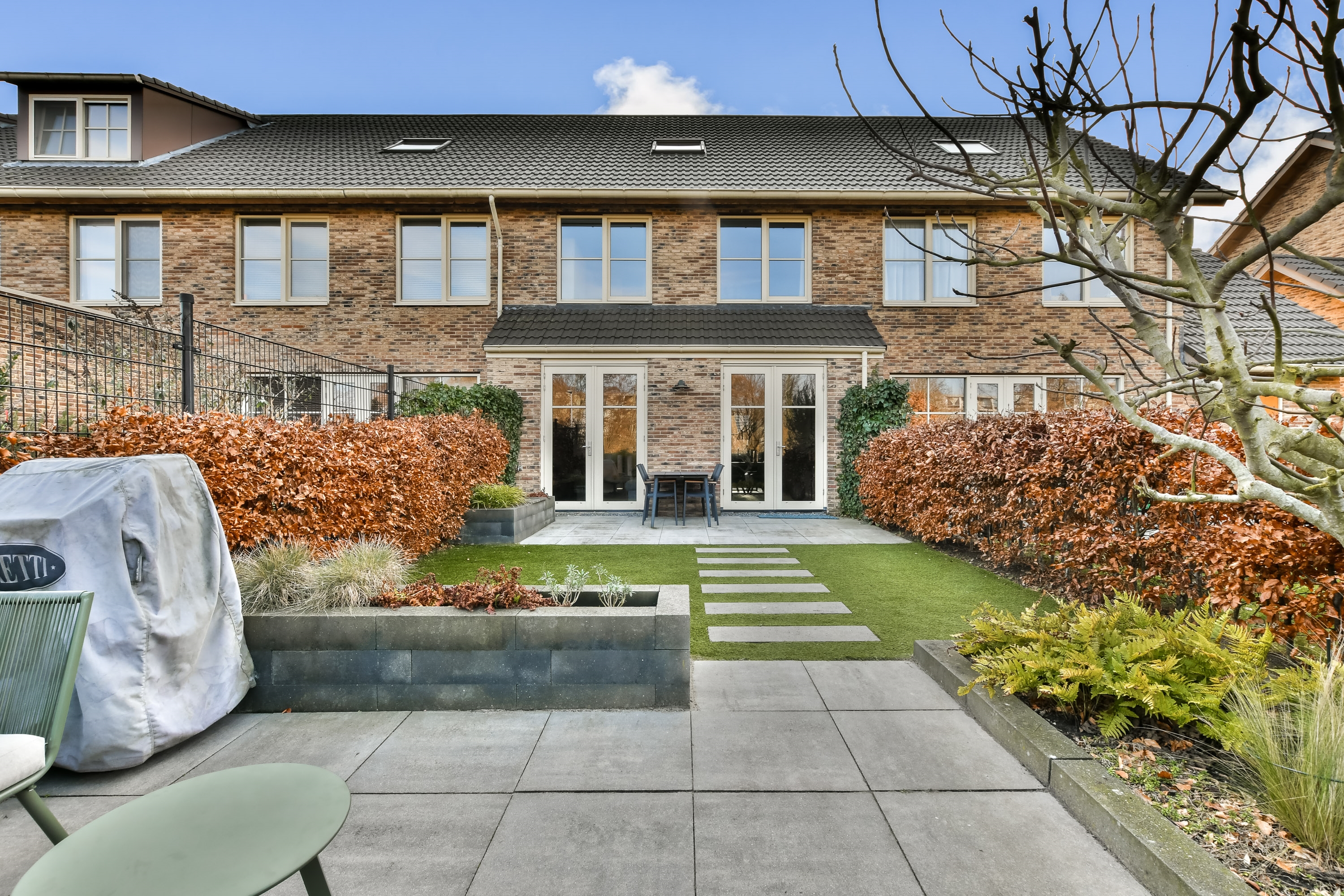 Ook buiten is het volop genieten. De achtertuin is netjes aangelegd en biedt een fijne plek om in alle rust te ontspannen. Door de vrije ligging aan de achterzijde kan je in alle rust genieten. Of je nu ’s ochtends met een kop koffie buiten zit of in de zomer gezellig wilt barbecueën, deze tuin is een echte meerwaarde. Door de diepe achtertuin heb je de hele dag het zonnetje in de tuin!