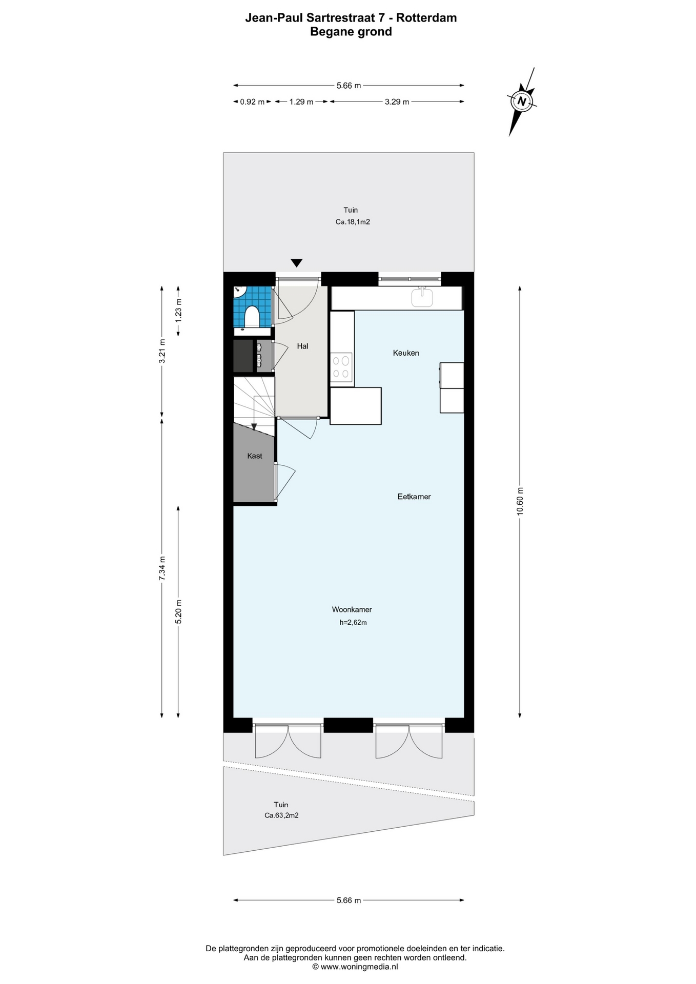 Voor de afmetingen en indeling, zie de plattegronden.