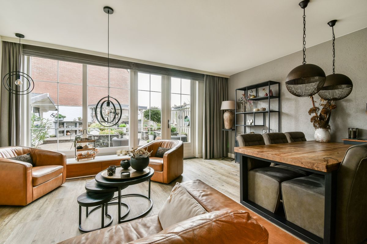 2. Sfeervolle woonkamer met openslaande deuren naar de tuin;