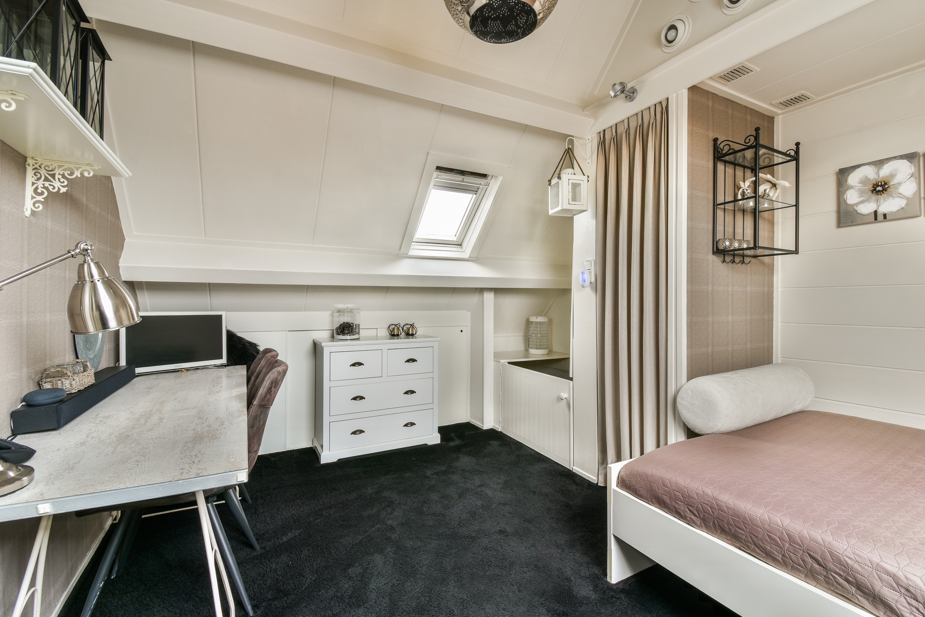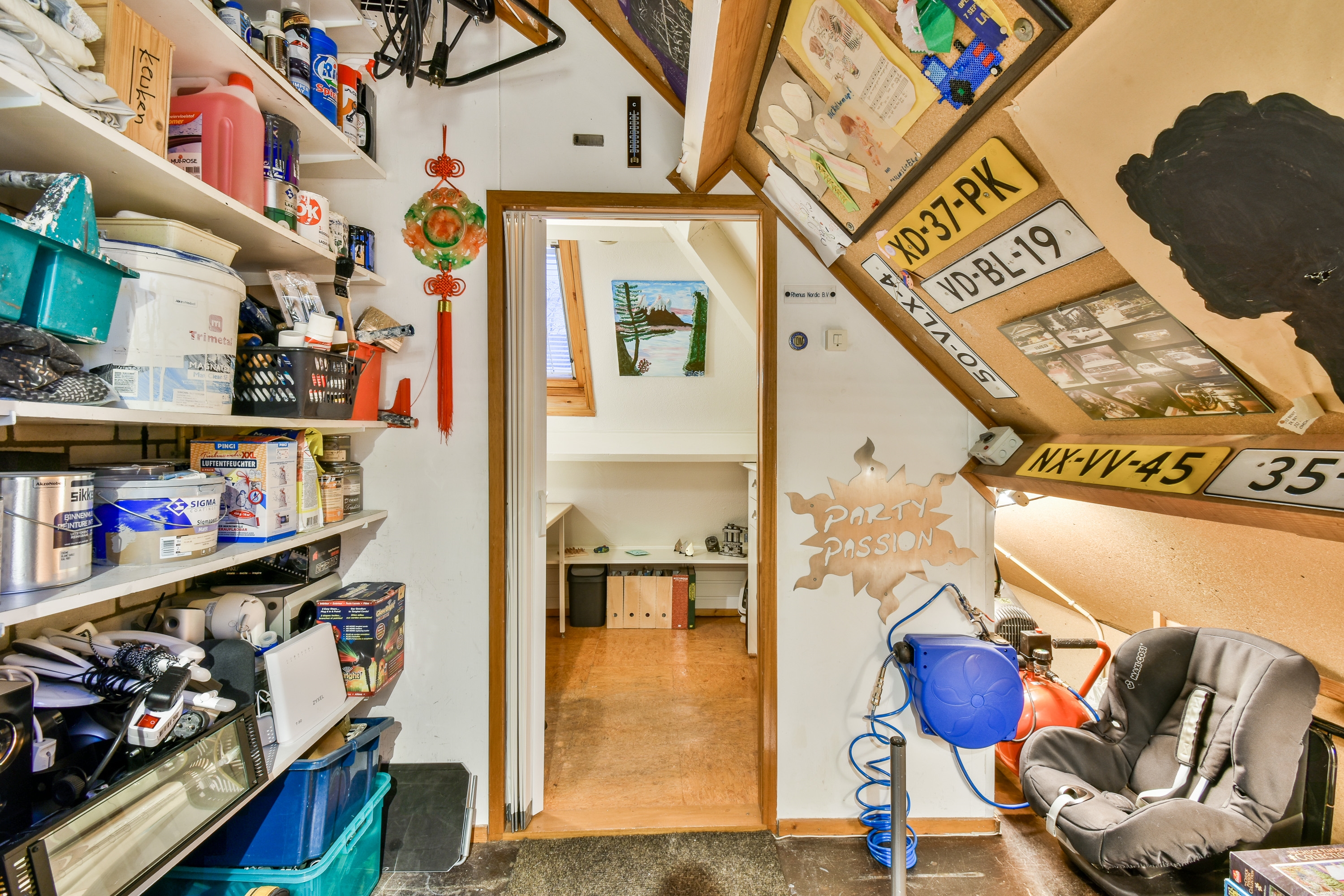 Via de vaste trap bereik je de tweede verdieping met een ruime vierde slaapkamer. Dankzij de hoogte voelt deze verdieping verrassend ruim aan. Daarnaast is er extra bergruimte aanwezig met hier plaats voor de wasmachine, droger en de opstelplaats voor de CV-ketel. Achter de knieschotten is bergruimte aanwezig voor seizoensspullen.