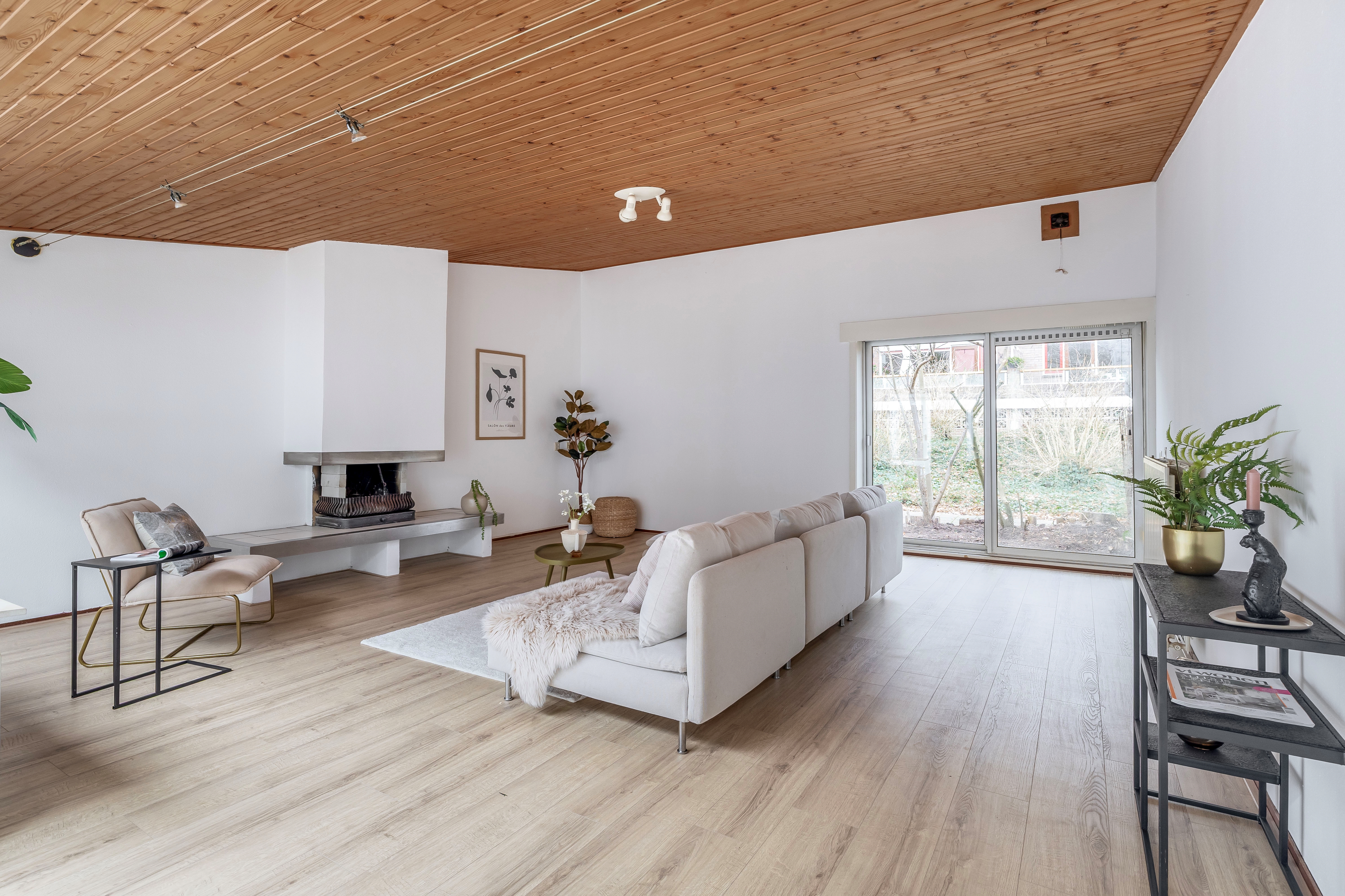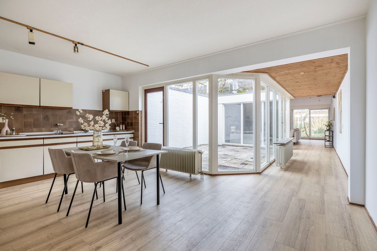 Via de keuken bereik je de woonkamer, die dankzij de lengte en breedte volop mogelijkheden biedt voor een comfortabele zithoek én een grote eettafel.