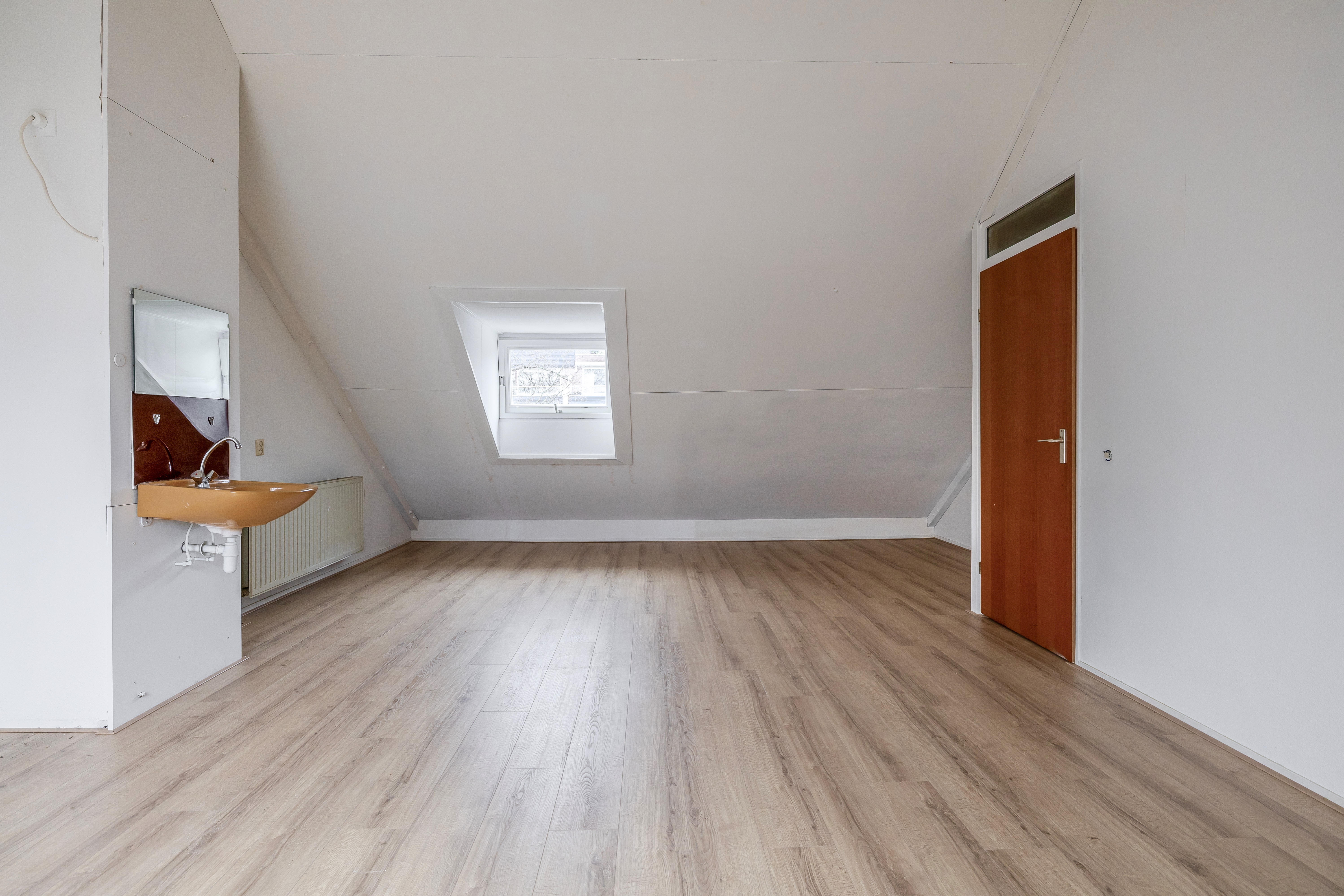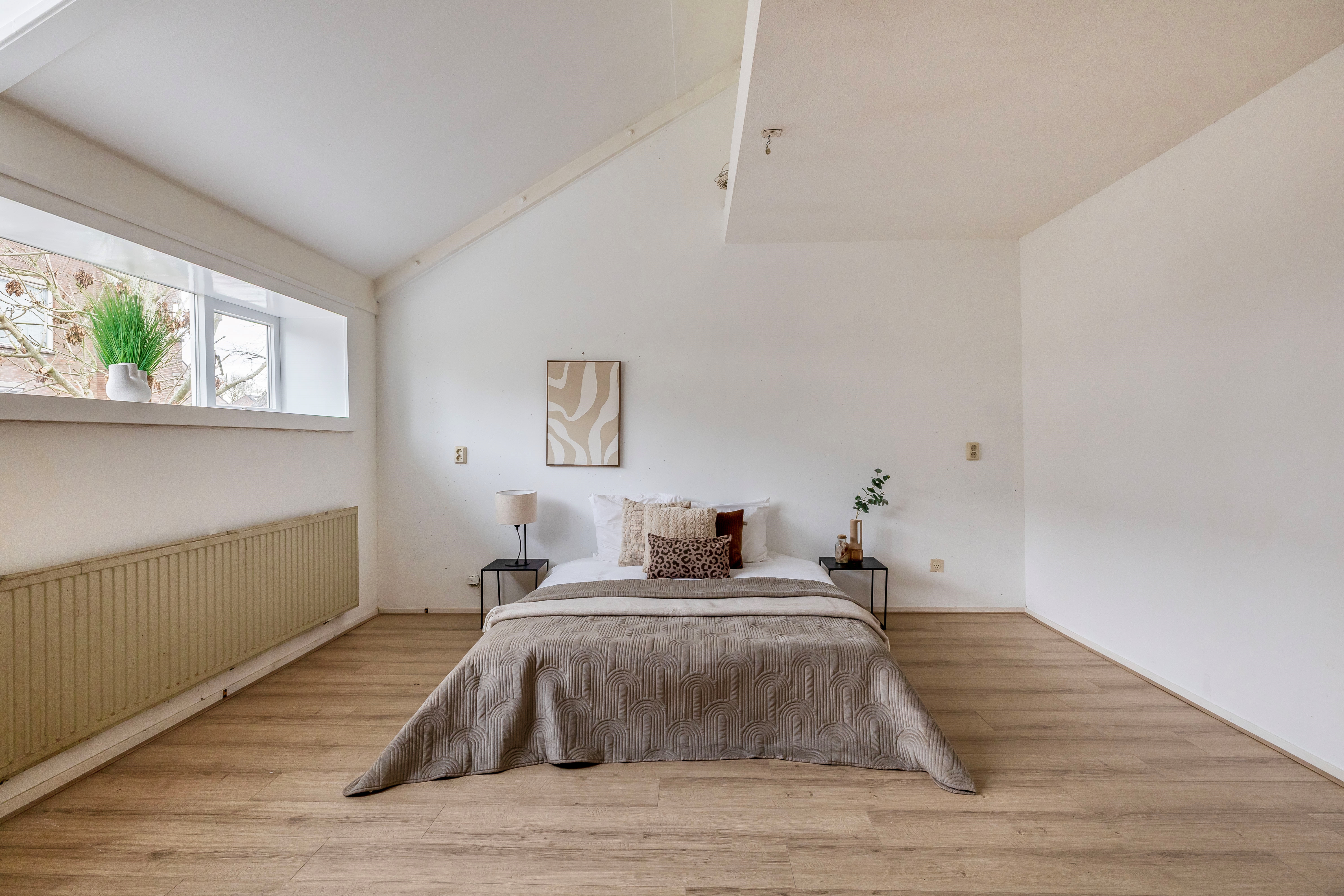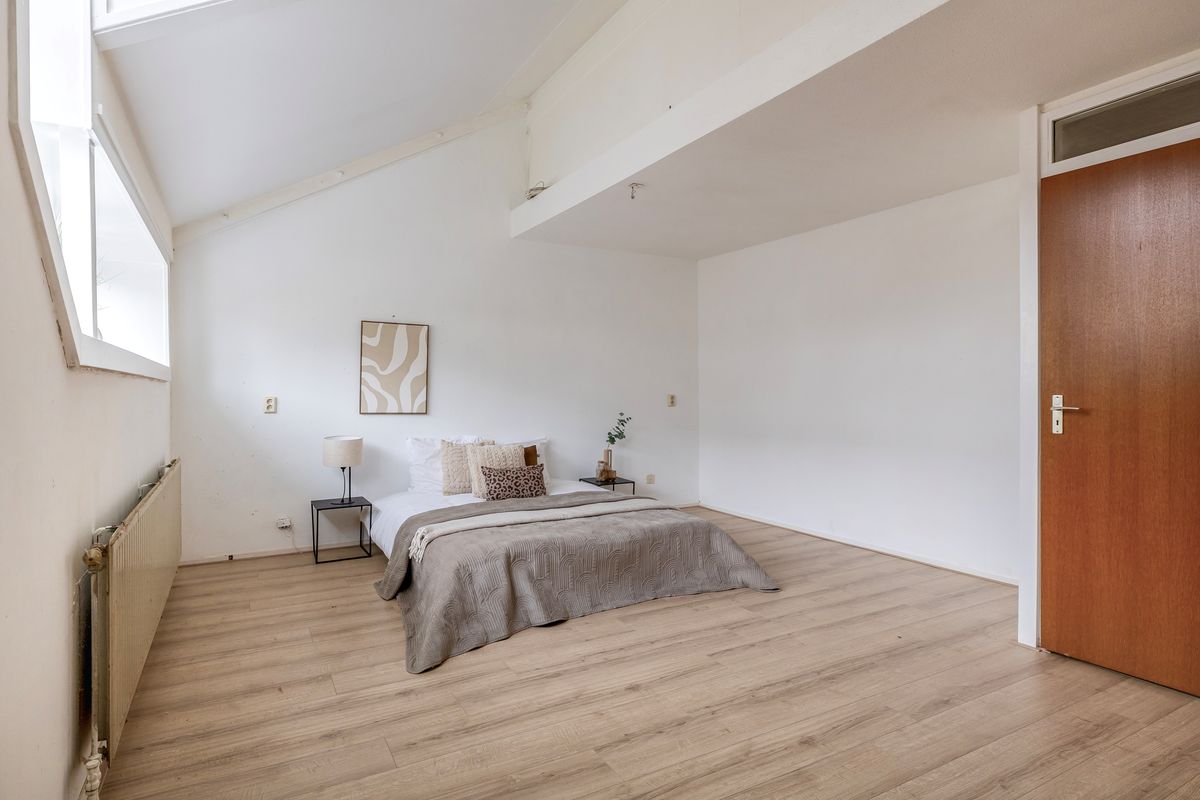 De tweede verdieping biedt een extra ruime slaapkamer met veel volume en mogelijkheden, ideaal als master bedroom, werkruimte of hobbykamer.