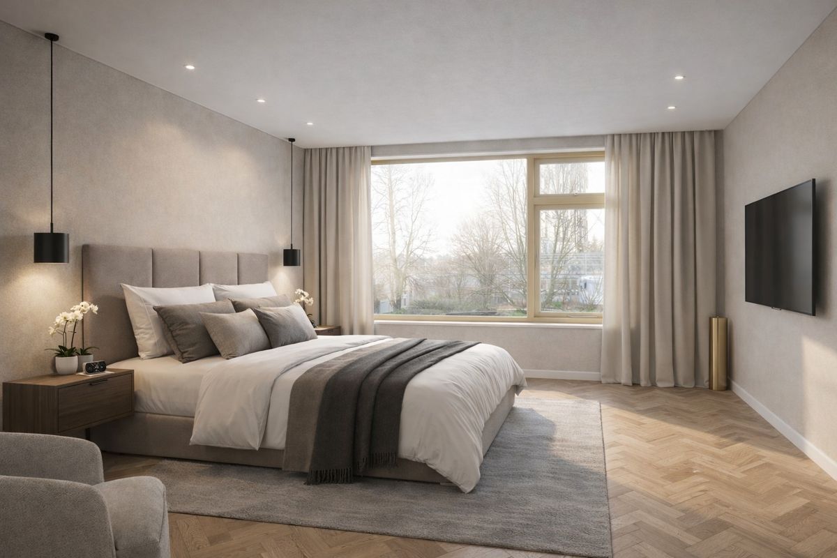 De woonkamer wordt een heerlijke leefruimte met veel licht dankzij de grote raampartijen en de nieuwe pui aan de achterzijde van de woning. Hierdoor ontstaat een prachtige verbinding met de tuin en voelt de ruimte extra ruim en licht aan.