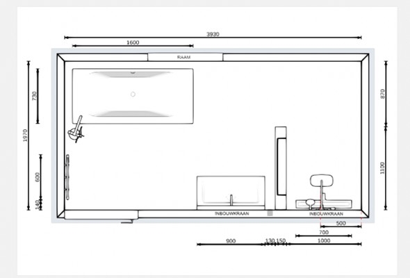 Voor de afmetingen en indeling, zie de plattegrond.