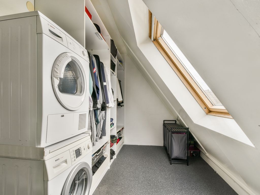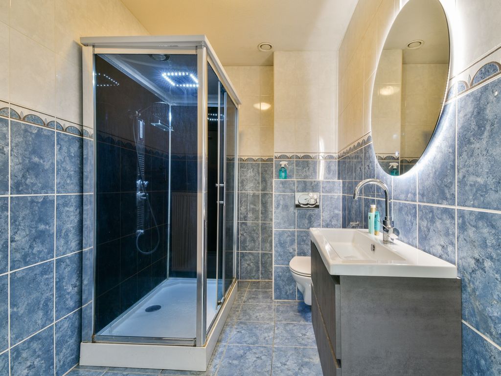 Boven zijn er drie slaapkamers, waaronder de royale inloopkast met dakraam, een aparte wasruimte en een nette badkamer met moderne douchecabine met regendouche, massagejets, LED-verlichting, radio, Bluetooth en digitale bediening. De wasruimte is ruim genoeg voor extra opslag of een inloopkast.
