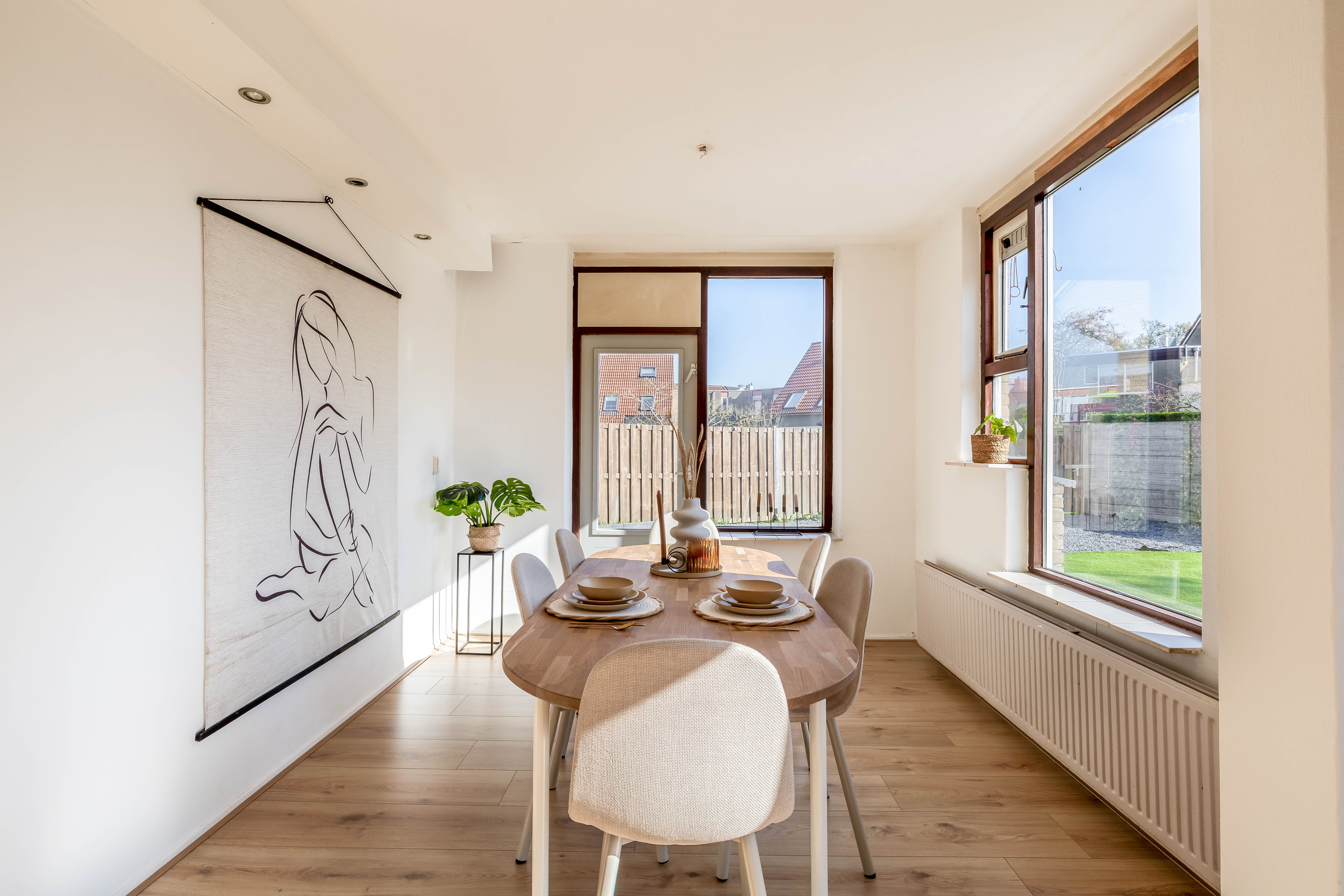 De woonkamer is heerlijk ruim opgezet en ligt aan de achterzijde van de woning. Vanuit hier heb je toegang tot de heerlijke achtertuin, waar je op verschillende plekken gezellige zitjes kunt creëren en waar kinderen heerlijk kunnen spelen op het kunstgrasveldje. Extra fijn is de handige achterom. Dankzij de fijne afmetingen heb je in de woonkamer volop ruimte voor een royale zithoek waar je gezellig samenkomt met familie en vrienden. Aansluitend bereik je de eetkamer, een leuke extra ruimte die perfect is als aparte eetplek, maar ook ideaal kan zijn als speelkamer, werkhoek of hobbyruimte.