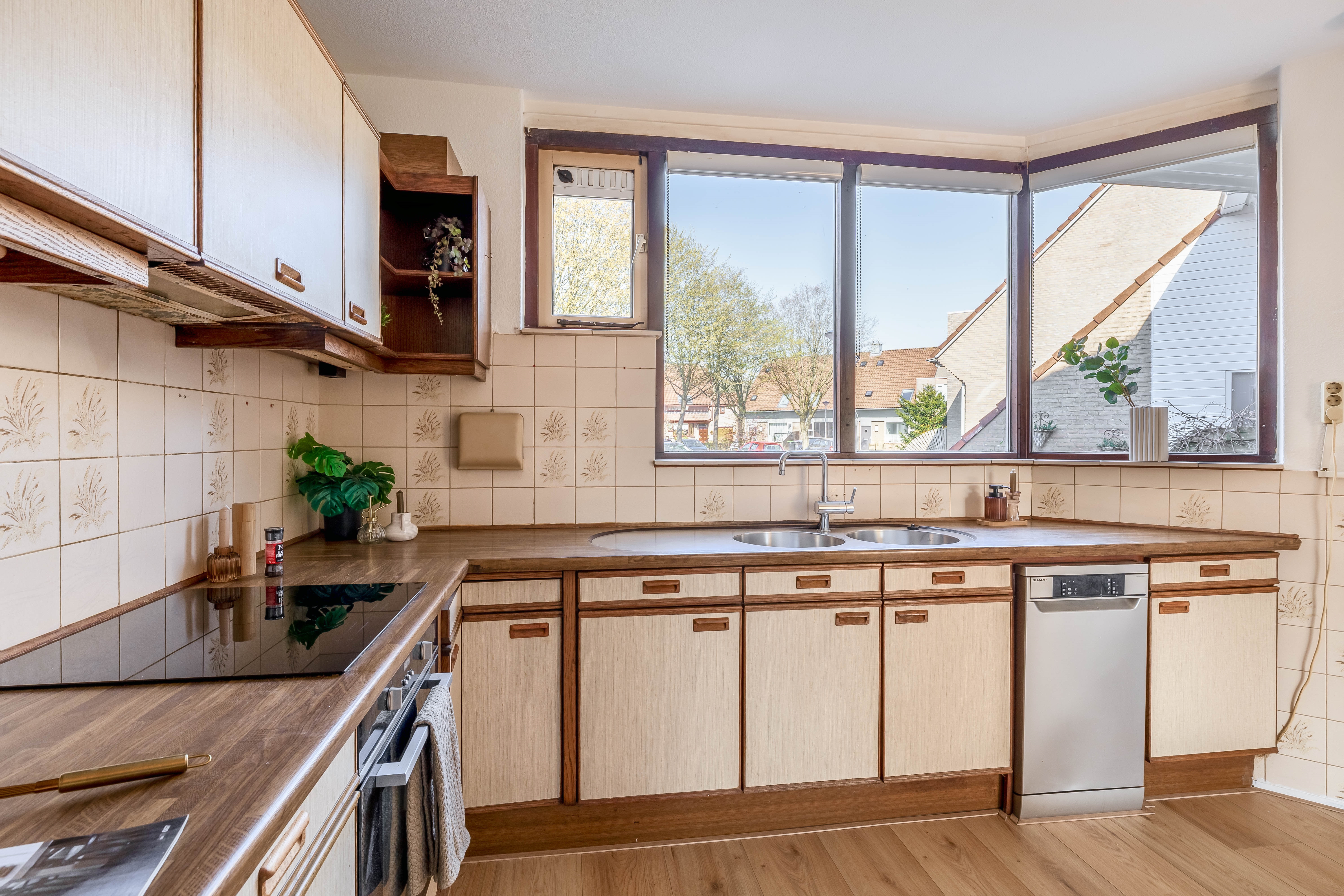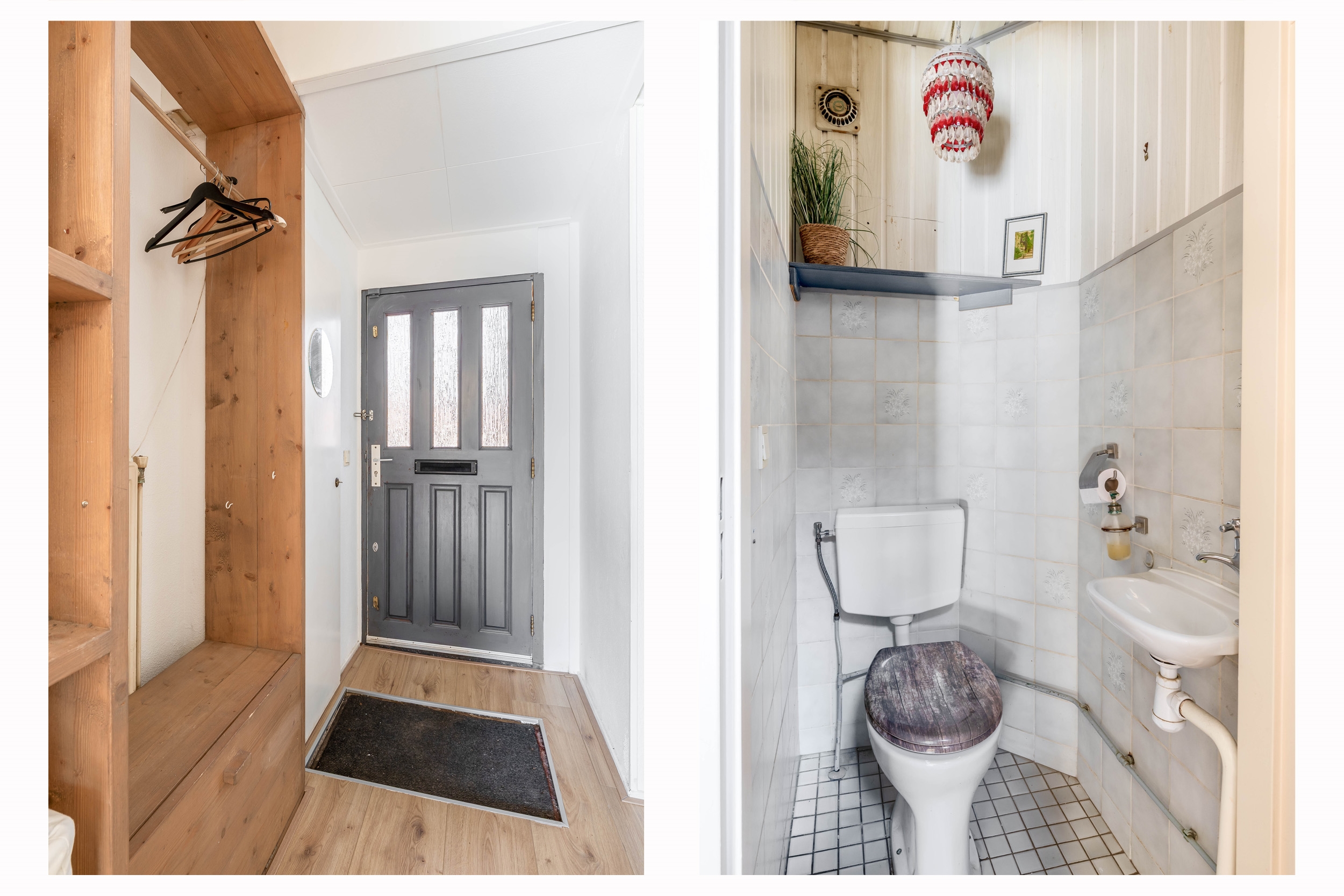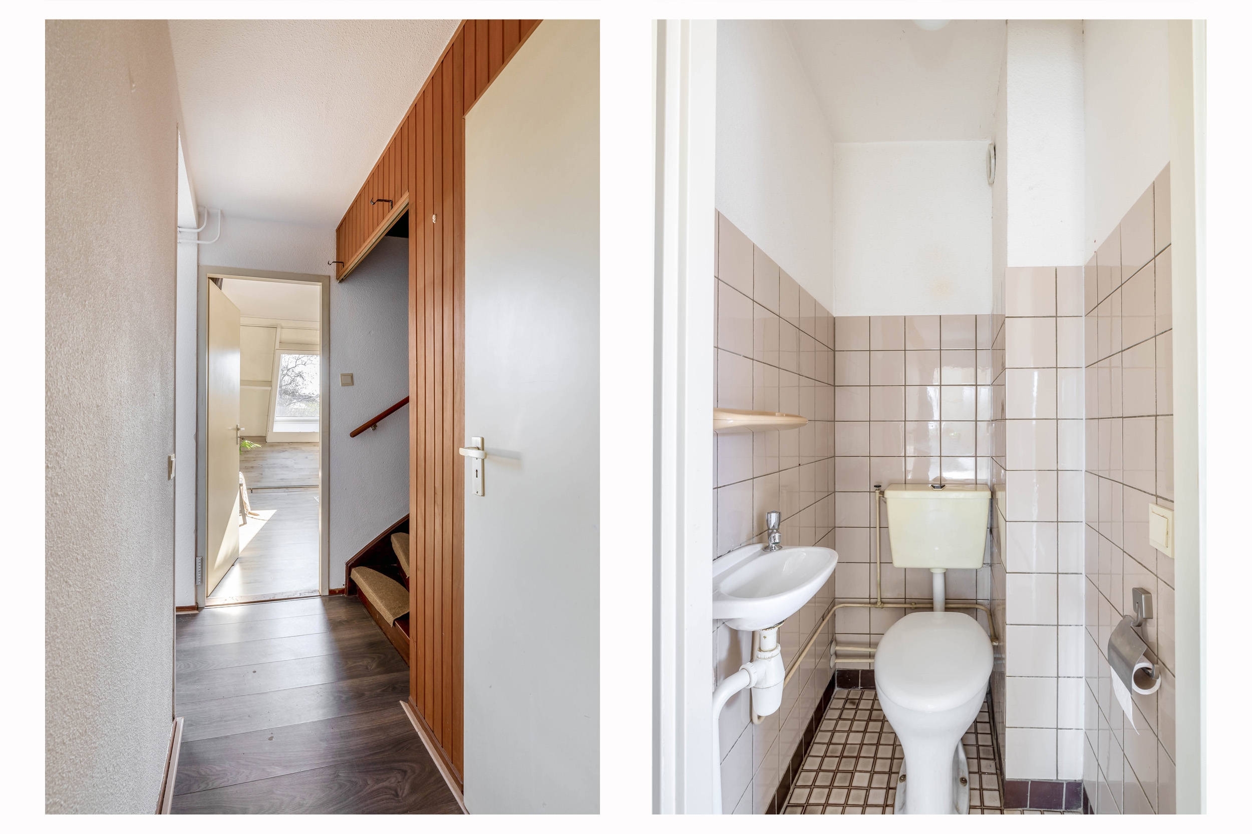 Je komt de woning binnen in de entreehal, waar je direct toegang hebt tot de meterkast, de toiletruimte, de badkamer en de verschillende leefruimtes op de begane grond. Aan de voorzijde vind je de keuken, een fijne plek waar je met wat liefde en aandacht weer een heerlijke woonkeuken van kunt maken.