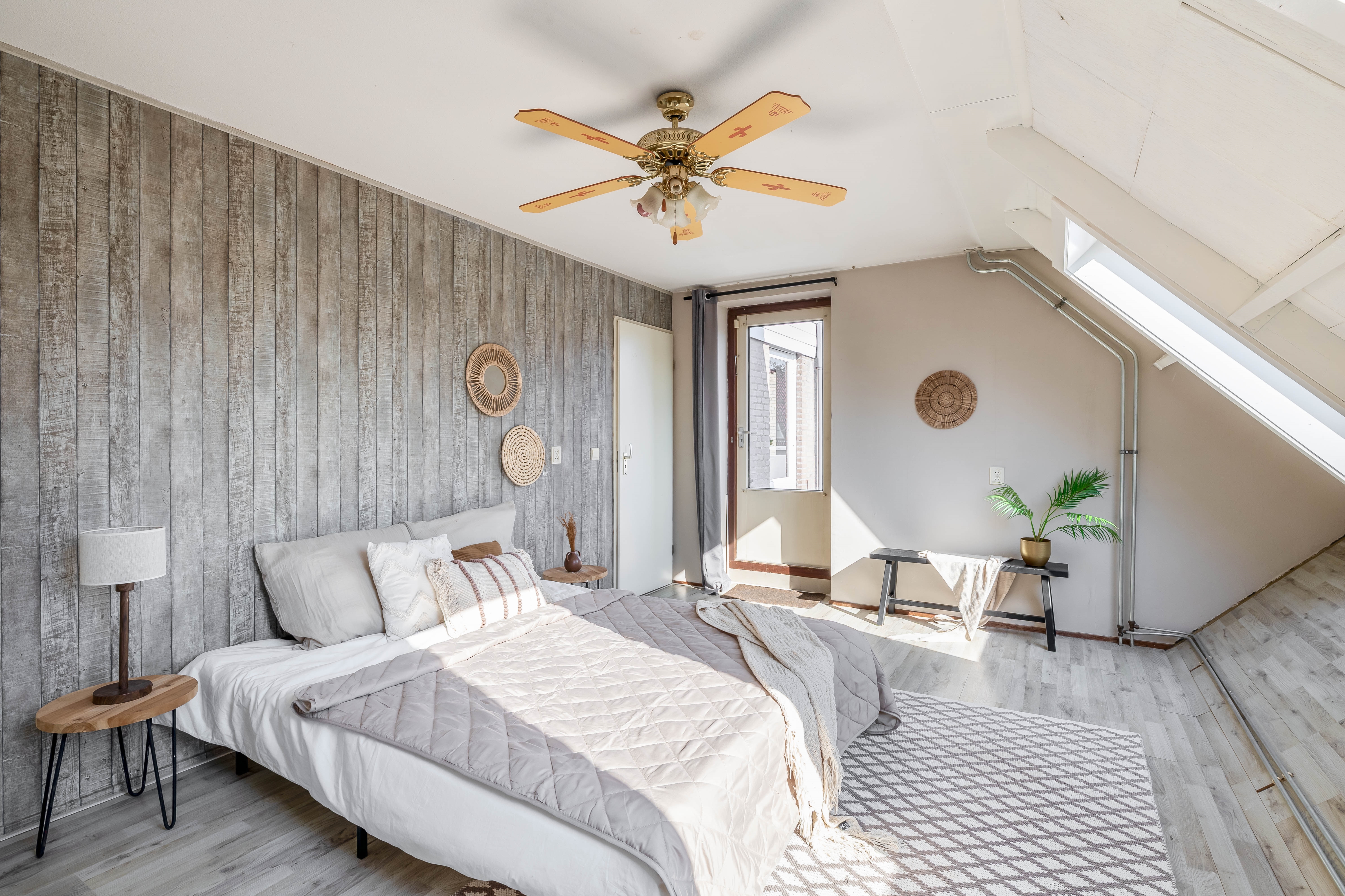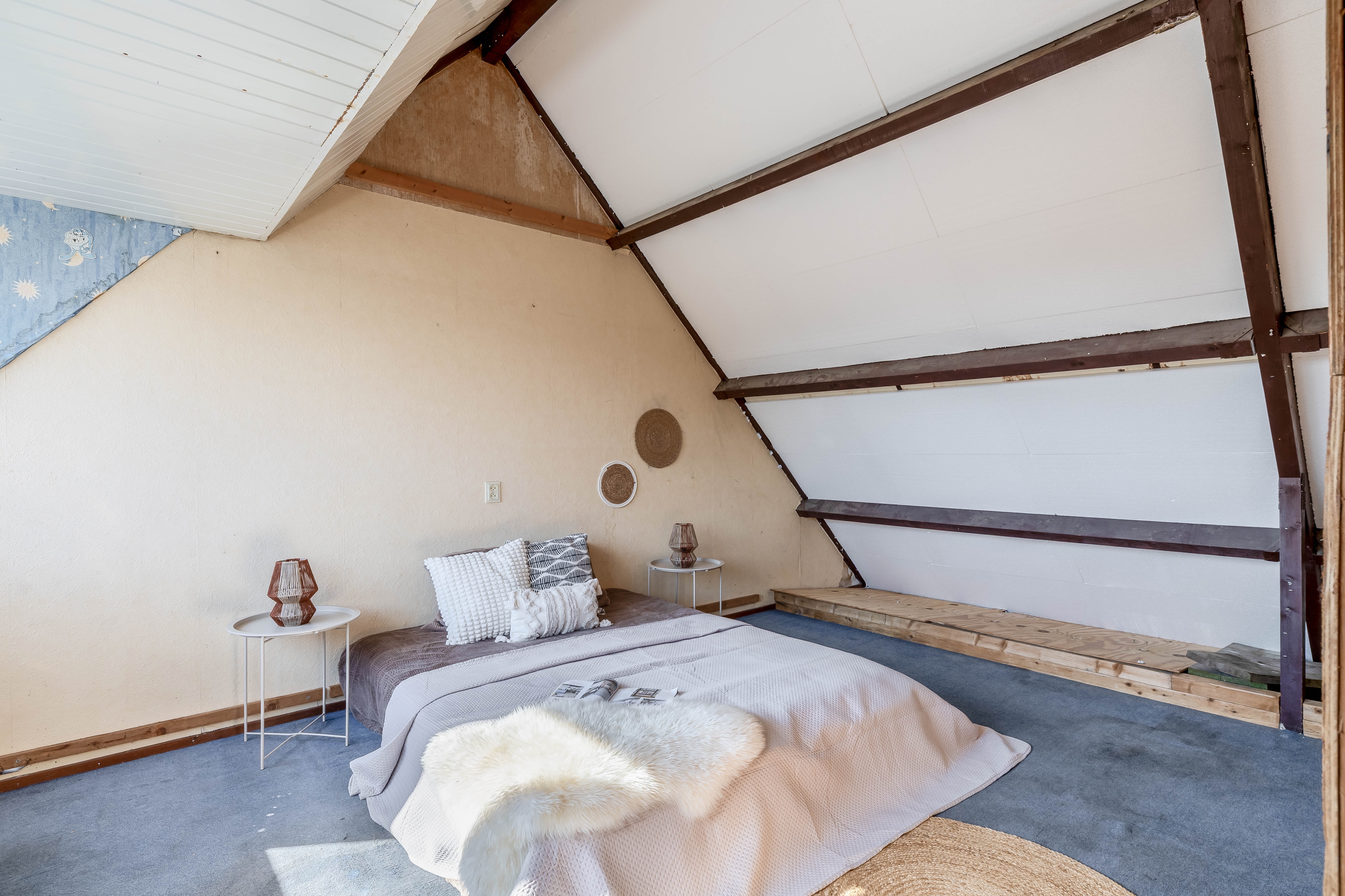 Via een vaste trap bereik je de tweede verdieping. Hier vind je een ruime overloop en een verrassend grote vierde slaapkamer. Dankzij het formaat en de indeling is dit een fantastische verdieping die je op meerdere manieren kunt gebruiken. Denk aan een royale hoofdslaapkamer, een rustige thuiswerkplek, hobbyruimte of een fijne logeerkamer. Door de schuine kap heeft deze verdieping een speels karakter en volop sfeer.