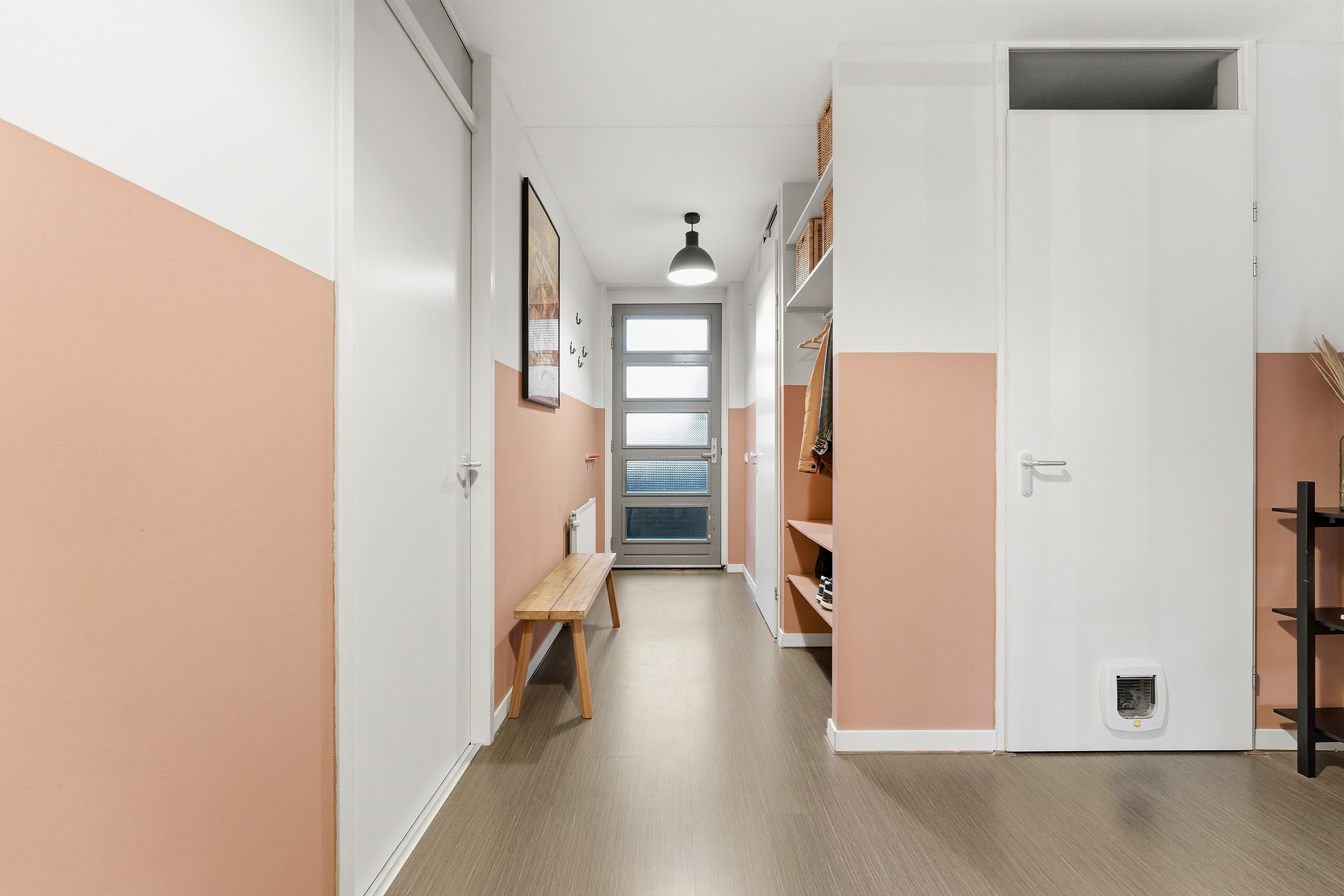 Via de voordeur stap je binnen in de brede hal die centraal in de woning ligt en direct toegang geeft tot alle vertrekken. De indeling is overzichtelijk en logisch, waardoor de woning een prettige looproute heeft en alle ruimtes gemakkelijk bereikbaar zijn.
