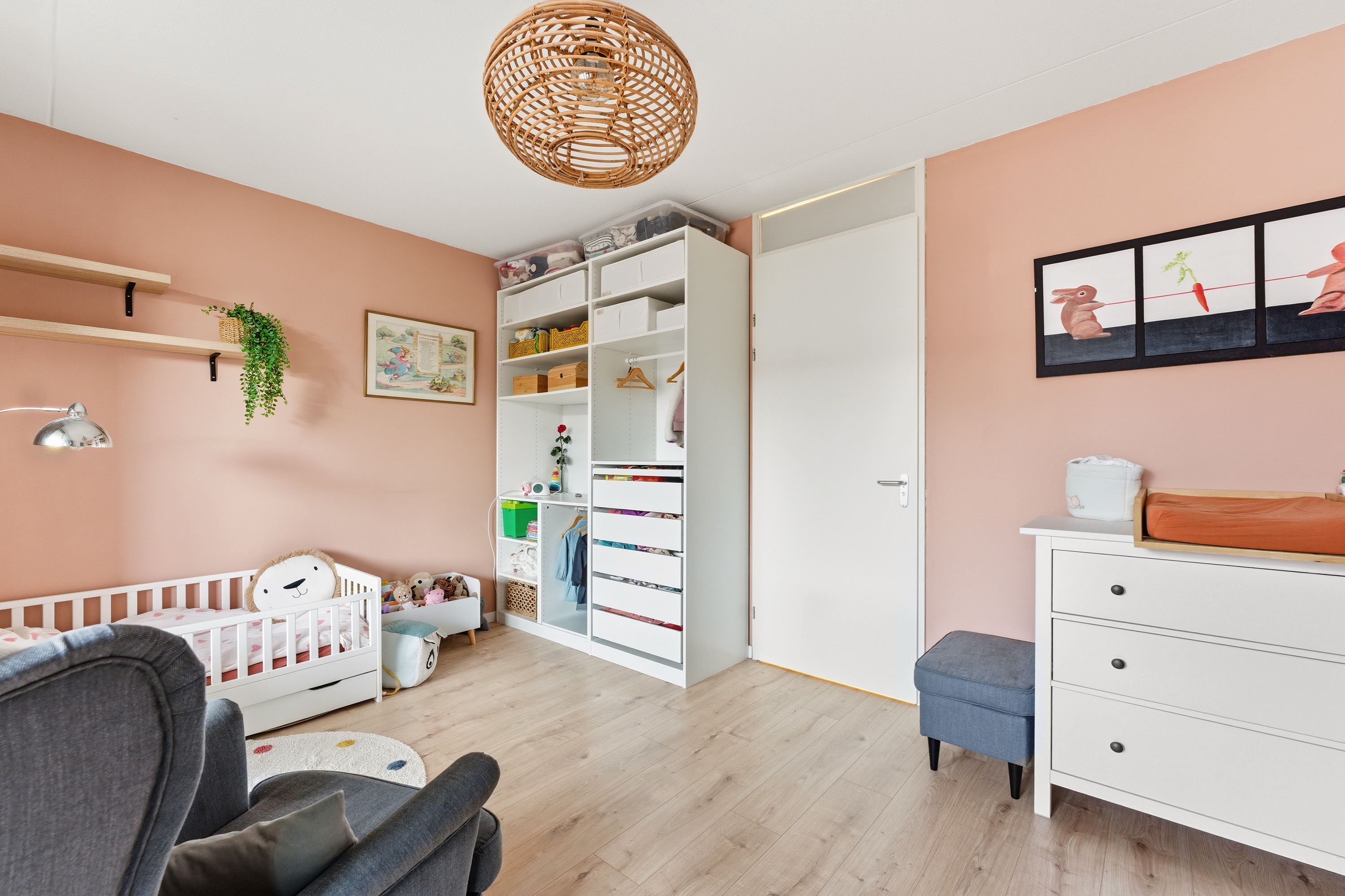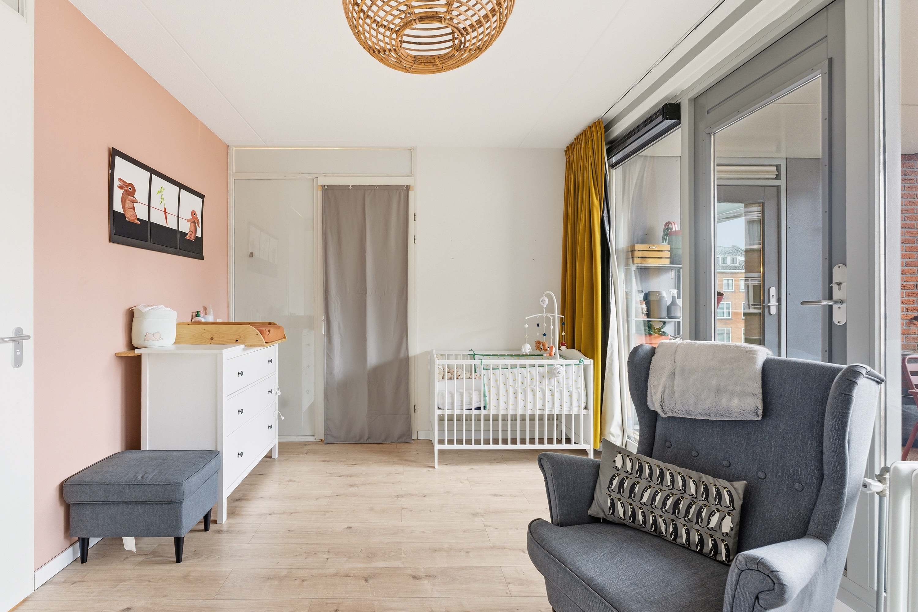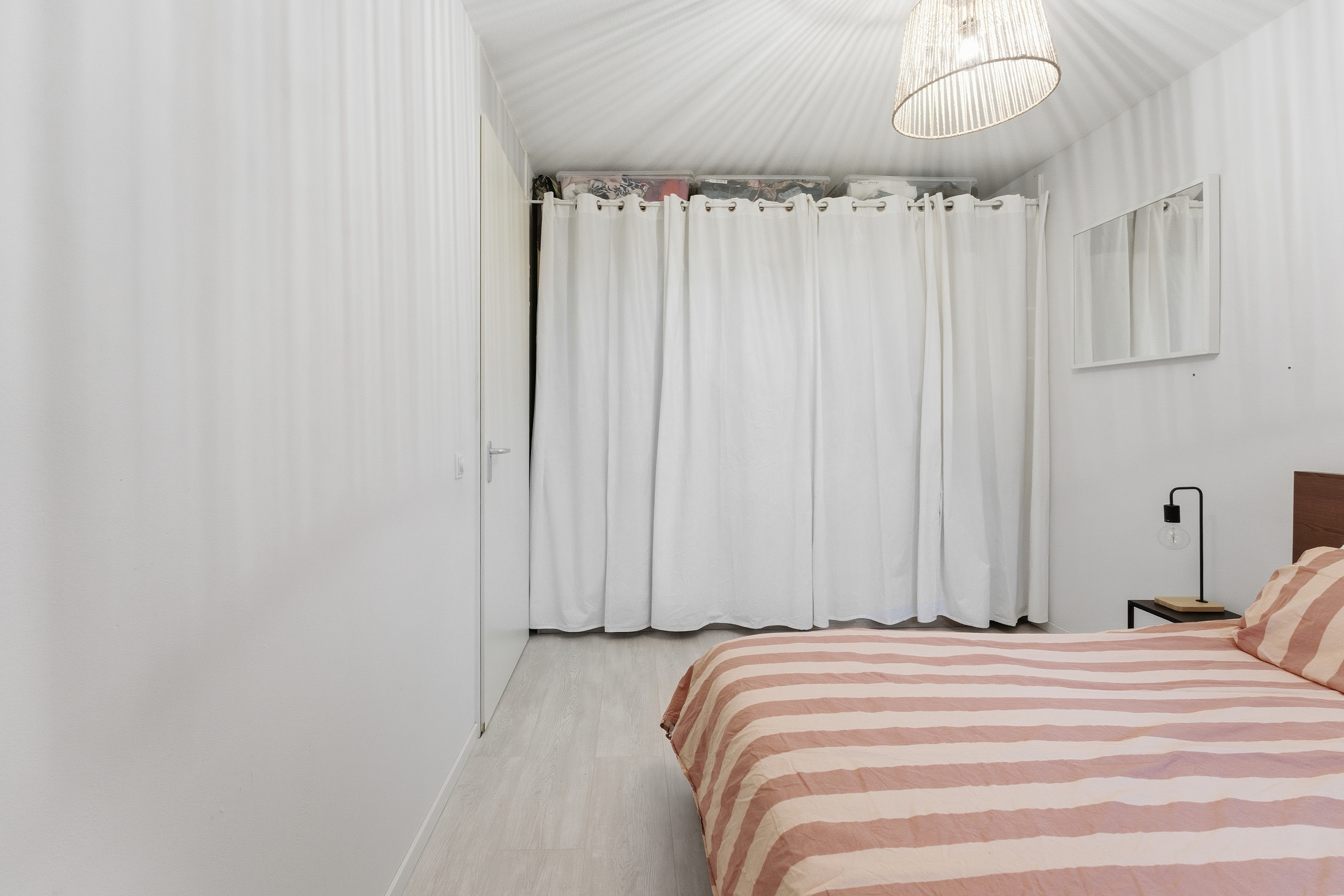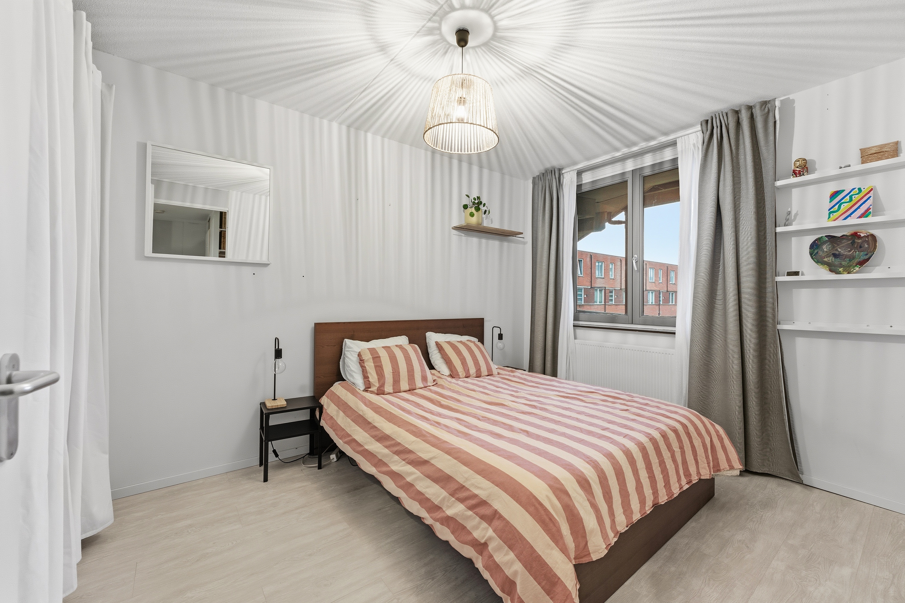 De woning beschikt over twee ruime slaapkamers. De master bedroom is gelegen aan de voorzijde van het appartement en grenst direct aan het balkon en biedt voldoende ruimte voor een tweepersoonsbed en een grote kledingkast. Ook is de badkamer vanuit deze slaapkamer bereikbaar. De tweede slaapkamer is gelegen aan de galerijzijde en is eveneens goed van formaat en uitstekend geschikt als werk-, kinder- of logeerkamer.