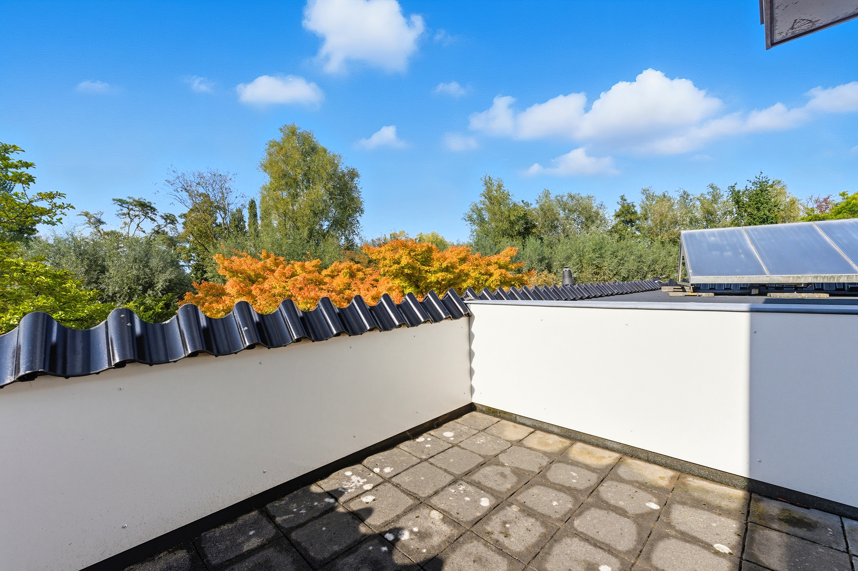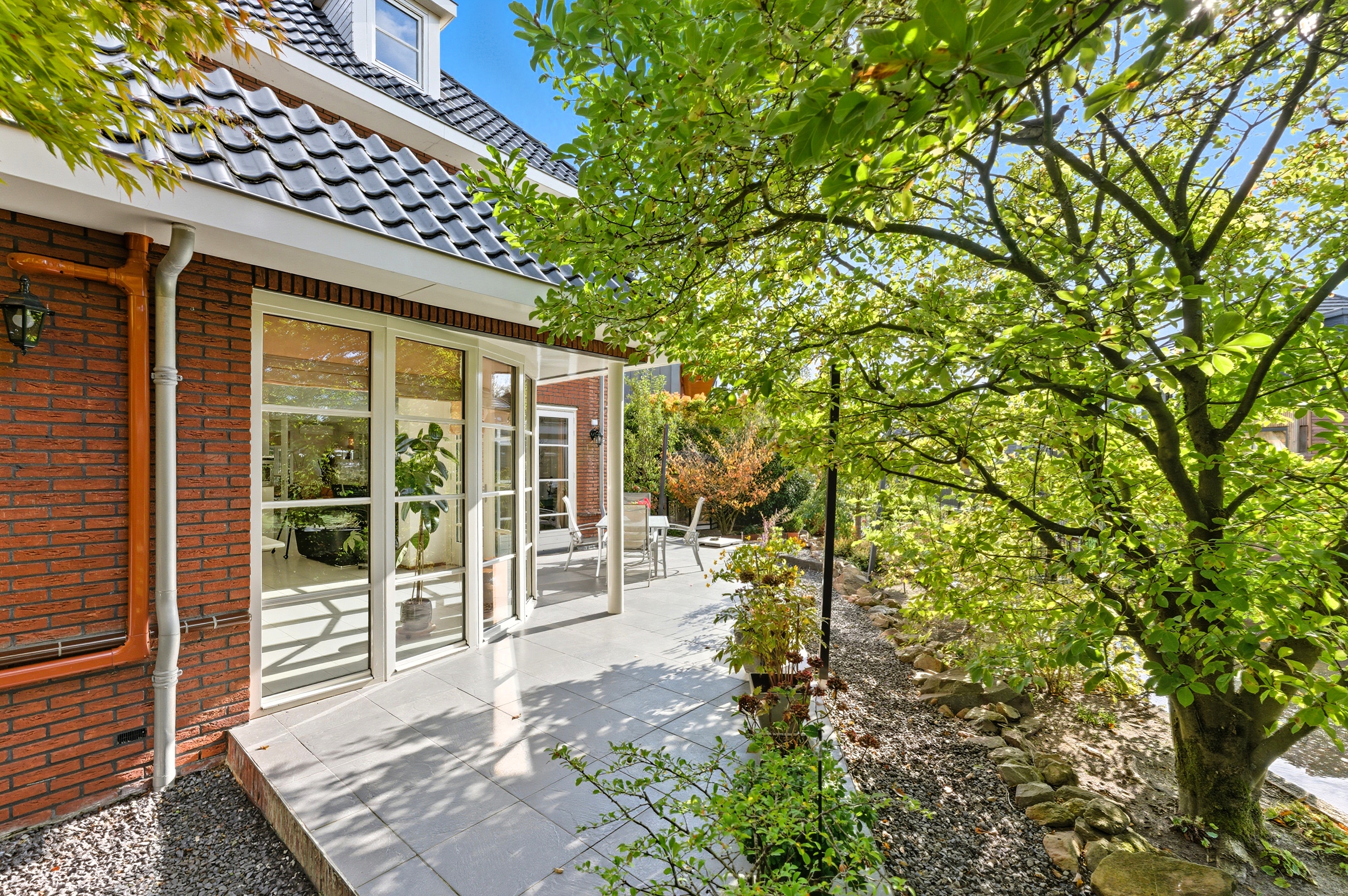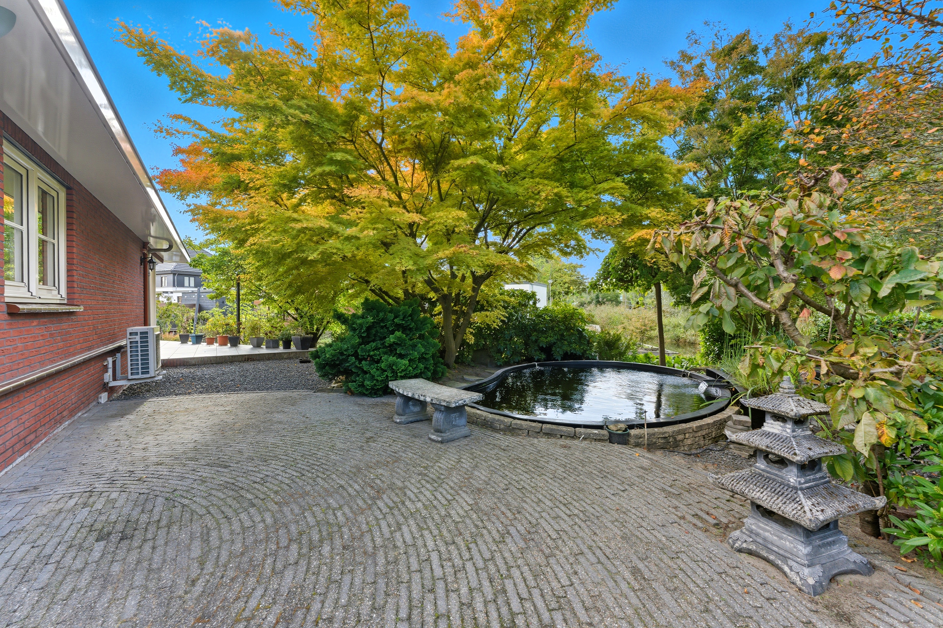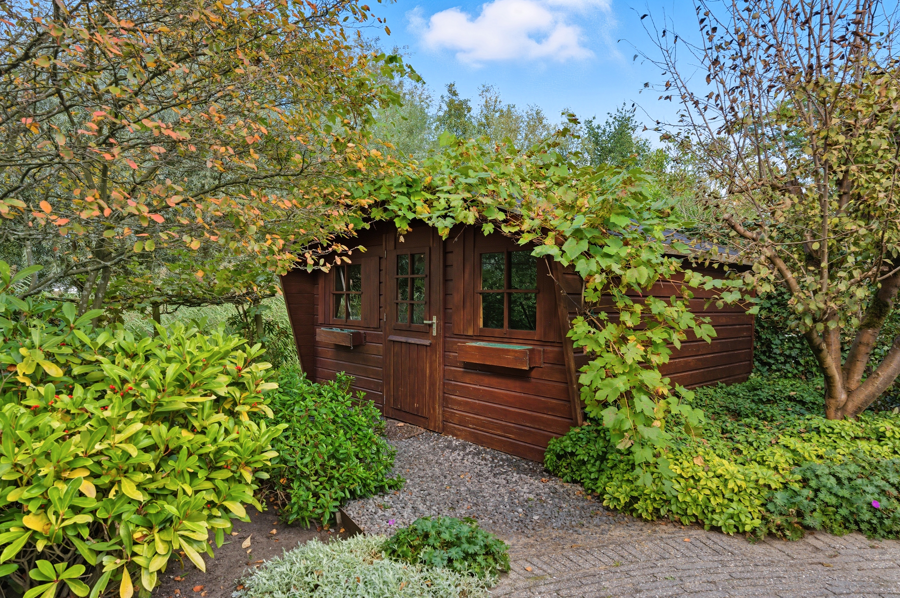 De tuin is zonder twijfel één van de parels van deze villa. Zuidgericht, groen, verzorgd en met een directe ligging aan het water. Hier geniet je van de rust, het geluid van vogels en het kabbelende water, een plek waar elke dag als vakantie voelt. De tuin is speels en groen aangelegd met veel beplanting, meerdere parkeerplaatsen aan de voorzijde, een fijn terras en een prachtige vijver met kooikarpers. Een groot deel van de tuin is onderheid waardoor het niet zal verzakken. Tevens is er nog een vrijstaande houten berging.