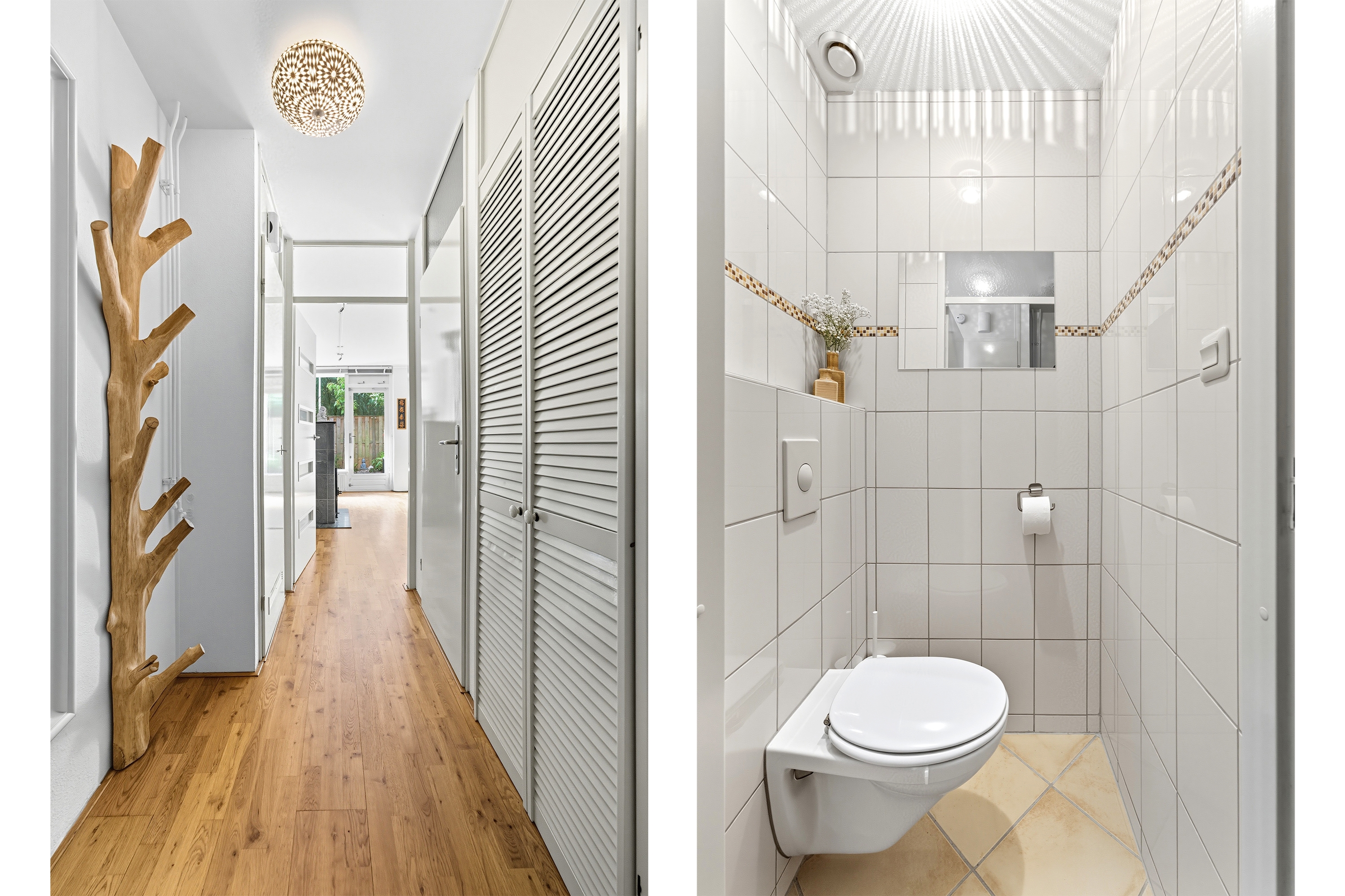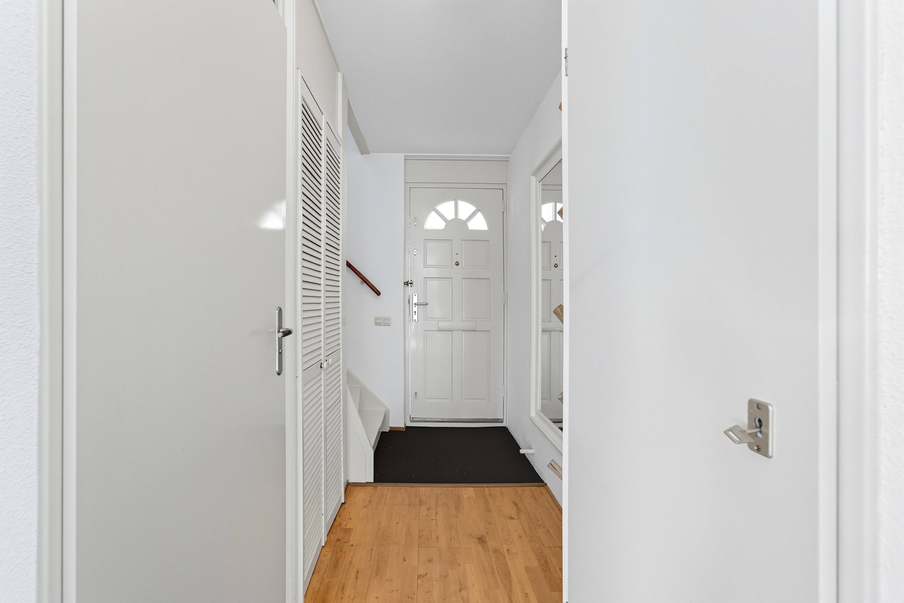 Via de entree kom je binnen in de hal met meterkast, toiletruimte, trapopgang en toegang tot de leefruimtes.