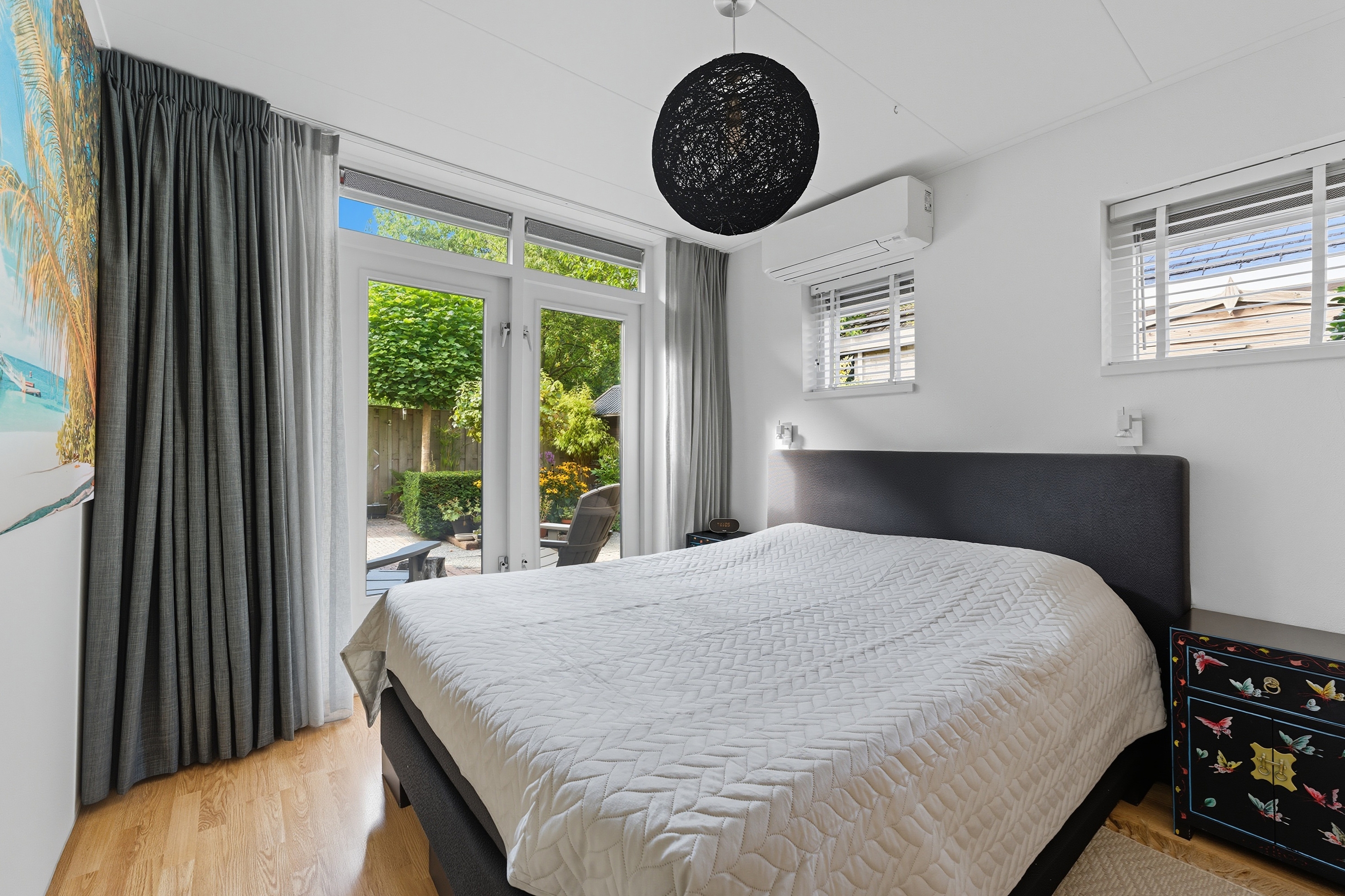 Uniek is de slaapkamer op de begane grond, voorzien van airco – ideaal als levensloopbestendige oplossing, praktijkruimte of luxe master bedroom. Vanuit deze kamer heb je heerlijk de openslaande deuren naar de tuin!