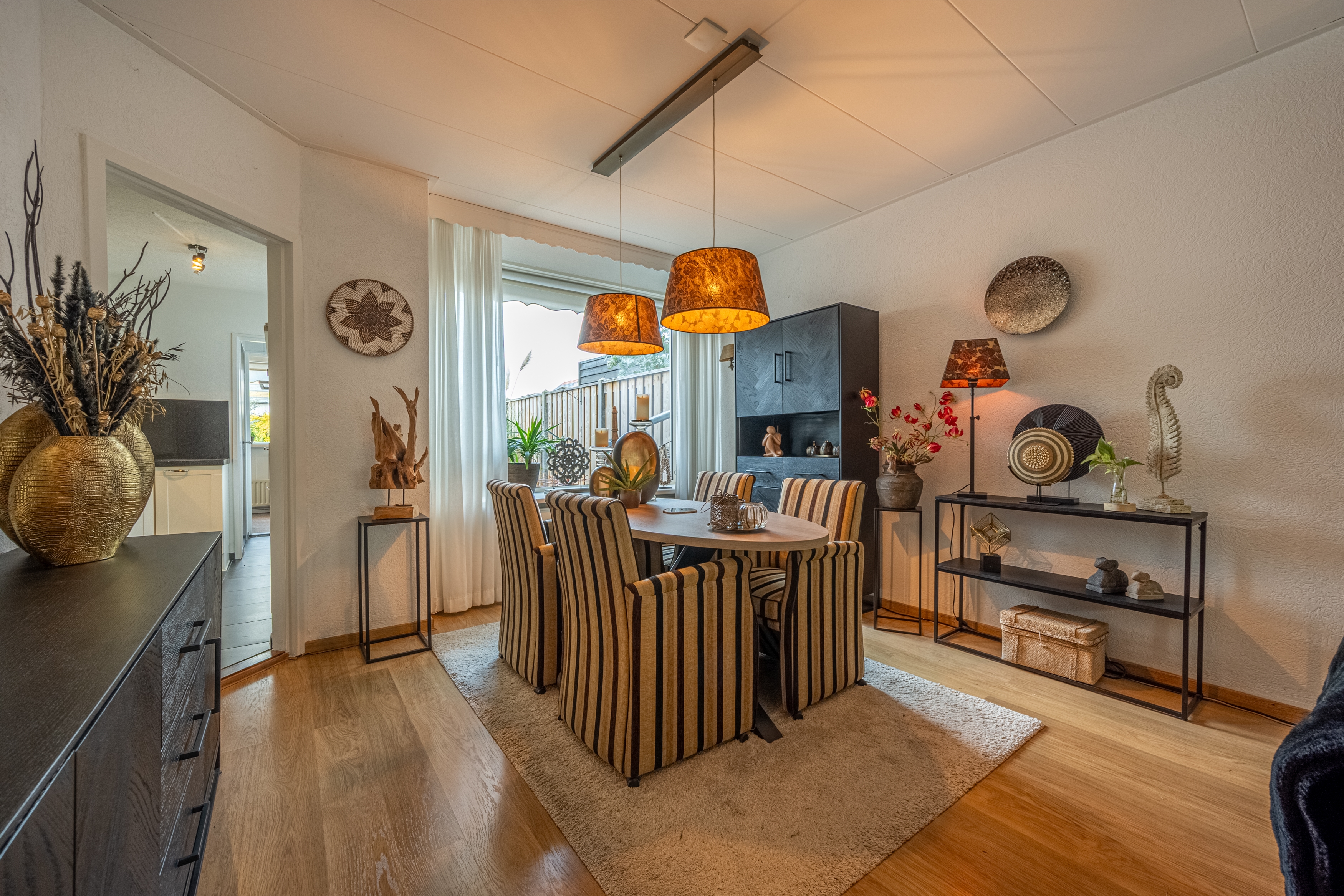 Je komt binnen via de entree en voelt het meteen: hier klopt het gewoon. Vanuit de hal loop je door naar de gezellige woonkamer, een fijne en lichte leefruimte waar je direct een warm en huiselijk gevoel krijgt. Dankzij de prettige indeling is er volop ruimte voor zowel een comfortabele zithoek als een gezellige eethoek. De grote ramen zorgen voor veel daglicht en maken dit een heerlijke plek om thuis te komen en te ontspannen.
