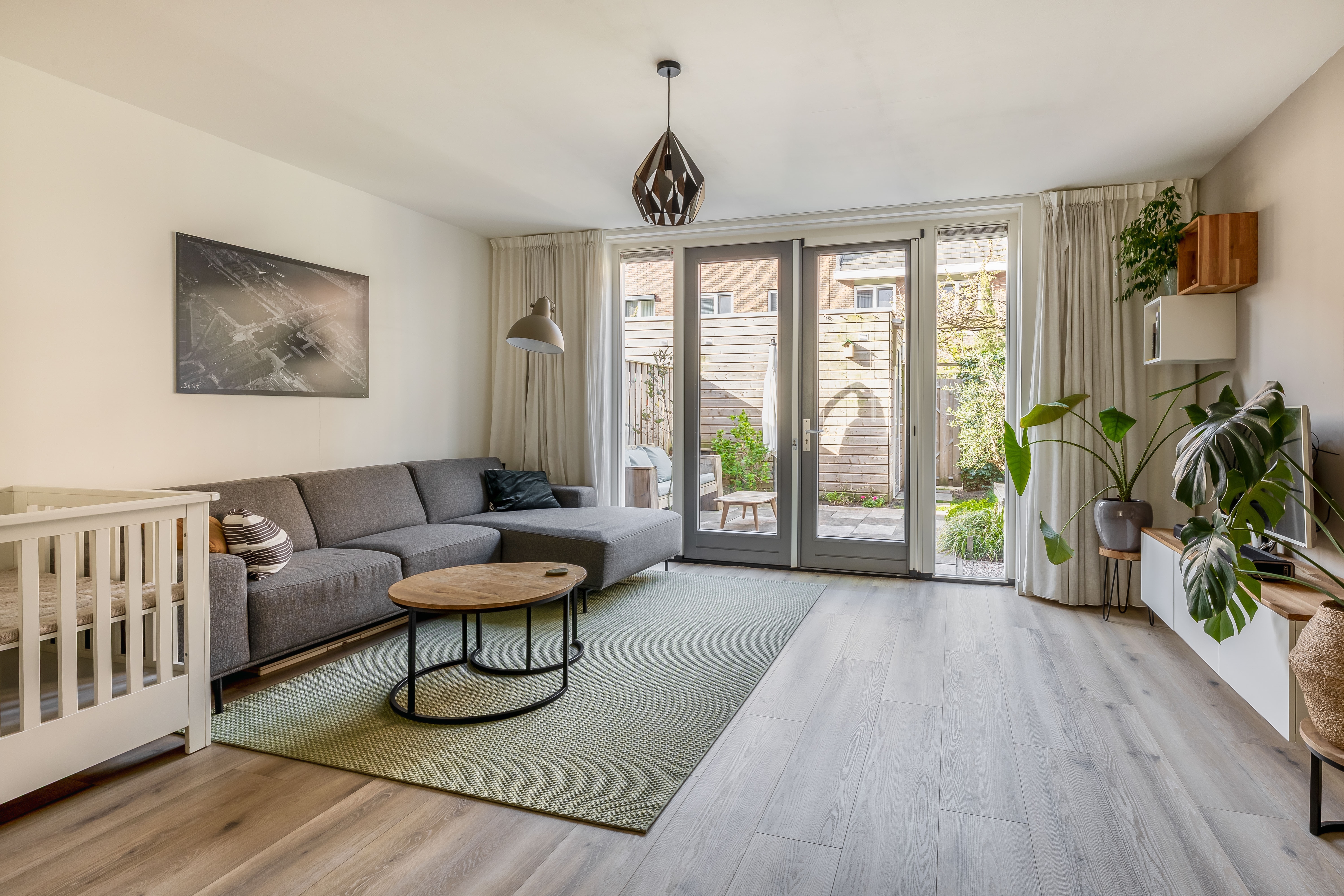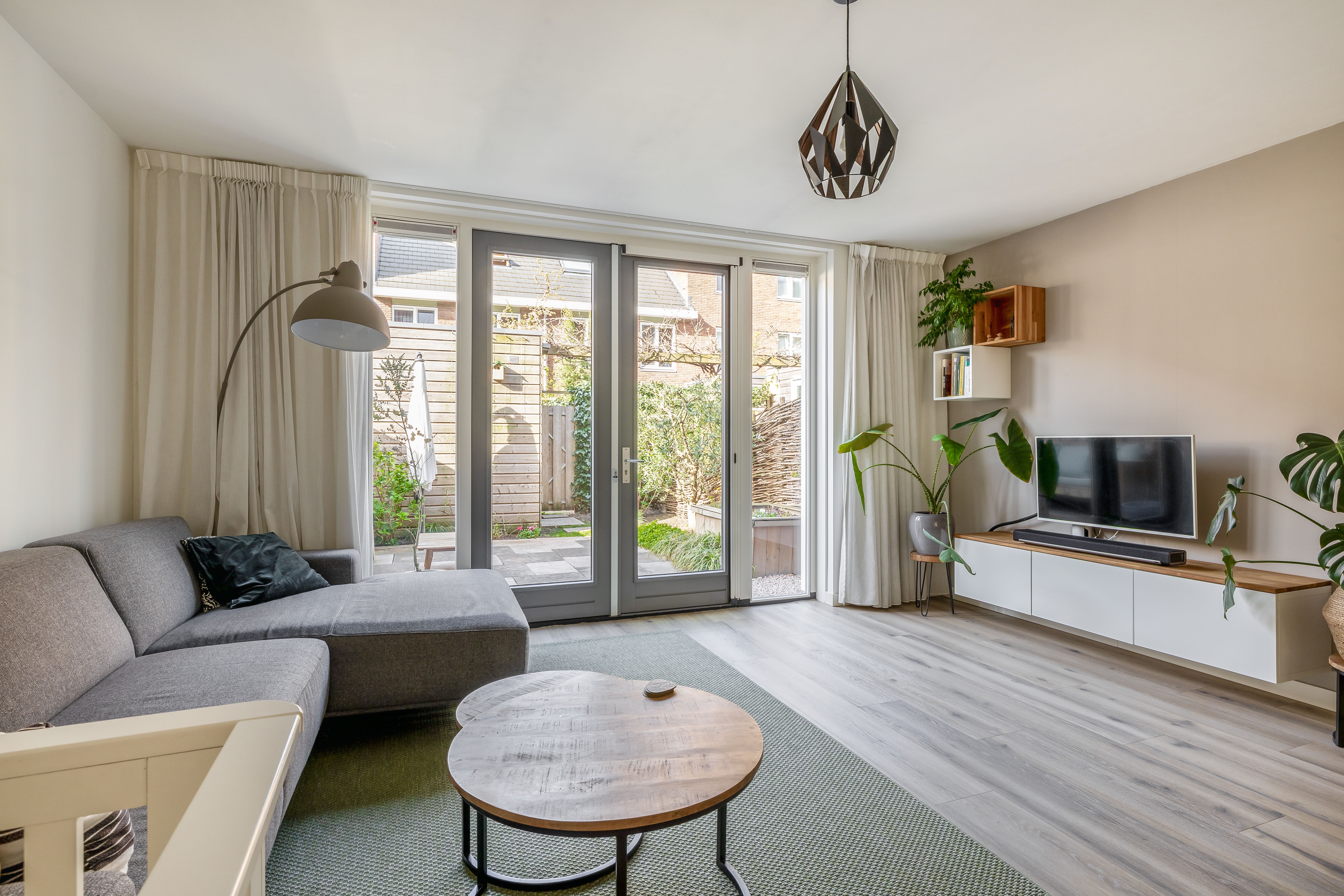 5. Lichte woonkamer met openslaande deuren naar de tuin