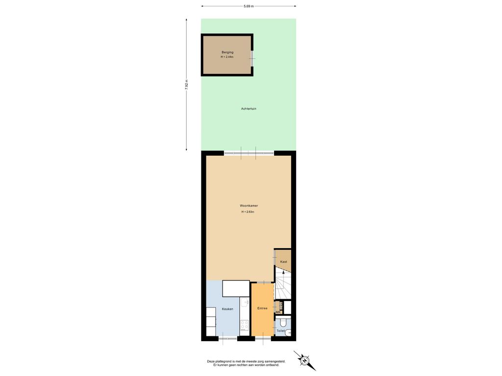 - Vrijstaande houten berging (ca. 6 m²);