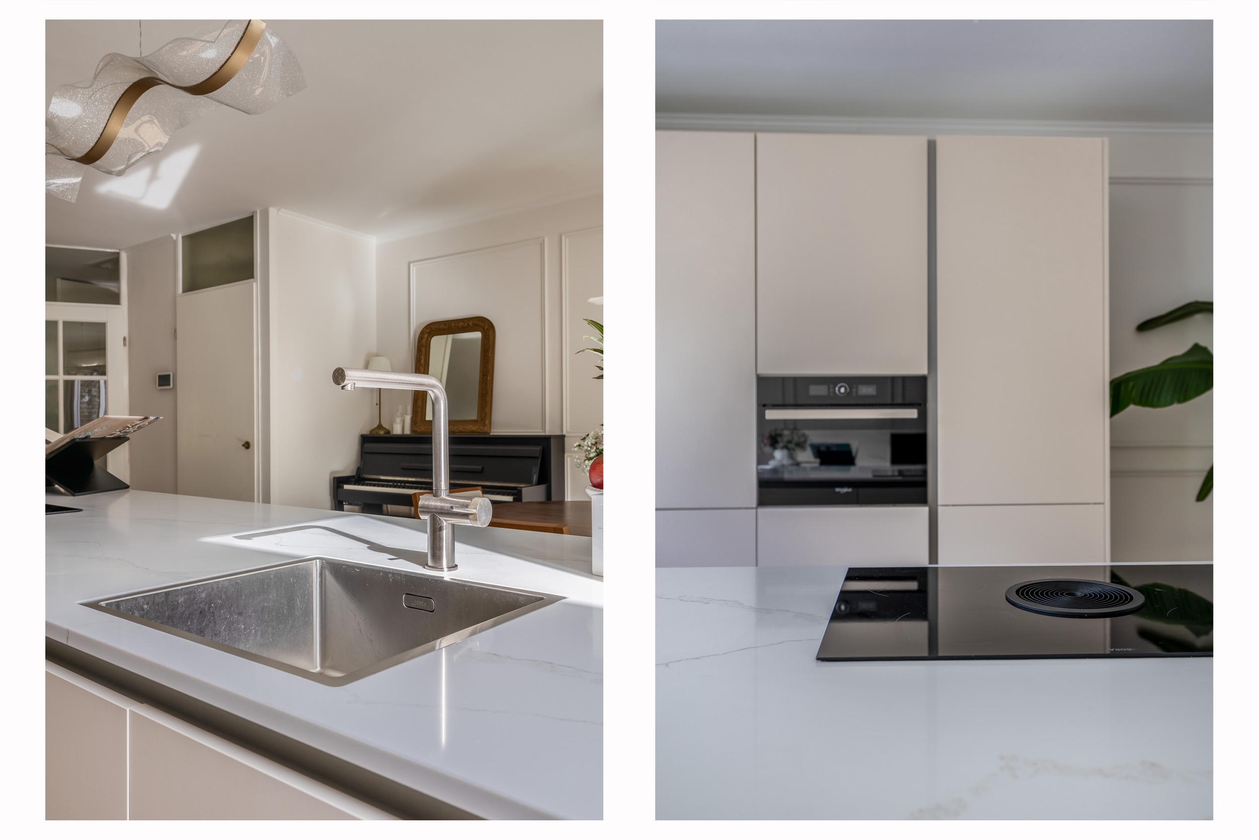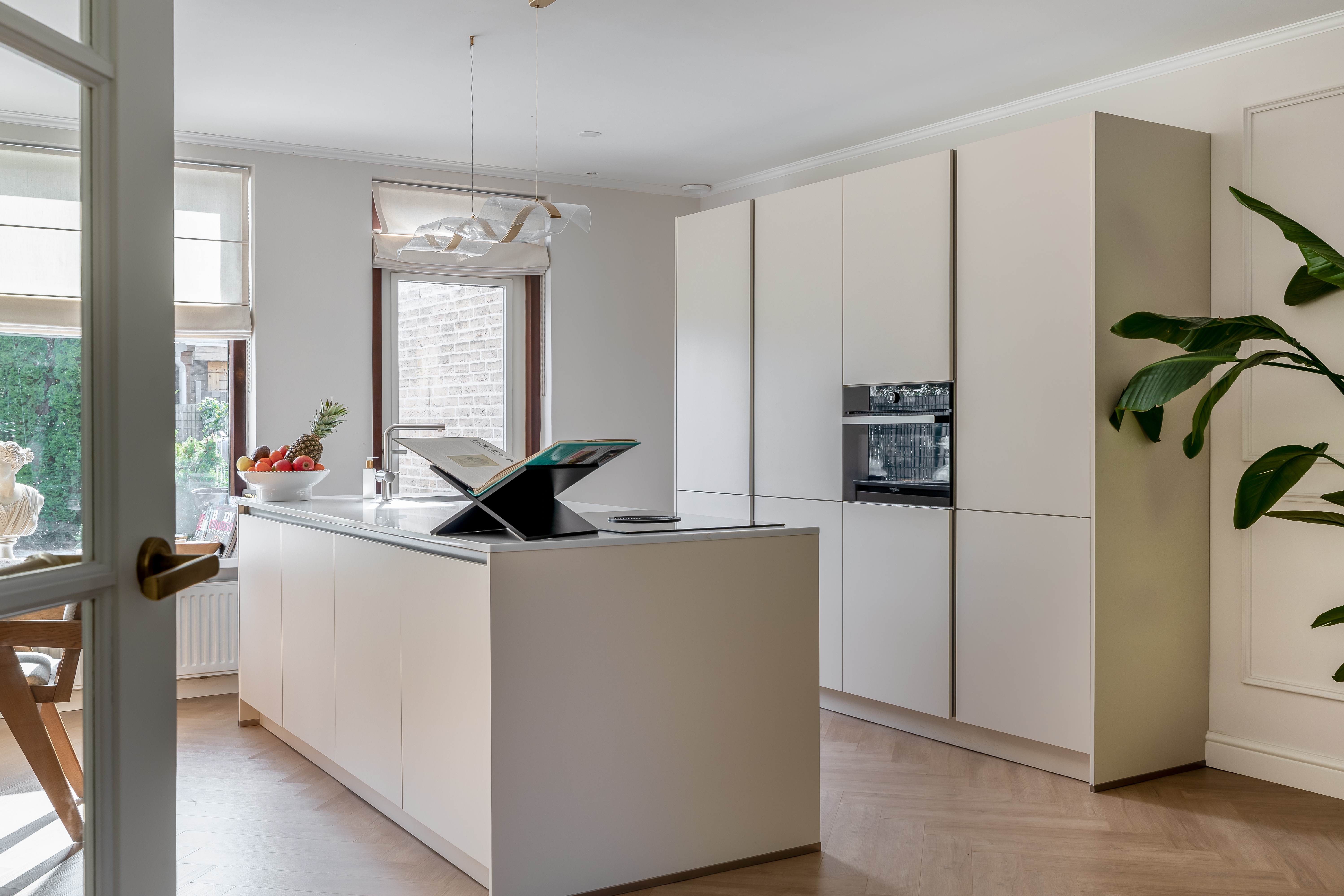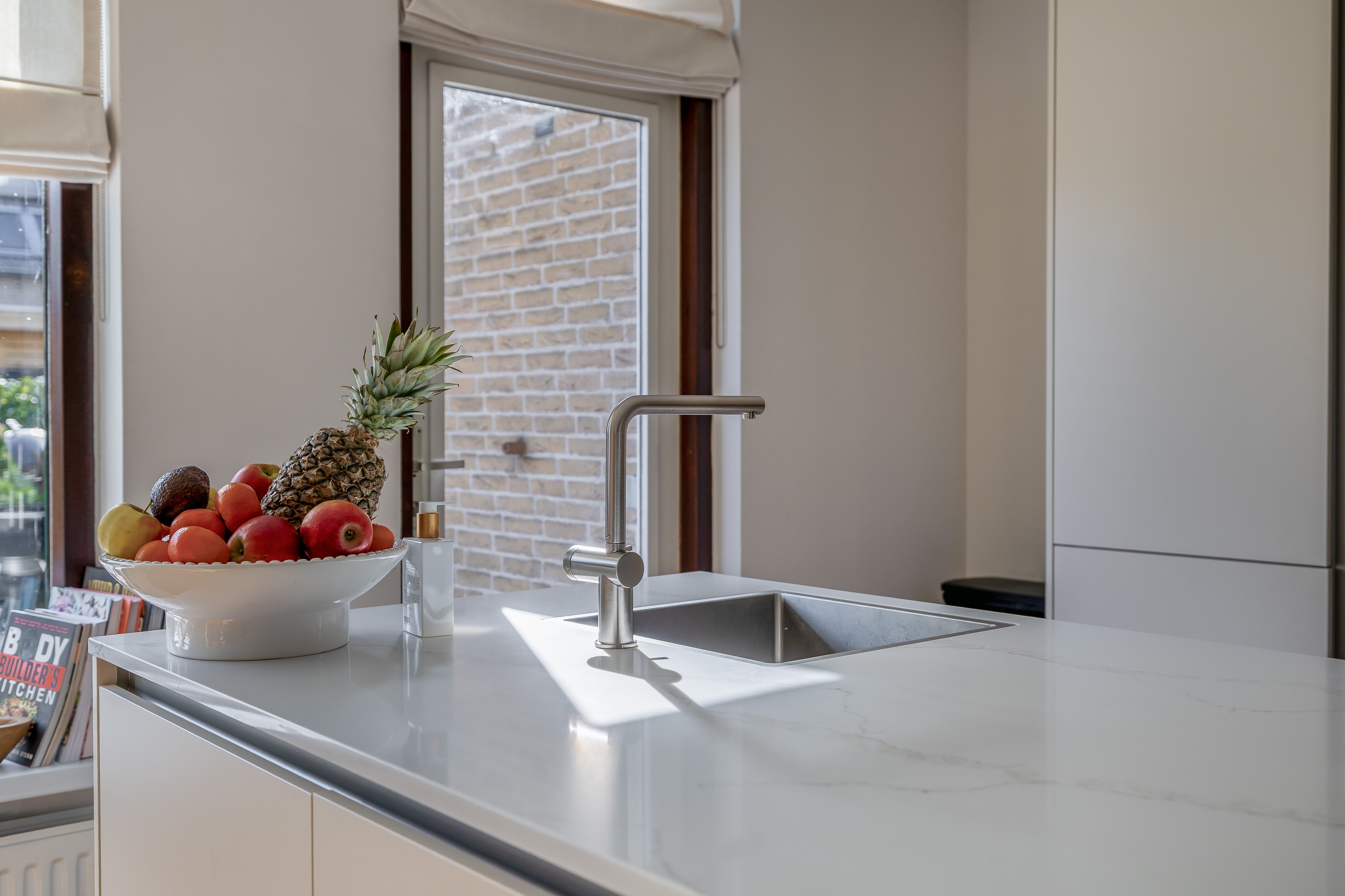 Aan de achterzijde vind je de prachtige open keuken met kookeiland, dé plek waar koken en gezelligheid samenkomen. De keuken is modern uitgevoerd en voorzien van diverse inbouwapparatuur en veel kastruimte. Vanuit de keuken heb je leuk zicht op de tuin.