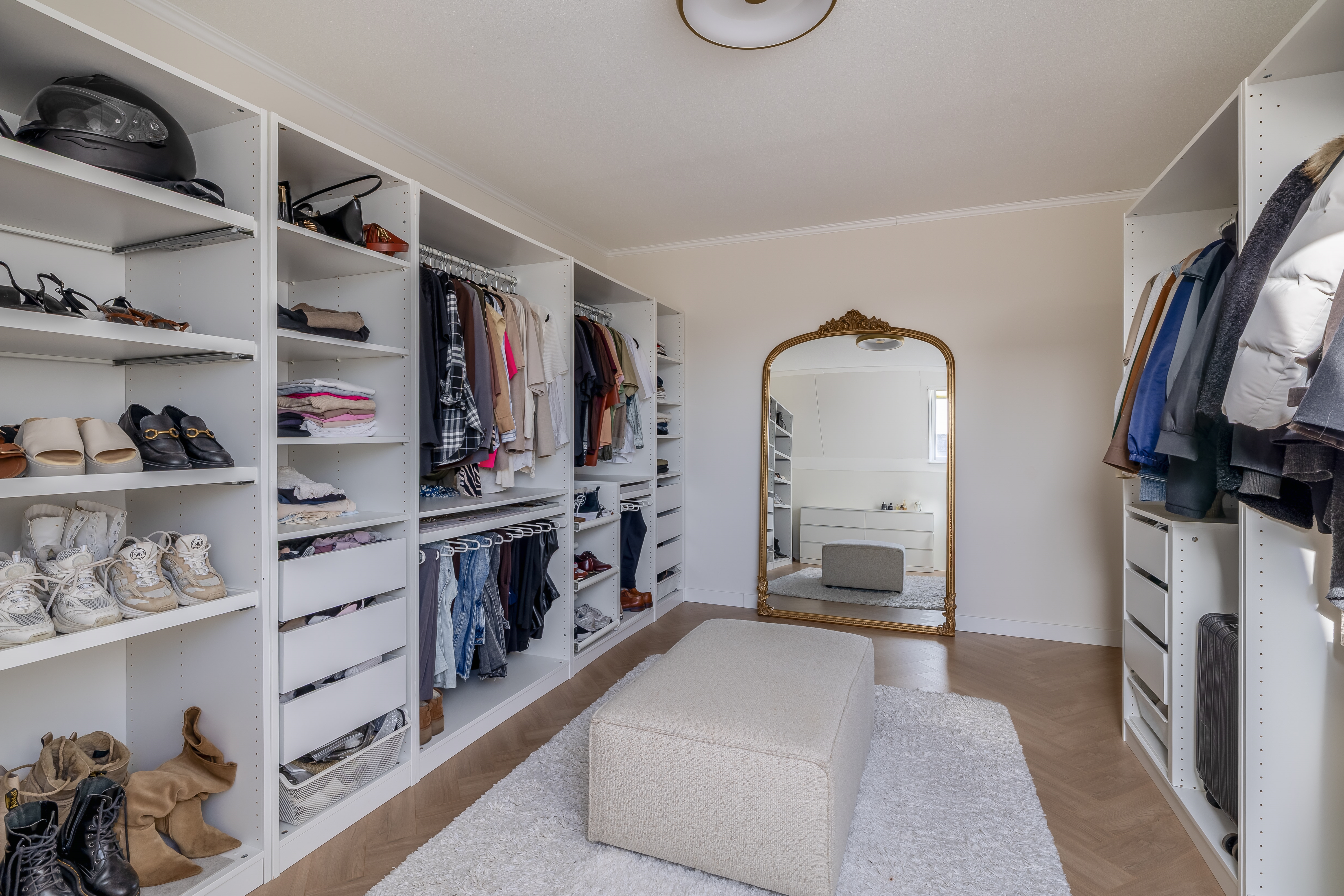 Op de eerste verdieping bevinden zich meerdere slaapkamers en de badkamer. De kamers zijn stuk voor stuk goed van formaat en multifunctioneel in te richten, bijvoorbeeld als werk- of kinderkamer met als absolute eyecatcher: de inloopkast. Hier heb je alle ruimte voor je garderobe, een droom voor velen ! De badkamer is netjes en praktisch ingericht.