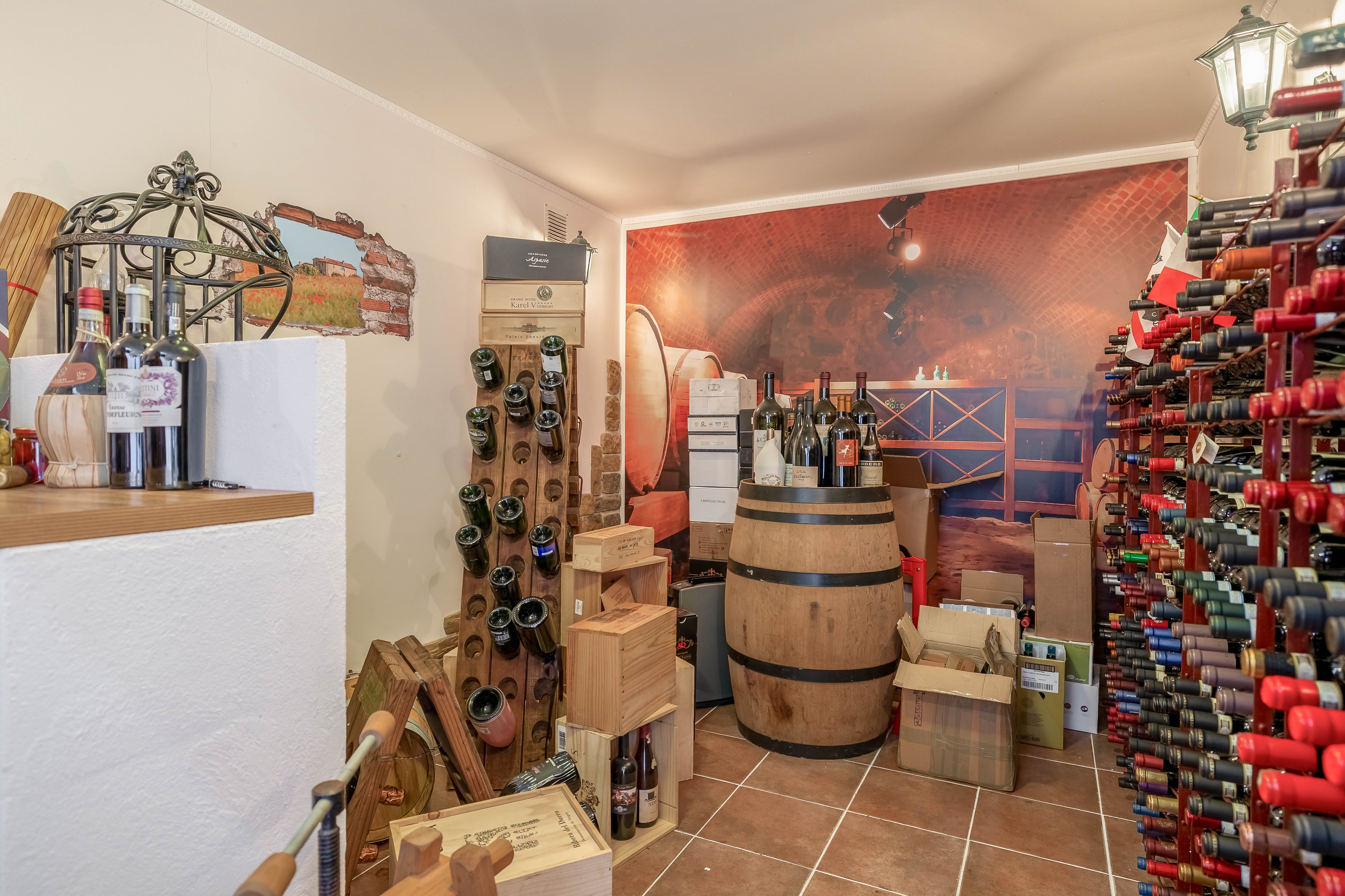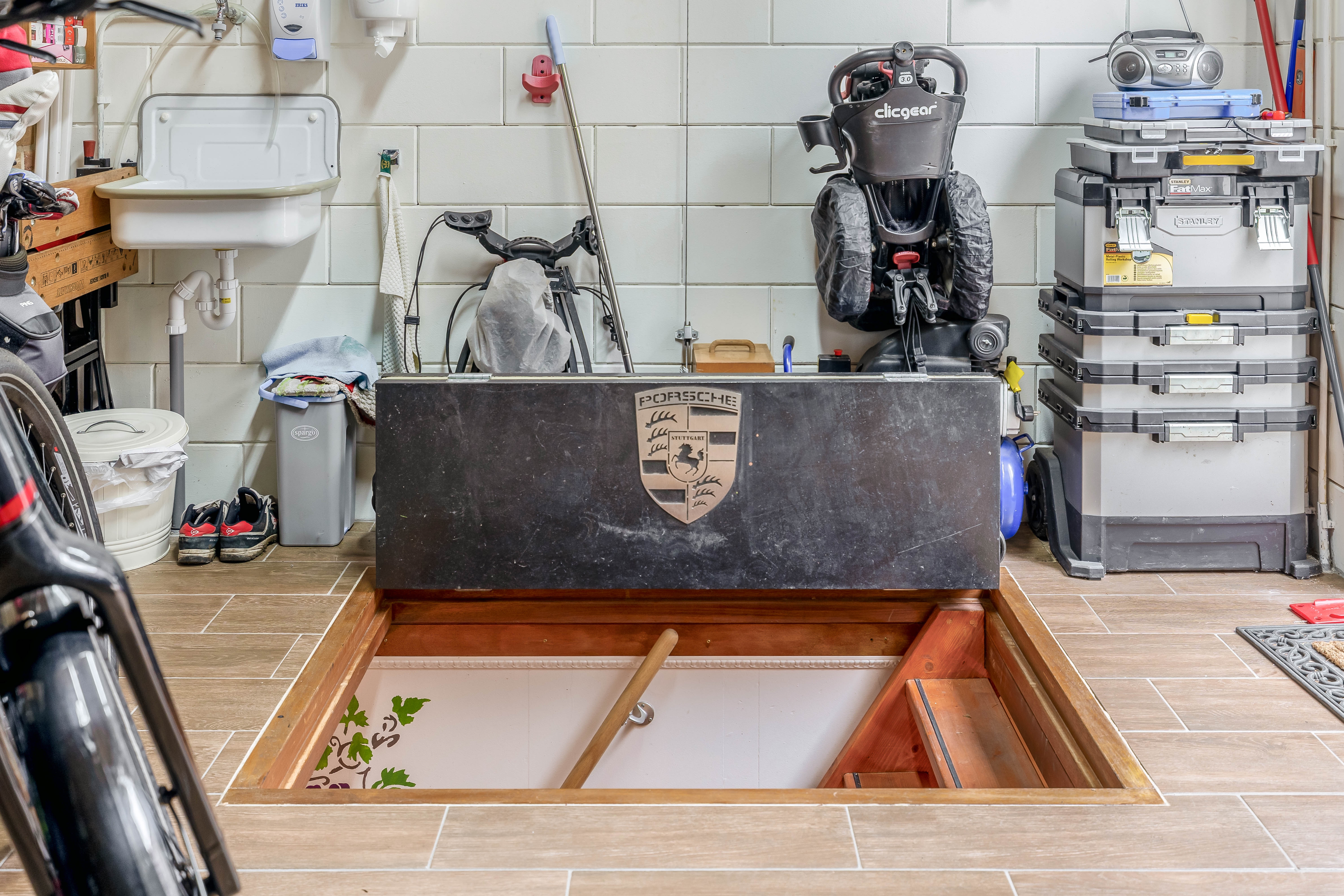 Daarnaast vind je in de tuin nog een berging en een tuinkas. Via de tuin bereik je ook de garage. En dan komt het meest bijzondere van deze woning: onder de garage bevindt zich een echte wijnkelder. Uniek, sfeervol en perfect voor de liefhebber, dit zie je zelden!