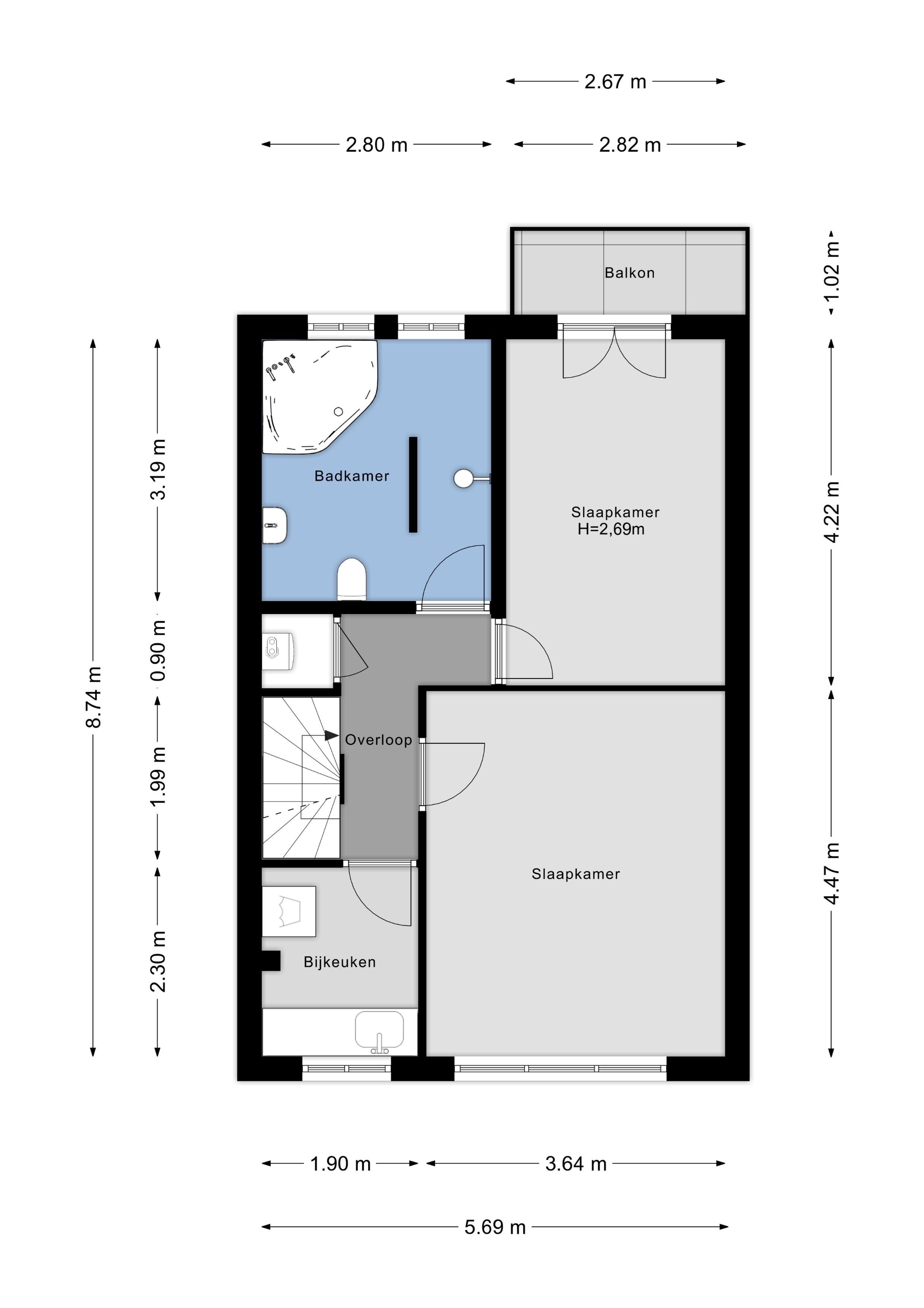 Op de eerste verdieping vind je twee ruime slaapkamers, een wasruimte en een zeer ruime badkamer. De badkamer is voorzien van een inloopdouche, groot bad, wastafelmeubel en toilet. Eén van de slaapkamers geeft toegang tot het balkon, een fijne plek voor een kop koffie in de ochtend of een rustig moment voor jezelf.
