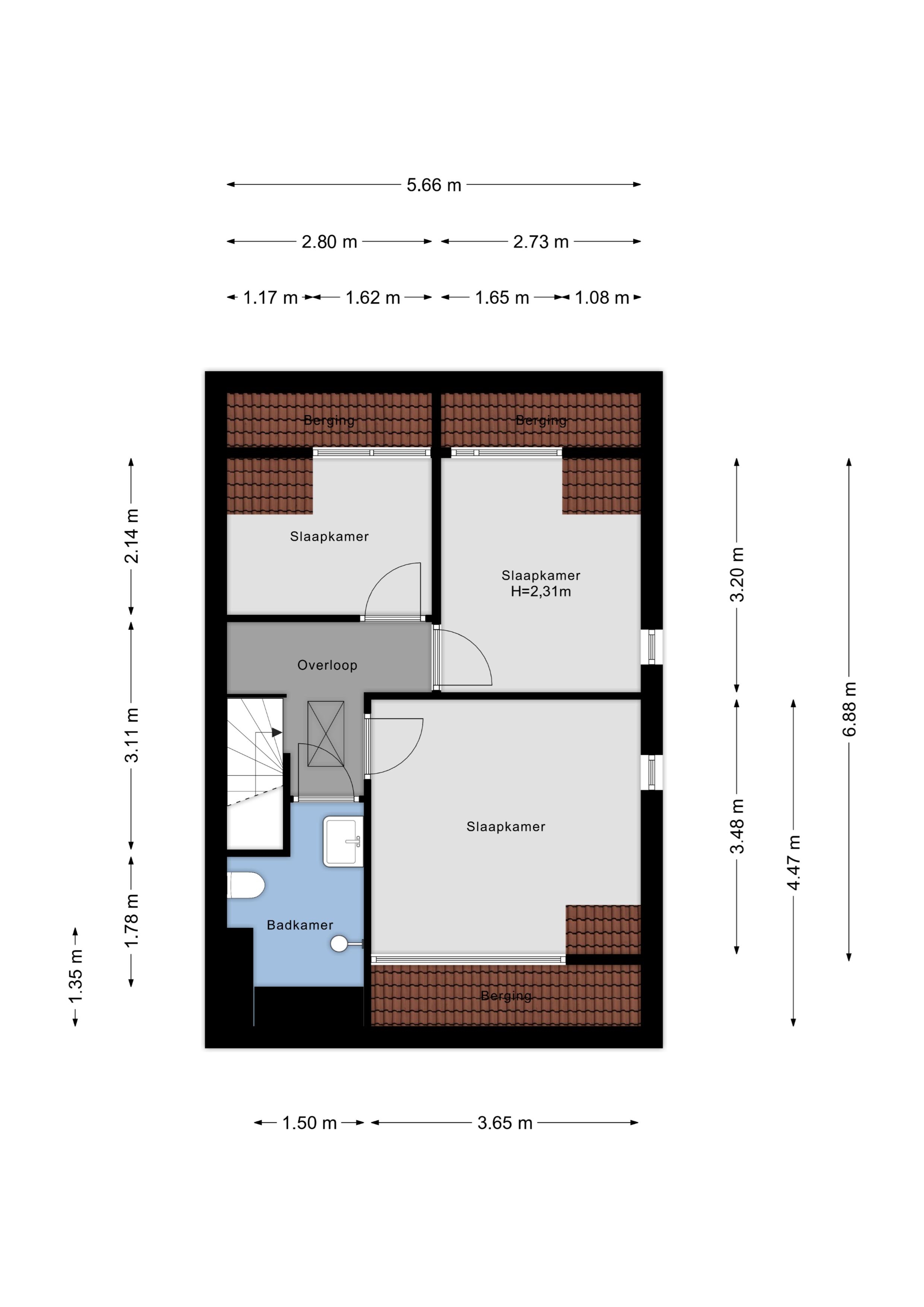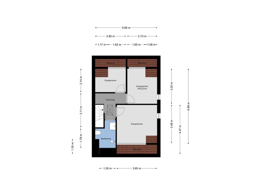 De tweede verdieping verrast met nog eens drie slaapkamers, extra bergruimte en een tweede badkamer. Hierdoor is deze woning perfect voor een gezin, thuiswerkers of iedereen die graag nét wat meer ruimte heeft.
