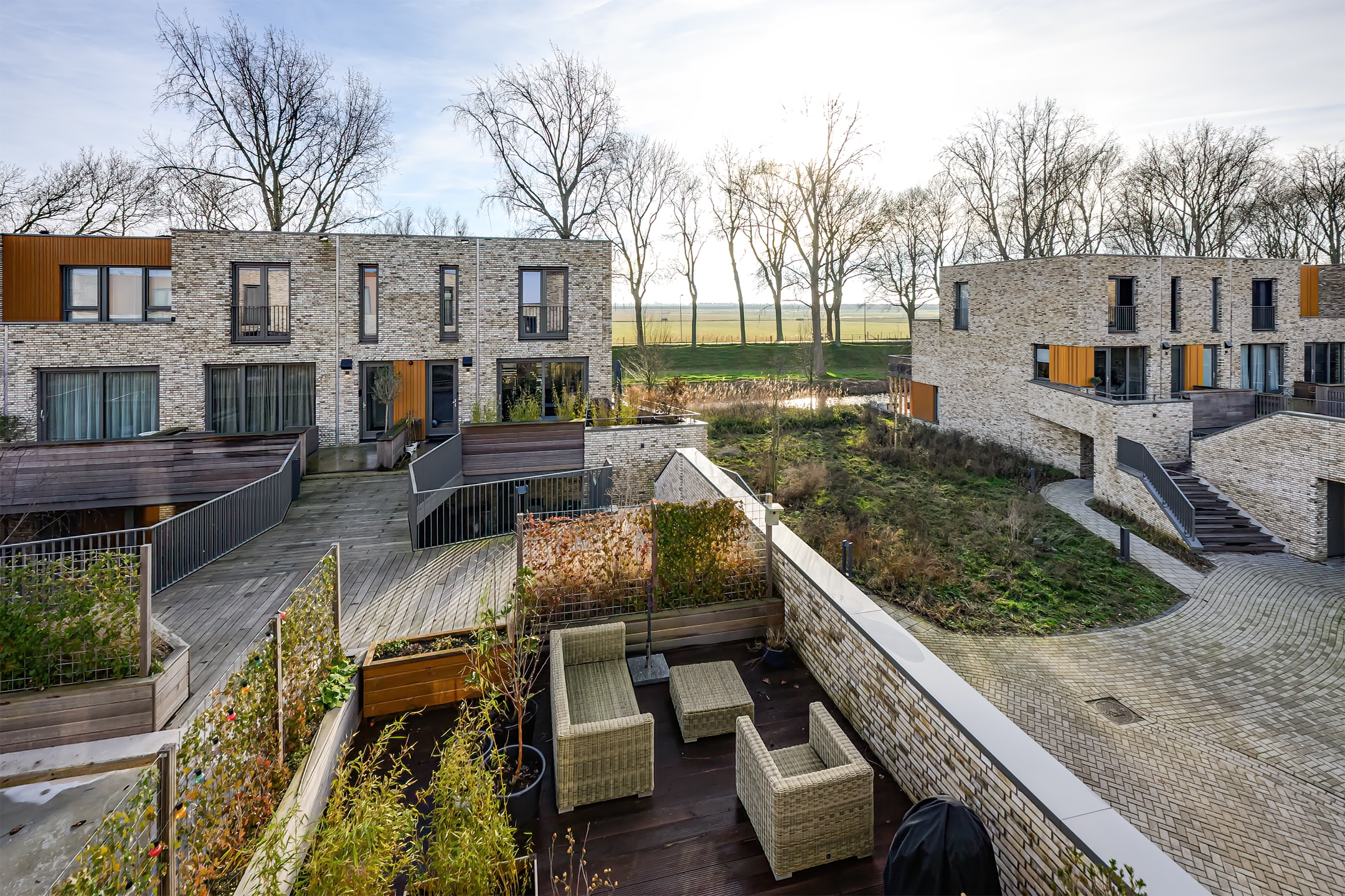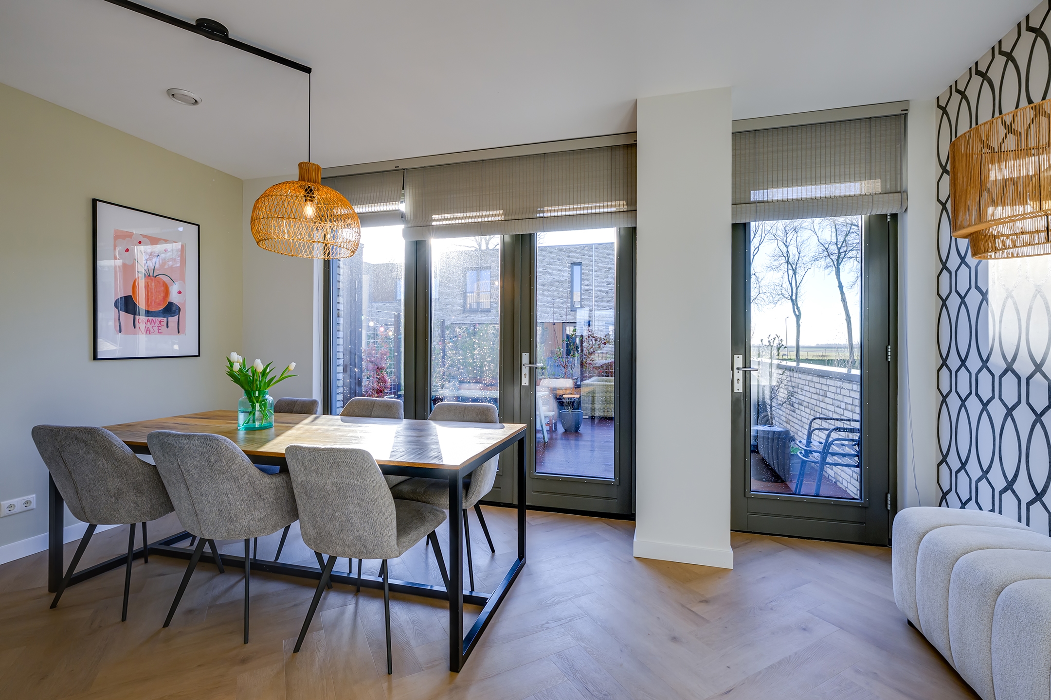 En dan… het absolute hoogtepunt: via openslaande deuren stap je zo het royale terras op. Een fantastische buitenruimte waar je de hele dag kunt genieten van zon, rust en een prachtig uitzicht over de polder. Een echte verlenging van je woonkamer!