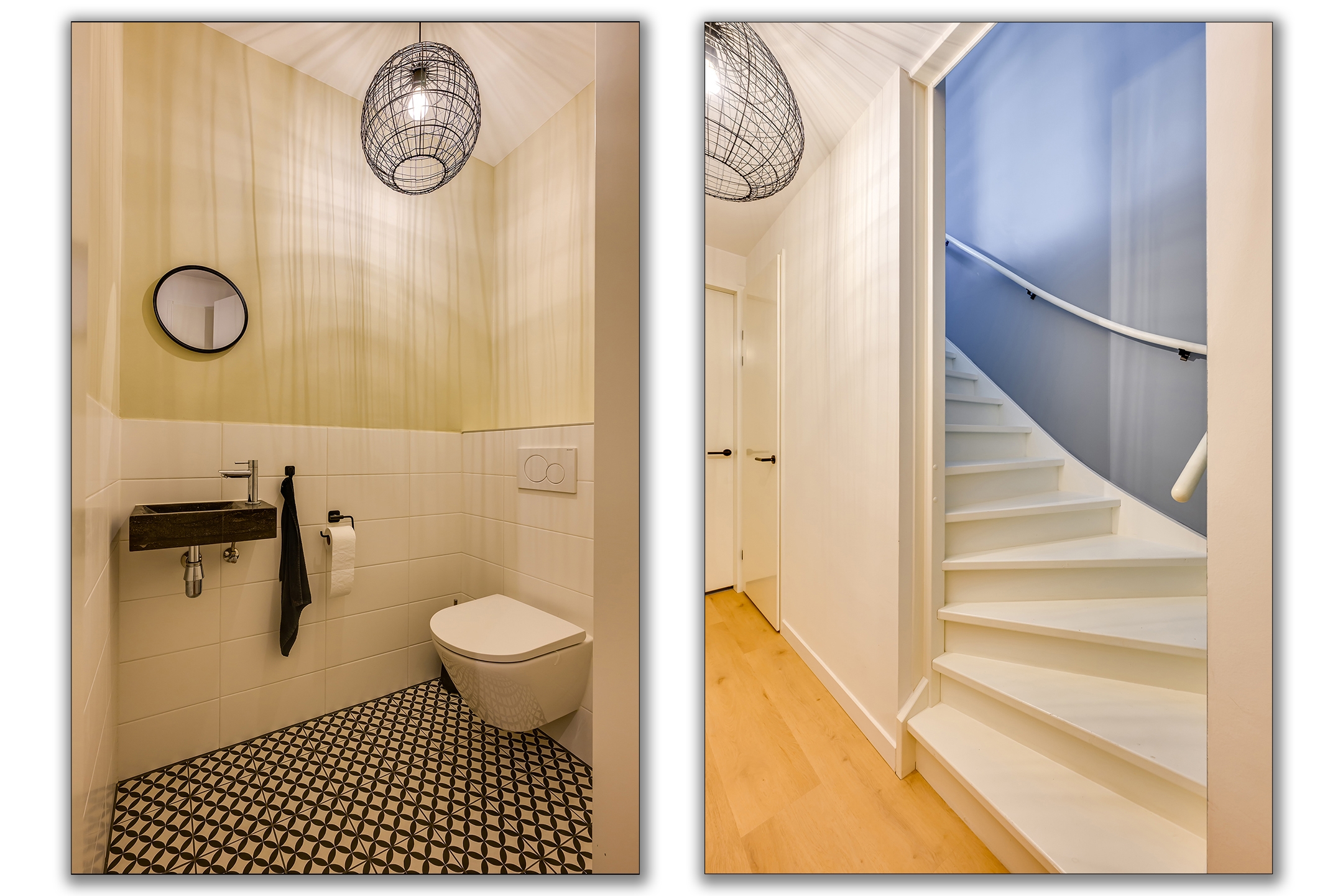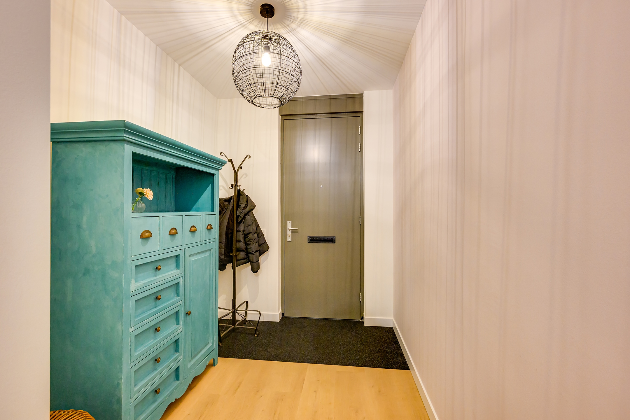 Je komt aan bij de woning en parkeert je auto op je eigen parkeerplaats. YESS! Via de entree stap je binnen in de hal, waar je toegang hebt tot de trapopgang, een praktische trapkast en een modern afgewerkt toilet met fonteintje.