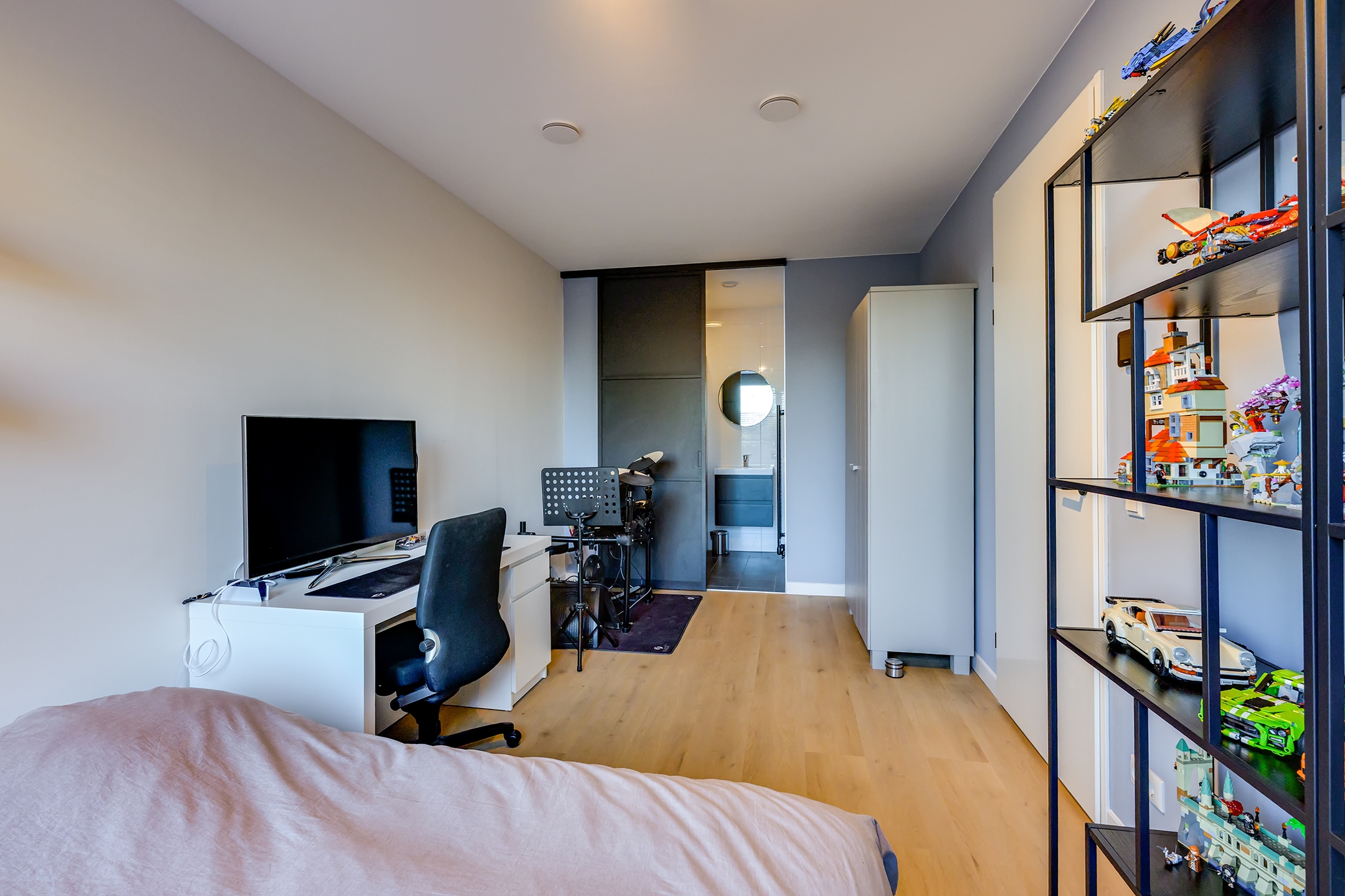 Aan de voorzijde bevindt zich een ruime slaapkamer met een fijne plafondhoogte en prettig daglicht. Ideaal als master bedroom, maar ook perfect te gebruiken als werk- of logeerkamer. En-suite beschik je over een nette badkamer, voorzien van een douche en wastafel: comfortabel en praktisch ingericht.